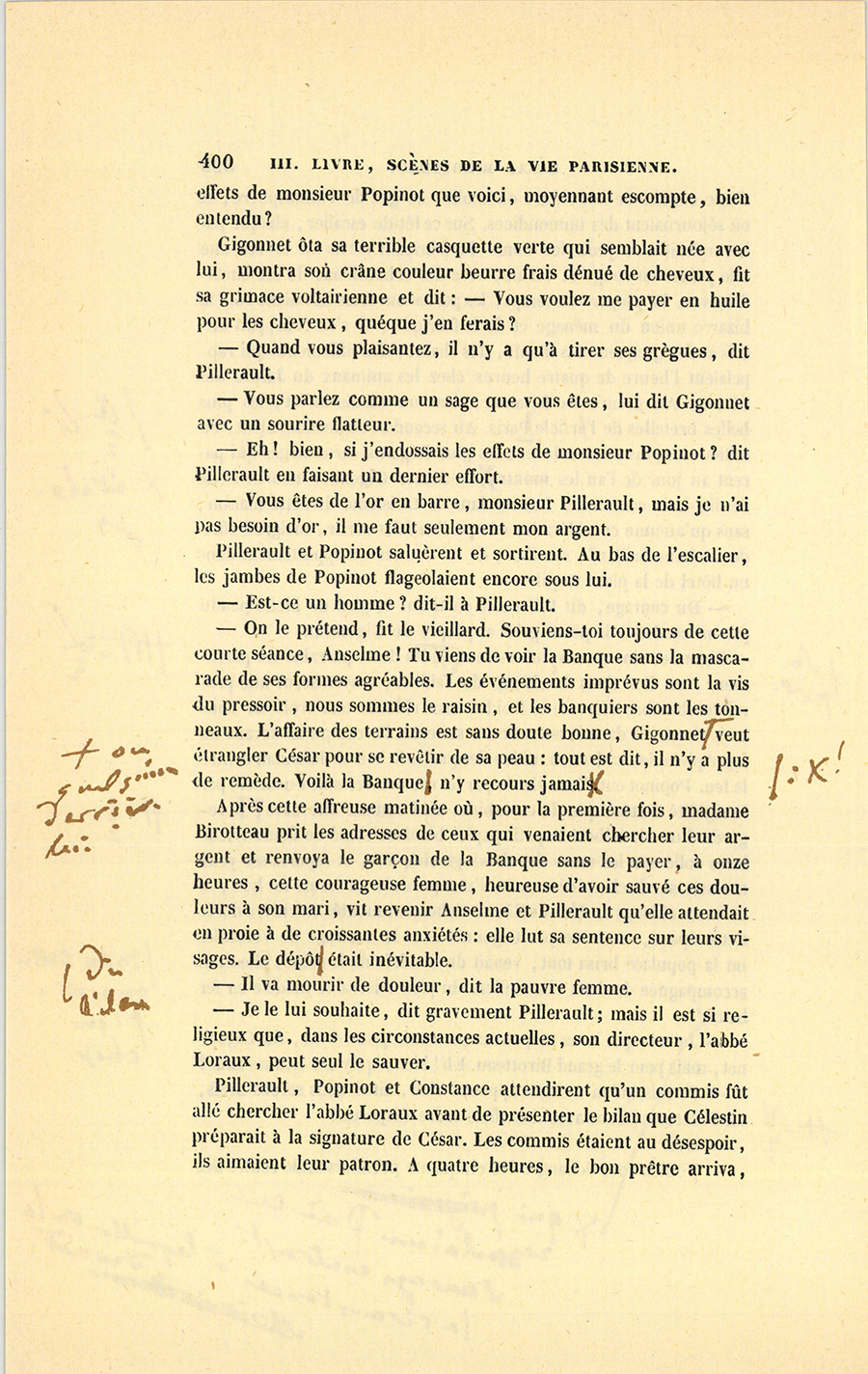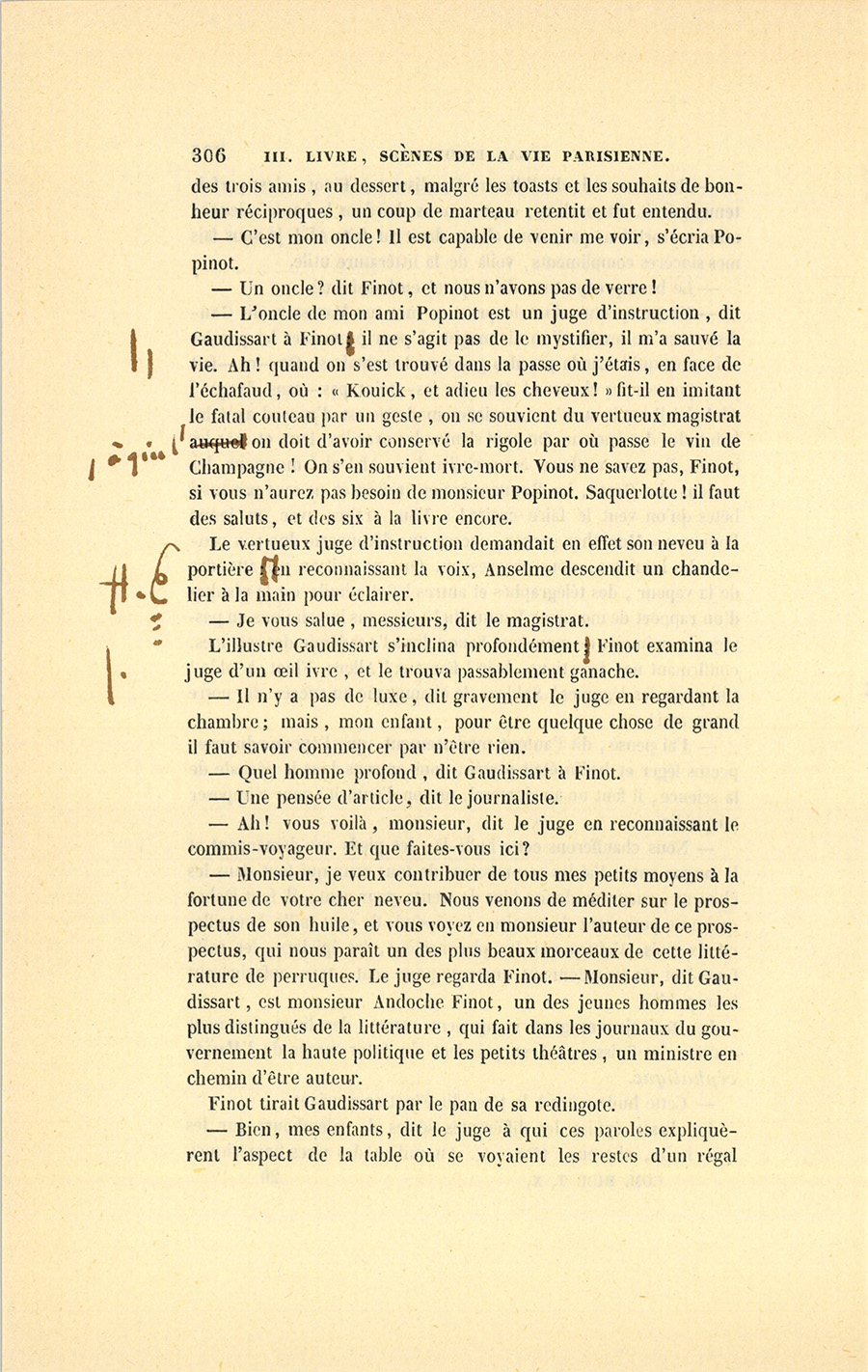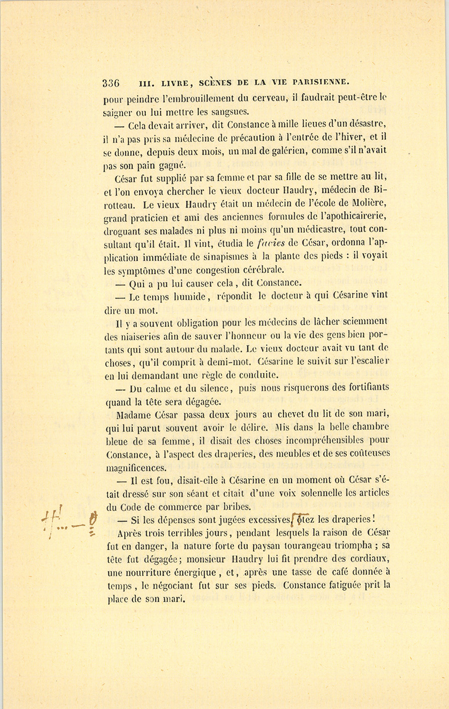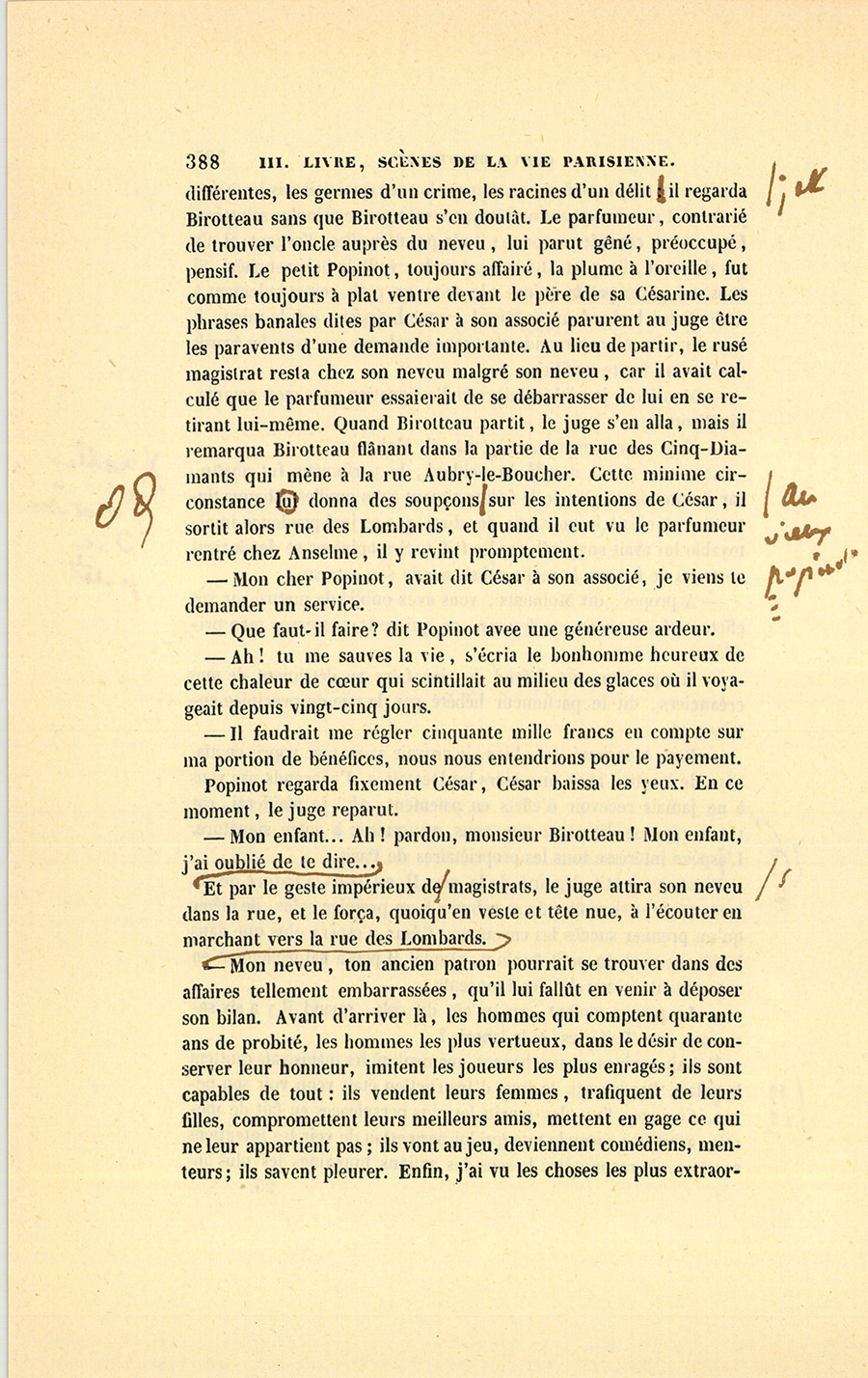 – Parbleu ! du bon côté, dit Lebas en souriant de la malice {p. 447} vengeresse de Pillerault, qui, sans rien savoir, regardait cet homme comme un scélérat.