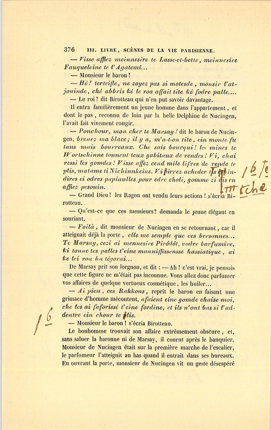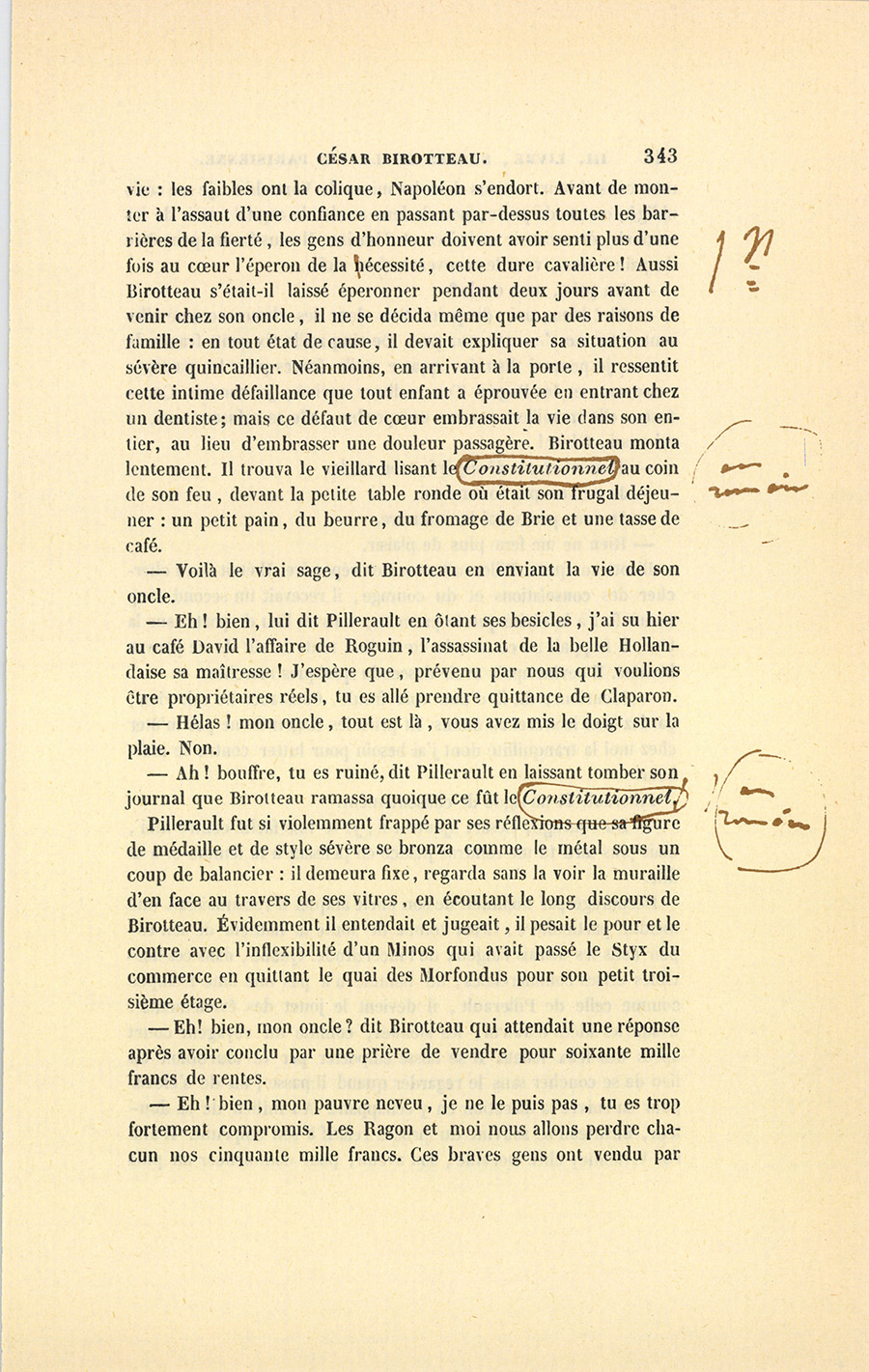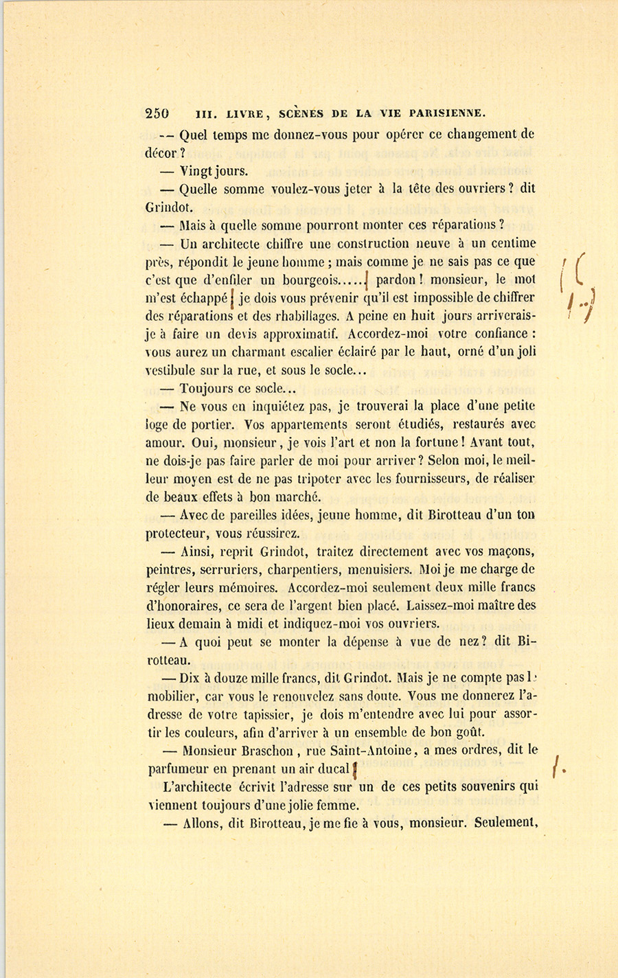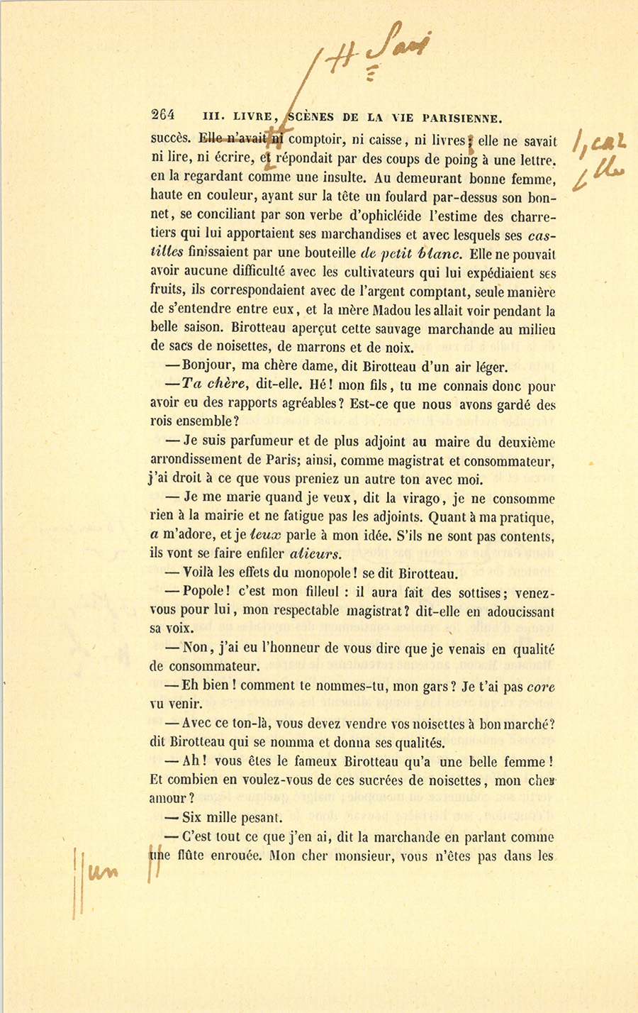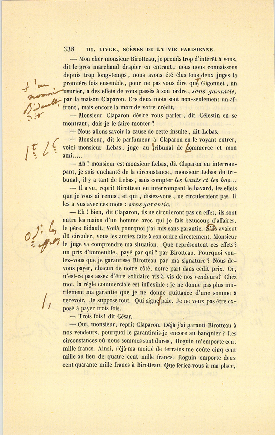 – Parbleu ! du bon côté, dit Lebas en souriant de la malice {p. 447} vengeresse de Pillerault, qui, sans rien savoir, regardait cet homme comme un scélérat.