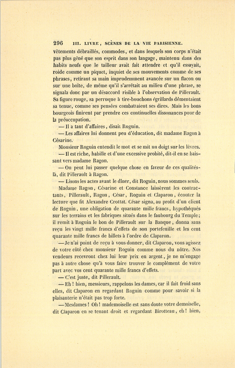 – Mon Dieu ! que les femmes sont quelquefois drôles, et comme elles brouillent toutes les idées ! Si Roguin n’était rien dans l’affaire, tu me dirais : Tiens, tiens, César, tu fais une affaire où Roguin n’est pas ; elle ne vaut rien. À cette heure, il est là comme une garantie, et tu me dis…