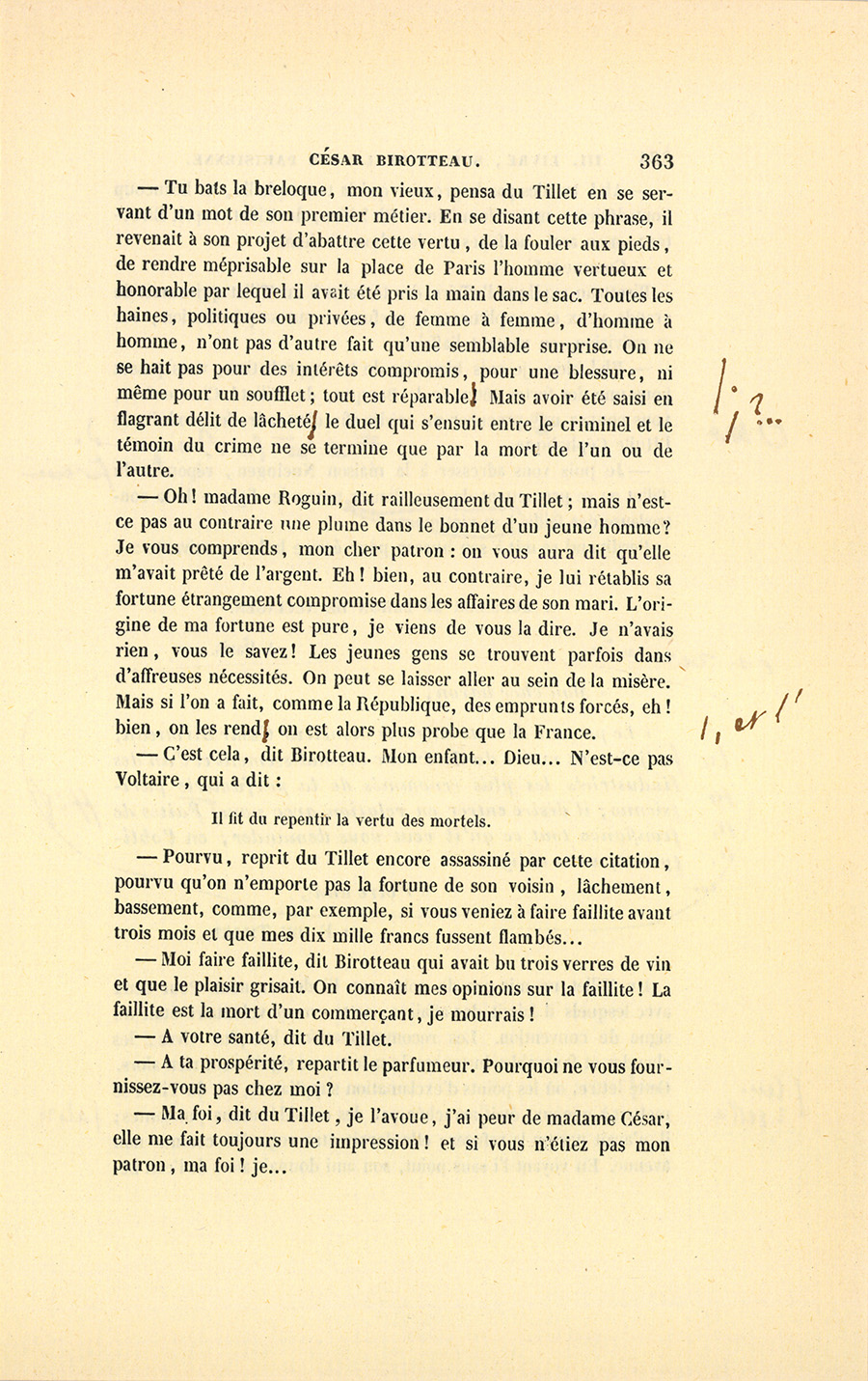 {p. 439} – Vous faut-il une quittance ? dit du Tillet en l’interrompant, payez-vous ?…