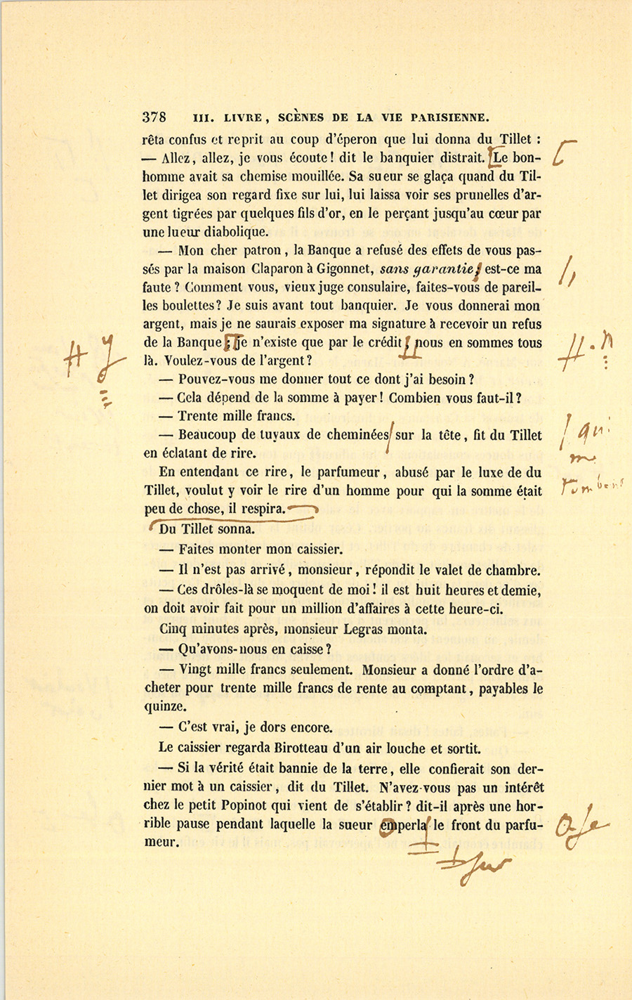 – Ne trouverait-on pas extraordinaire de voir exclu de chez moi un commis que j’ai cautionné pour les premiers vingt mille francs avec lesquels il a commencé les affaires ? Va, faisons le bien pour le bien. D’ailleurs, du Tillet s’est peut-être amendé.