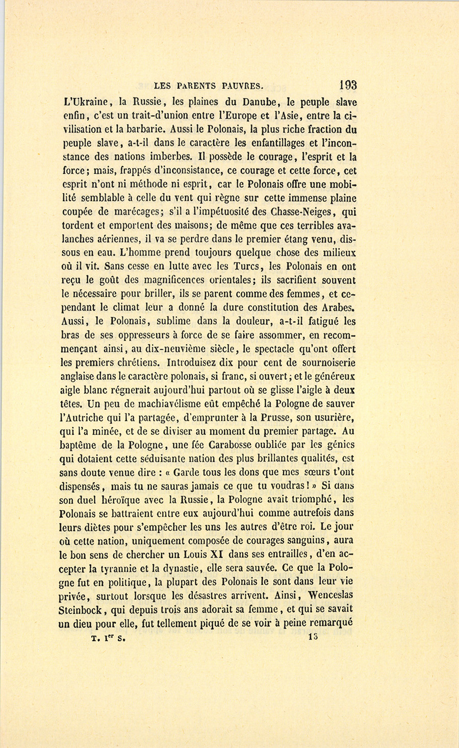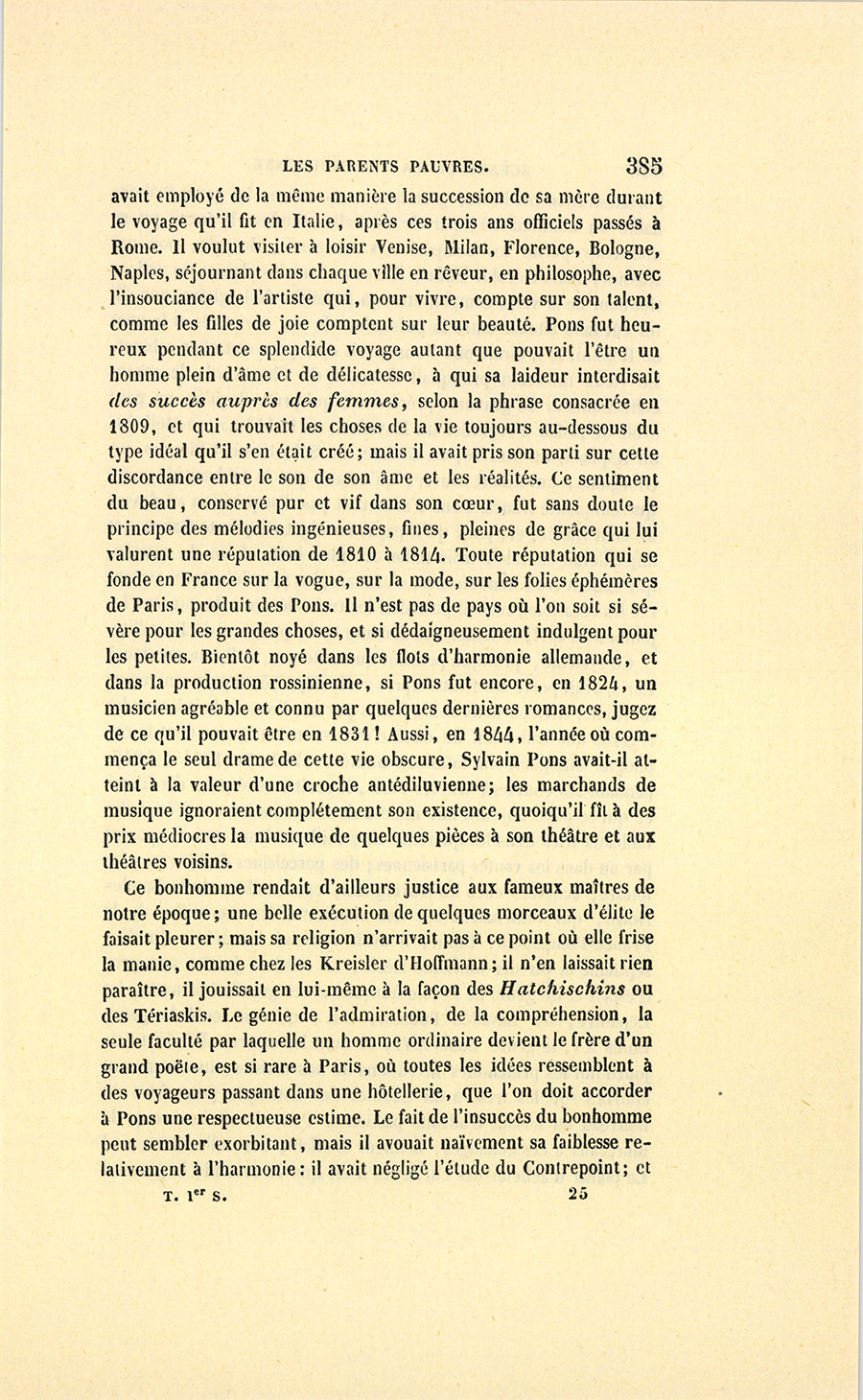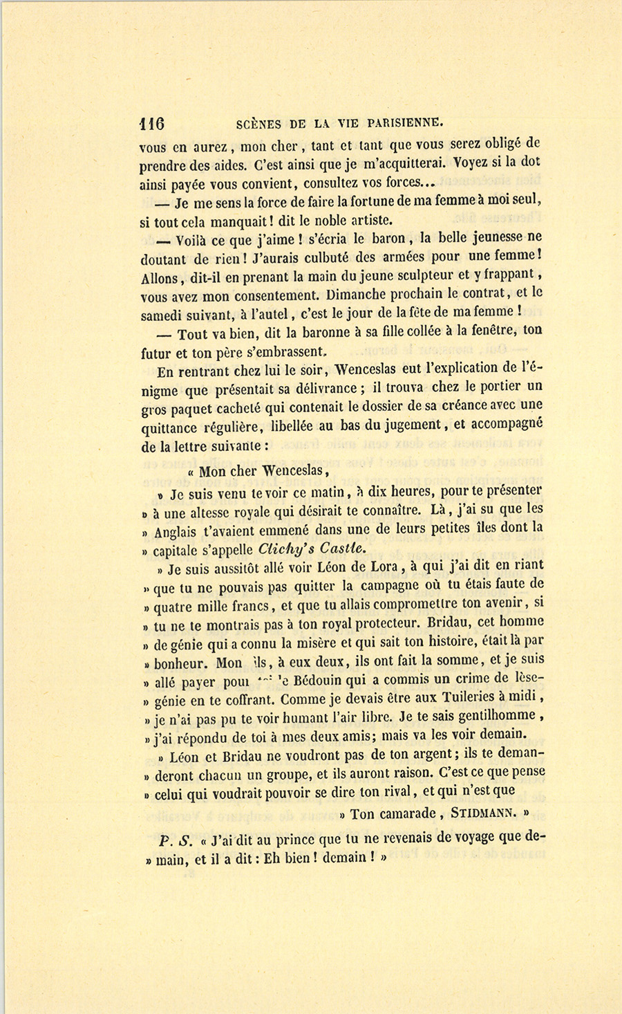 Un savant français se ferait une réputation, gagnerait une chaire et beaucoup de croix, à publier, en un volume dogmatique, l’improvisation par laquelle vous avez charmé l’une de ces soirées où l’on se repose d’avoir vu Rome. Vous ne savez peut-être pas que la plupart de nos professeurs vivent sur l’Allemagne, sur l’Angleterre, sur l’Orient ou sur le Nord, comme des insectes sur un arbre ; et, comme l’insecte, ils en deviennent partie intégrante, empruntant leur valeur de celle du sujet. Or, l’Italie n’a pas encore été exploitée à chaire ouverte. On ne me tiendra jamais compte de ma discrétion littéraire. J’aurais pu, vous dépouillant, devenir un homme docte de la force de trois Schlegel ; tandis que je vais rester simple docteur en médecine sociale, le vétérinaire des maux incurables ne fût-ce que pour offrir un témoignage de reconnaissance à mon cicerone, et joindre votre illustre nom à ceux des Porcia, des San Severino, des Pareto, des di Negro, des Belgiojoso, qui représenteront dans la Comédie Humaine cette alliance intime et continue de l’Italie et de la France {p. 2} que déjà le Bandello, cet évêque, auteur de contes très-drôlatiques, consacrait de la même manière, au seizième siècle, dans ce magnifique recueil de nouvelles d’où sont issues plusieurs pièces de Shakespeare, quelquefois même des rôles entiers, et textuellement.
