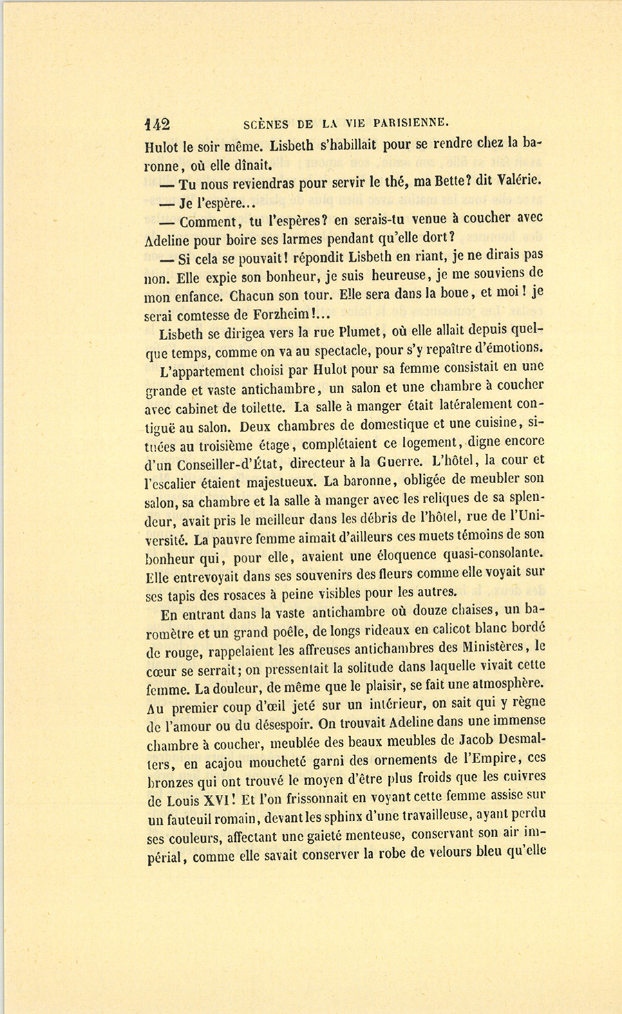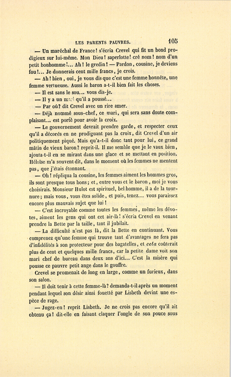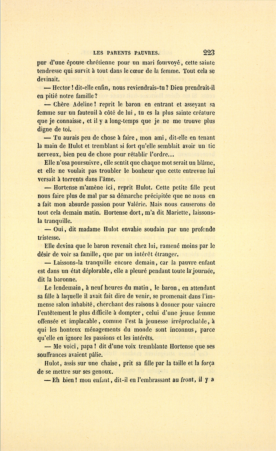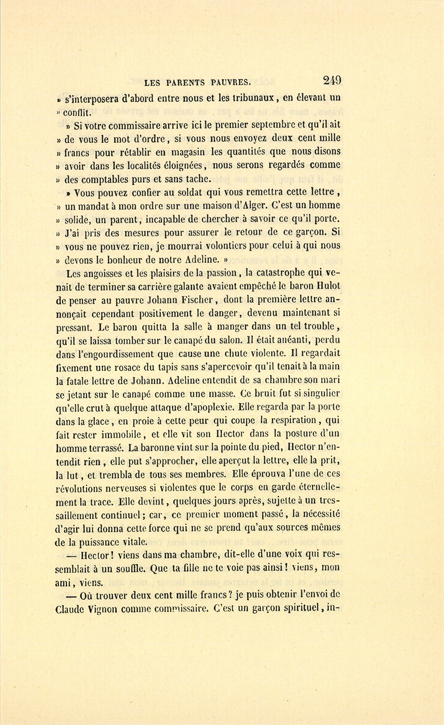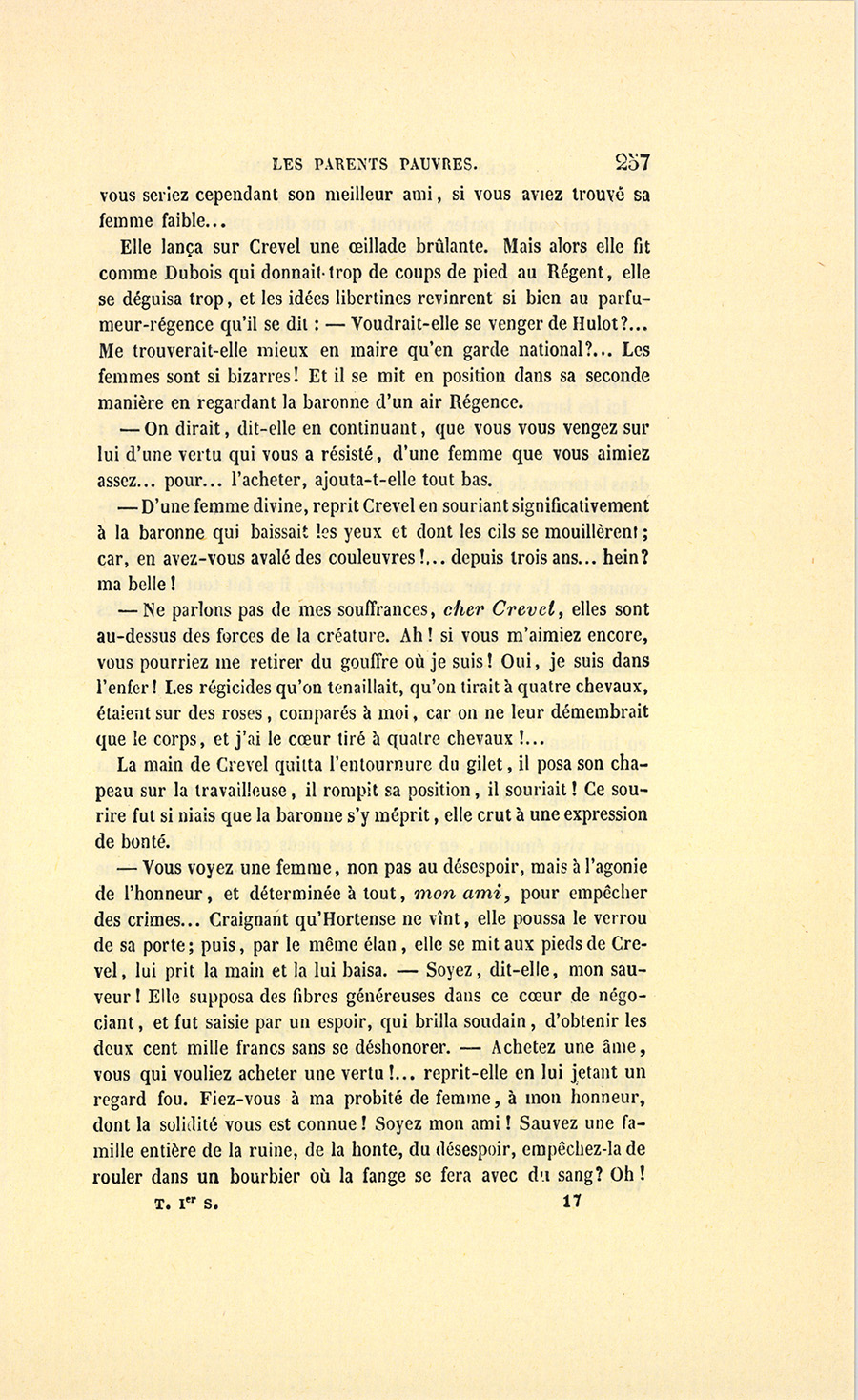 {p. 9} – Auriez-vous tenu ce langage, monsieur, demanda madame Hulot en regardant fixement Crevel, si pour vous j’eusse manqué à mes devoirs ?…