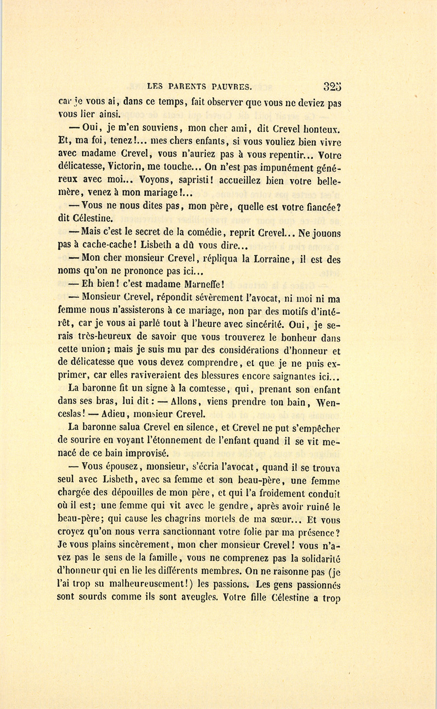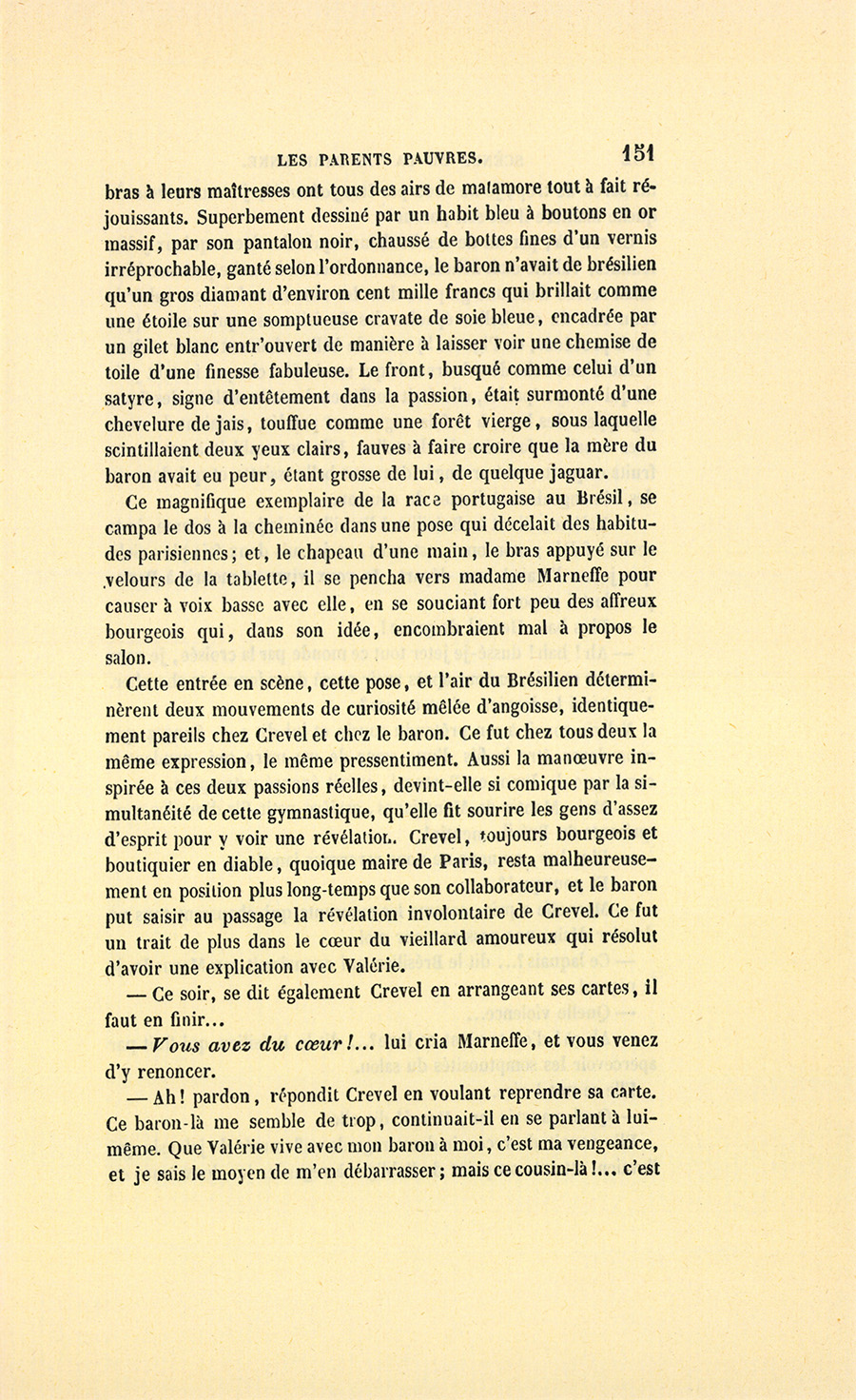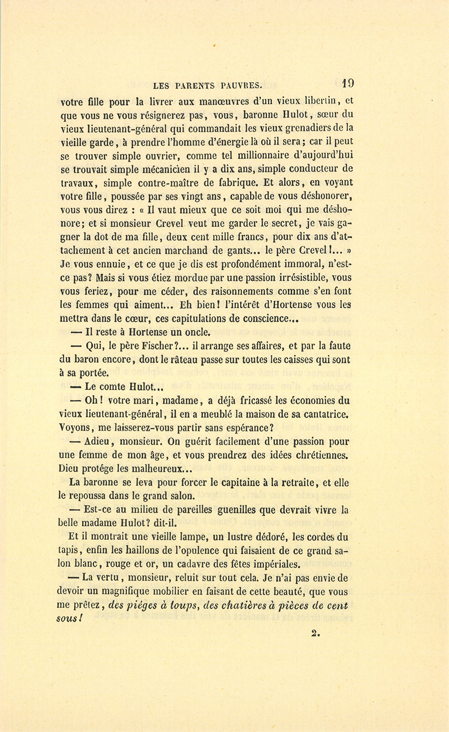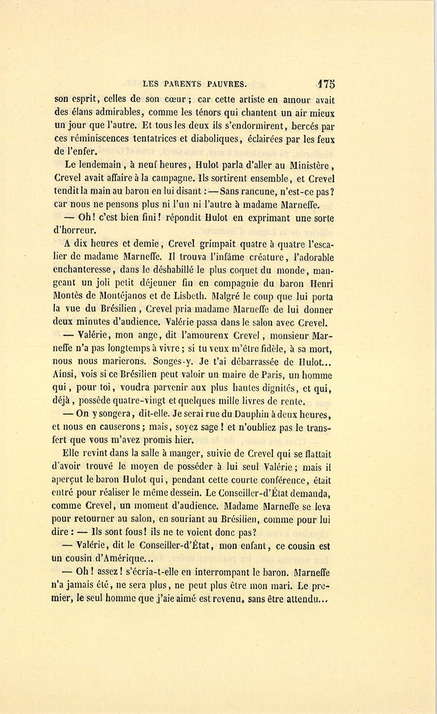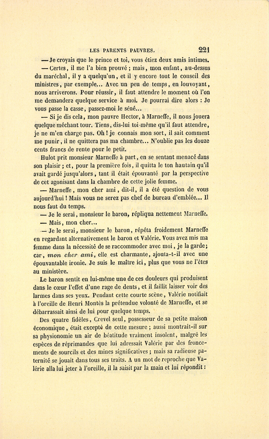 {p. 9} – Auriez-vous tenu ce langage, monsieur, demanda madame Hulot en regardant fixement Crevel, si pour vous j’eusse manqué à mes devoirs ?…