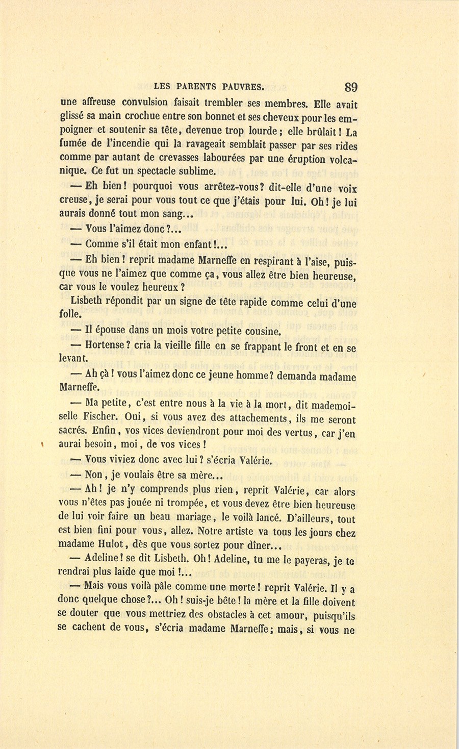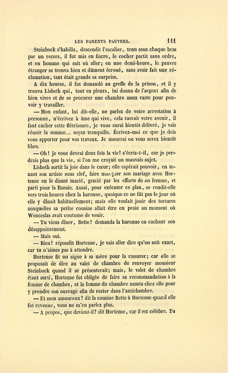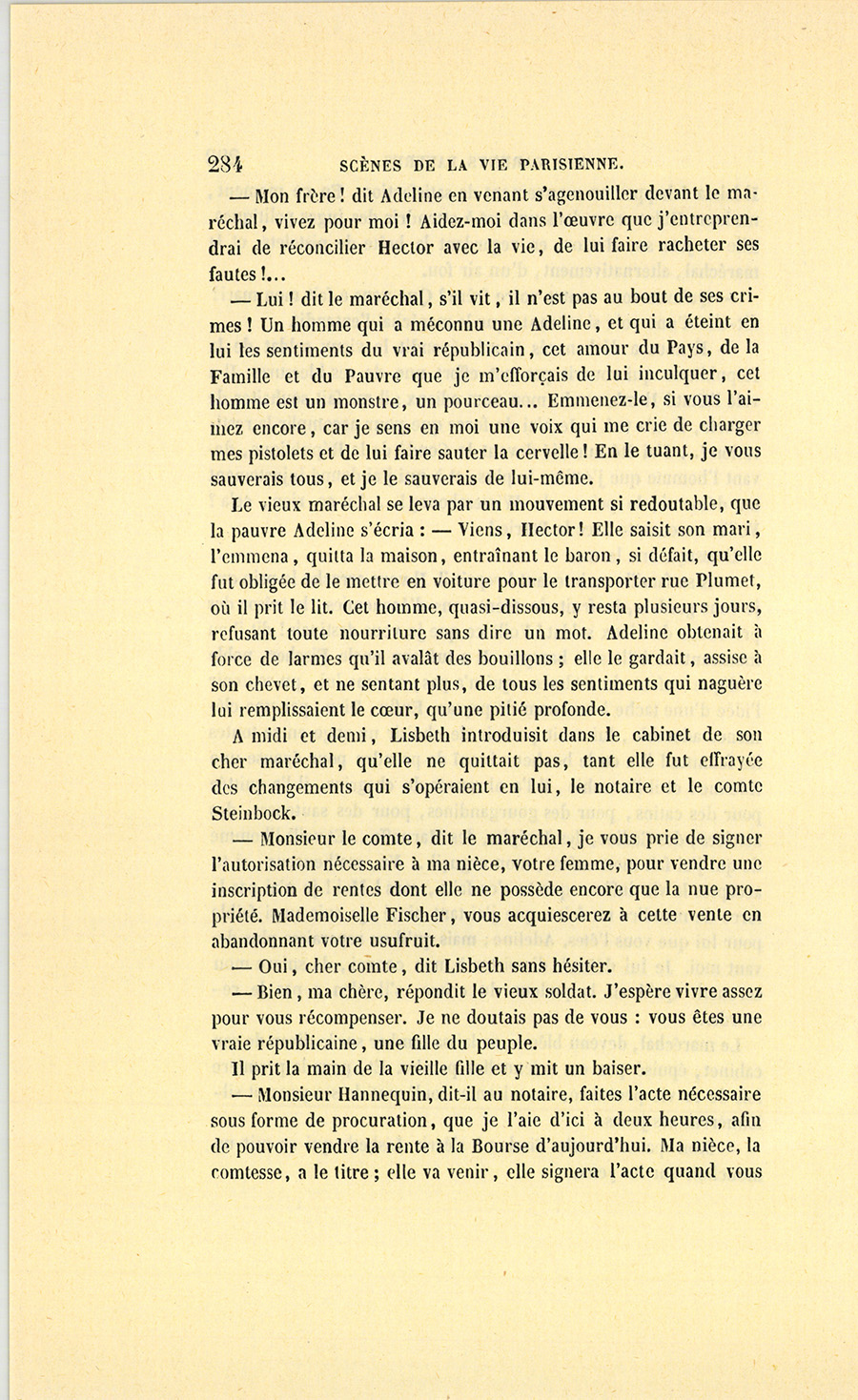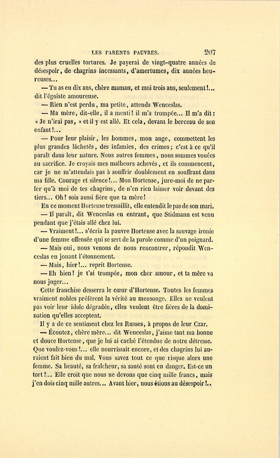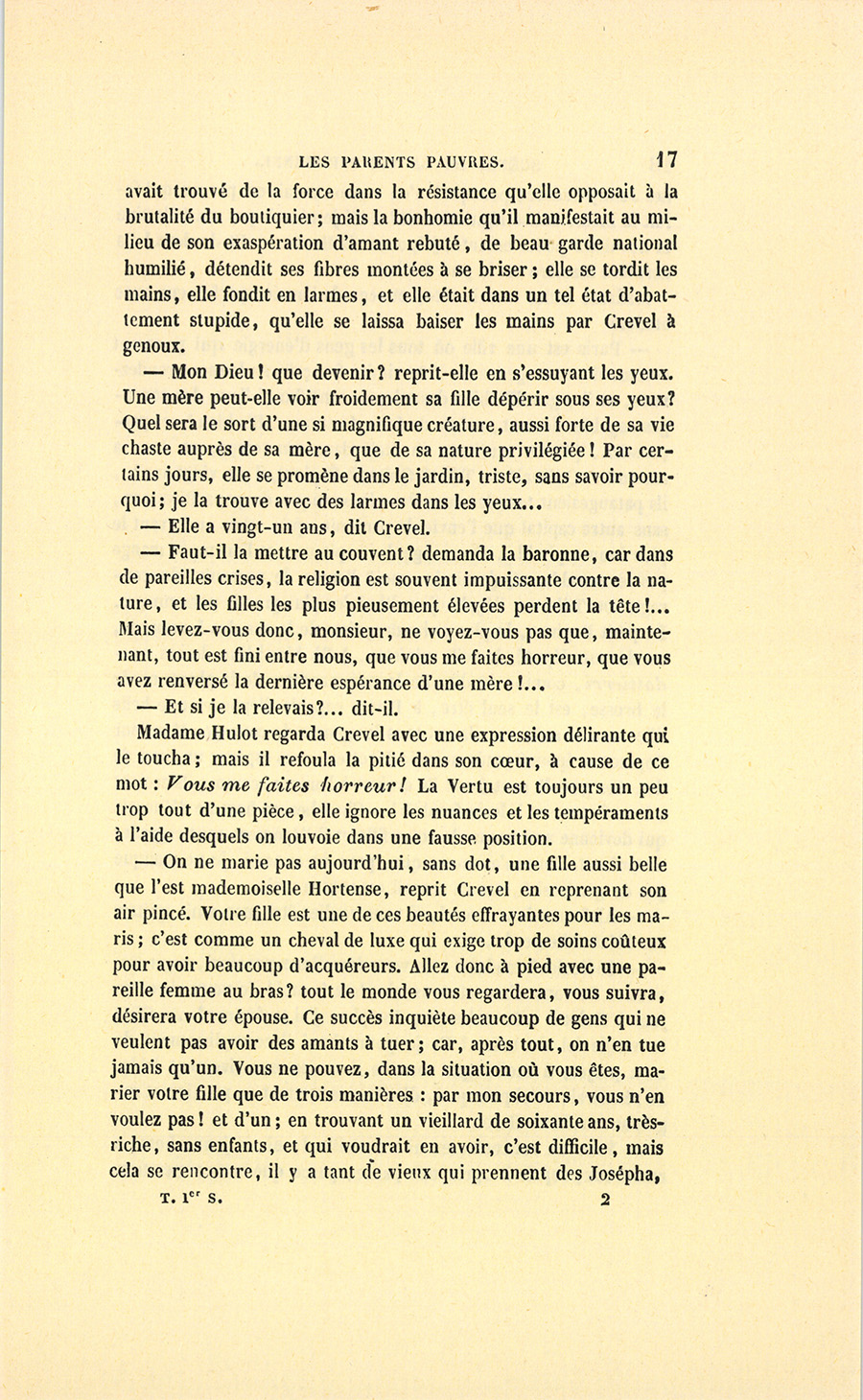 {p. 9} – Auriez-vous tenu ce langage, monsieur, demanda madame Hulot en regardant fixement Crevel, si pour vous j’eusse manqué à mes devoirs ?…