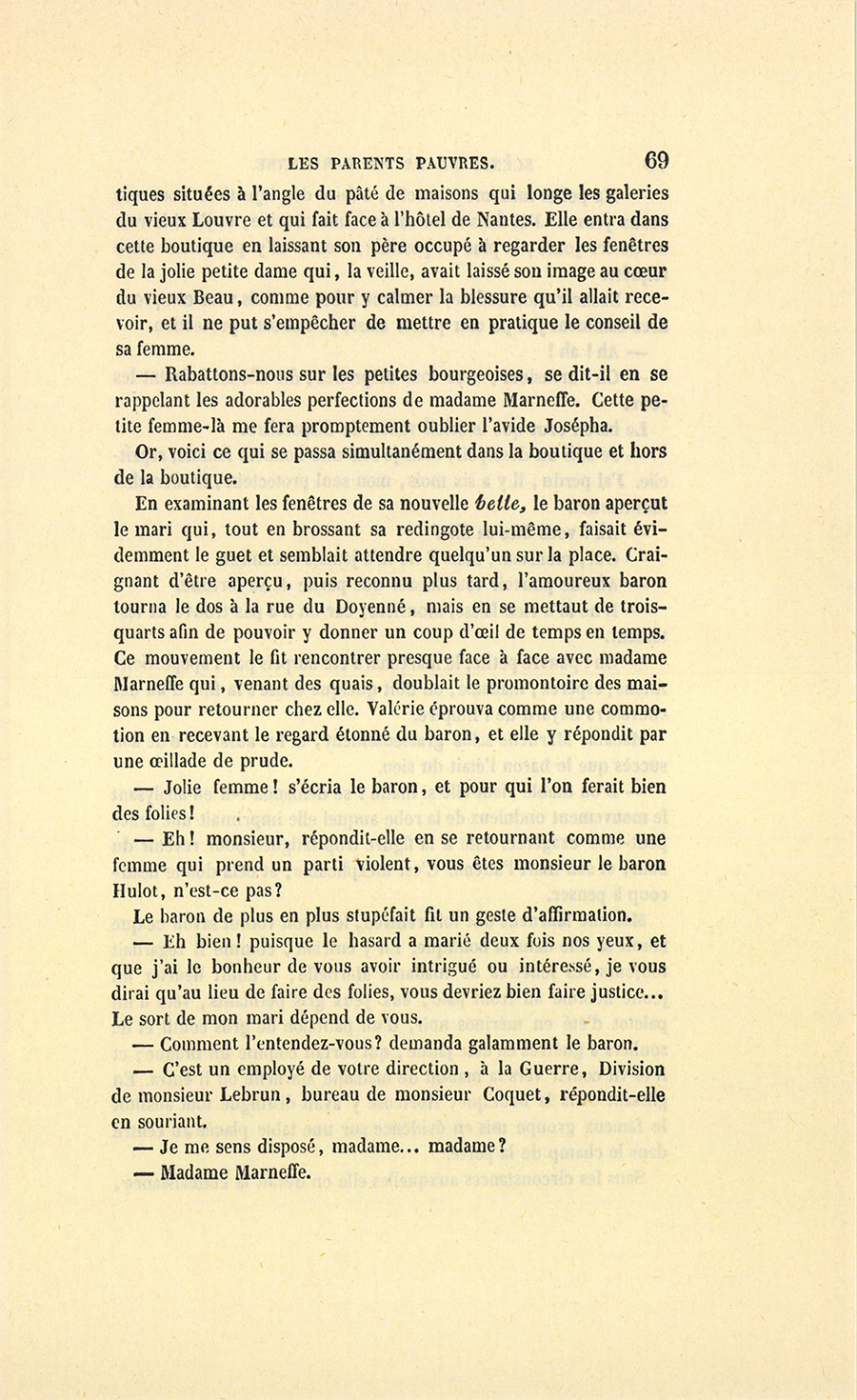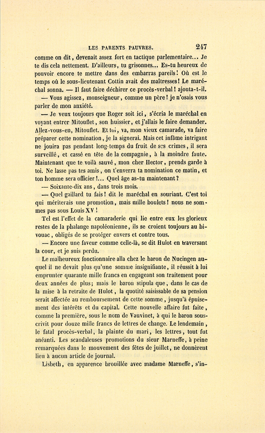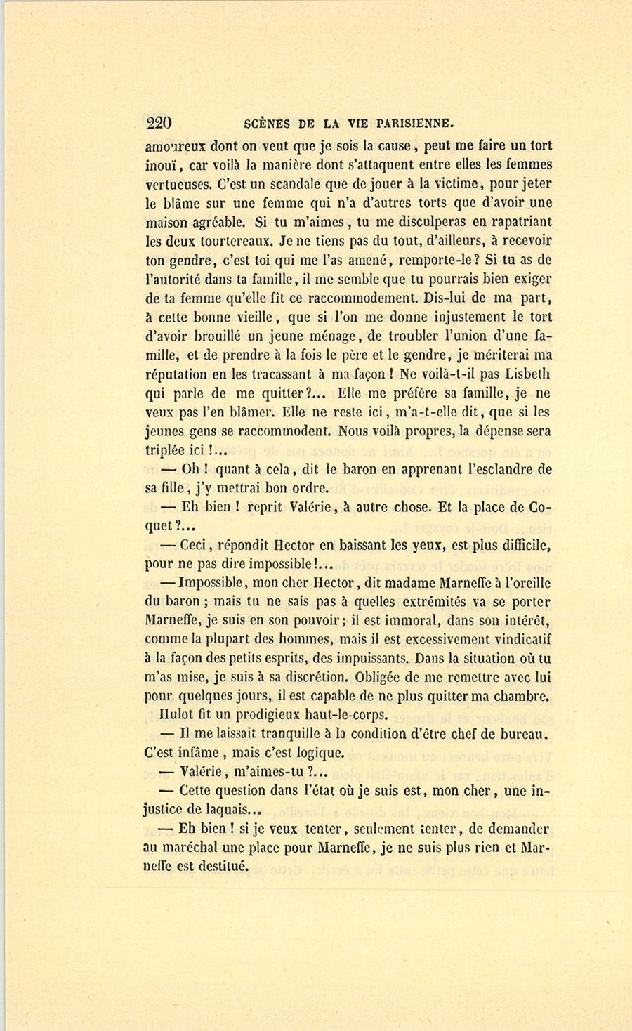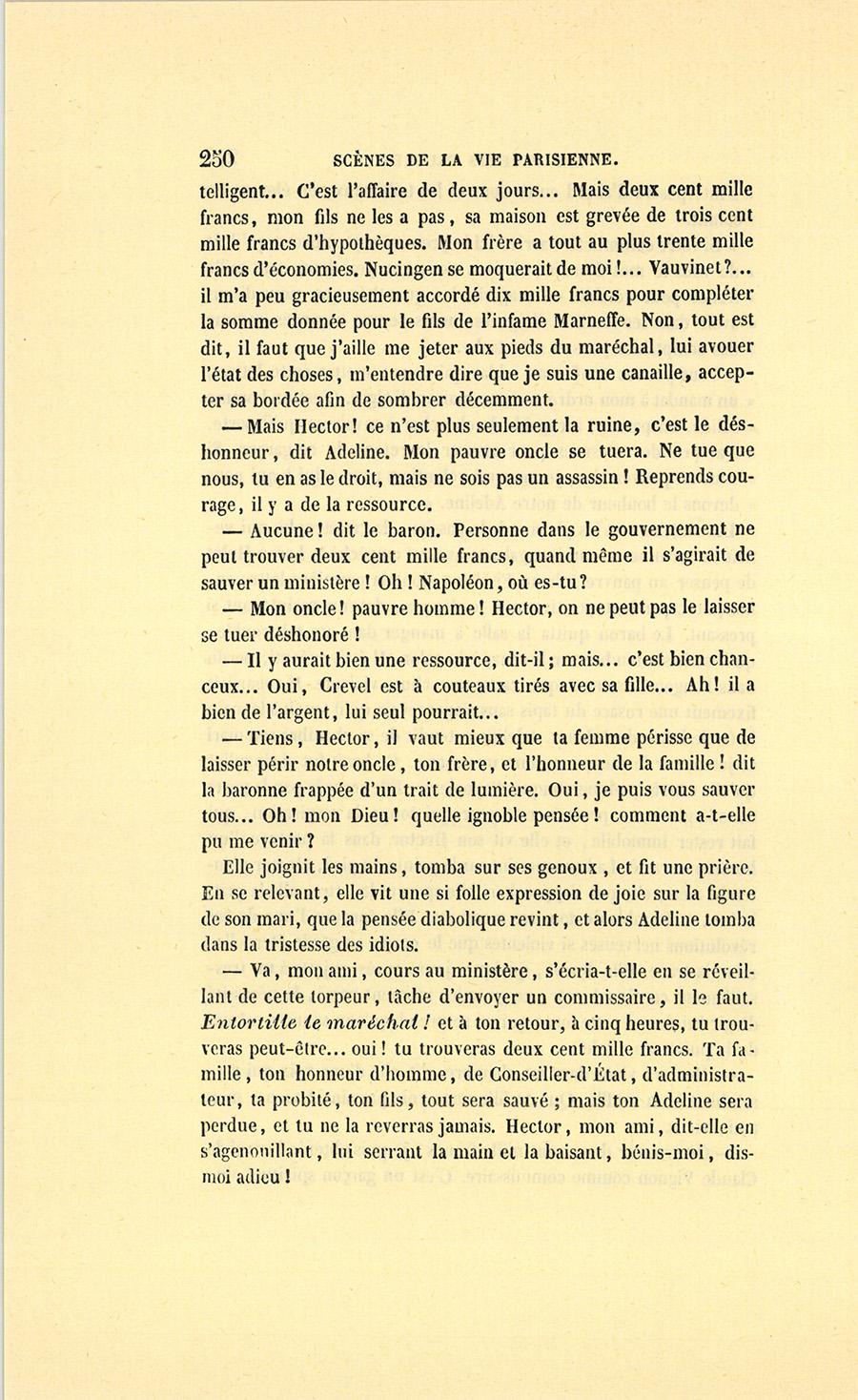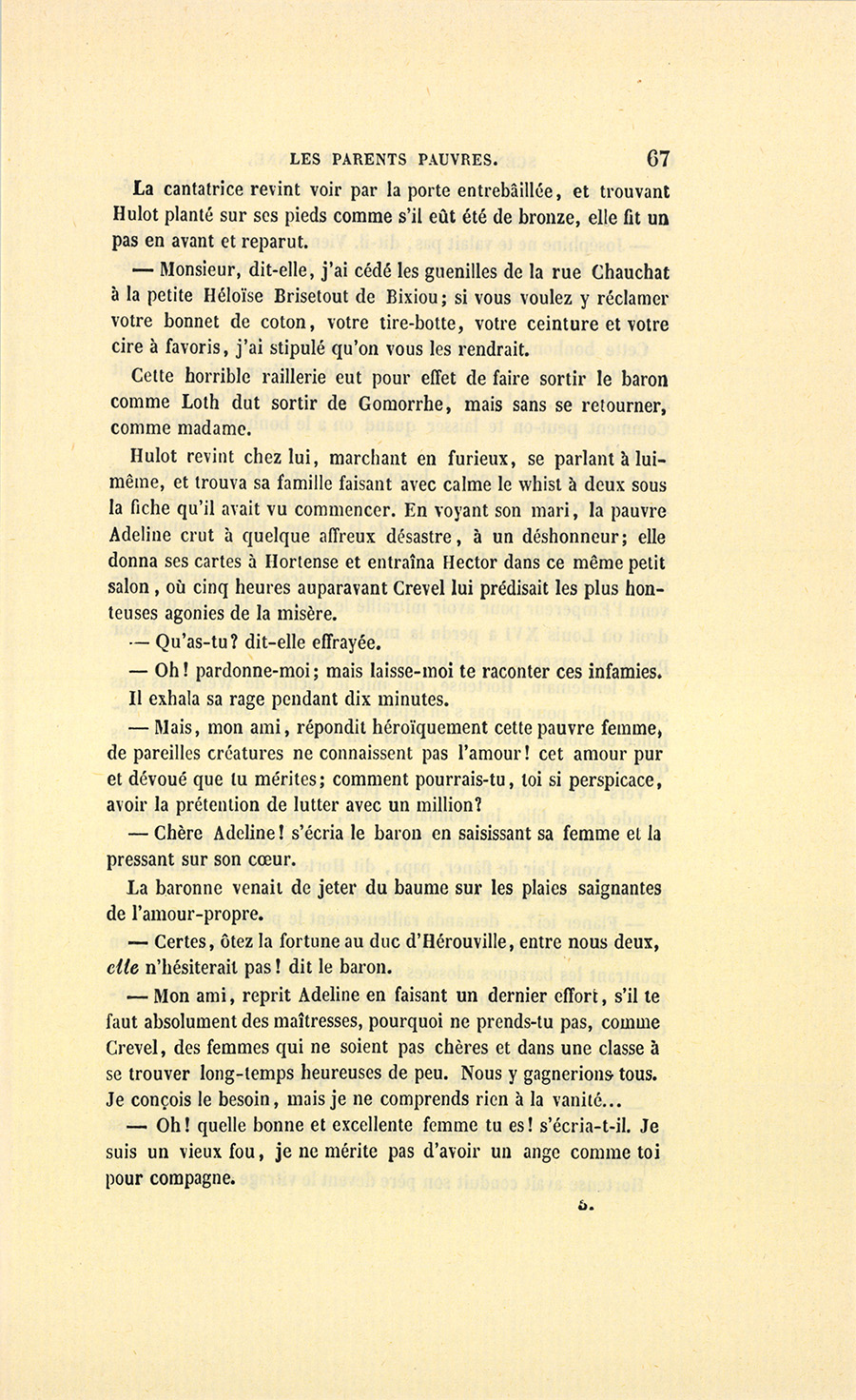 {p. 9} – Auriez-vous tenu ce langage, monsieur, demanda madame Hulot en regardant fixement Crevel, si pour vous j’eusse manqué à mes devoirs ?…