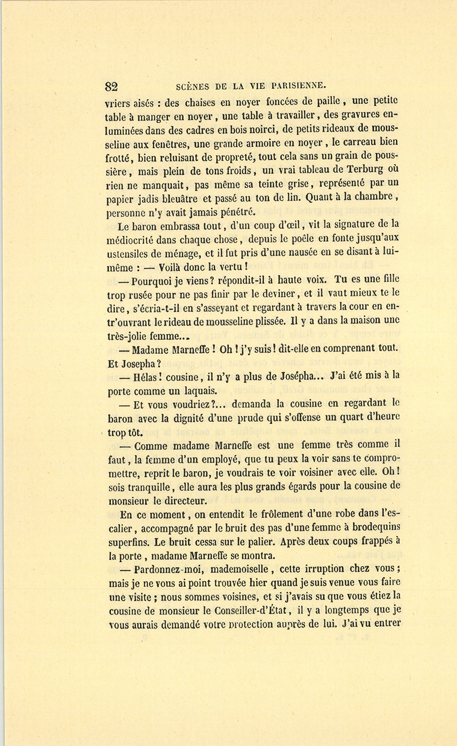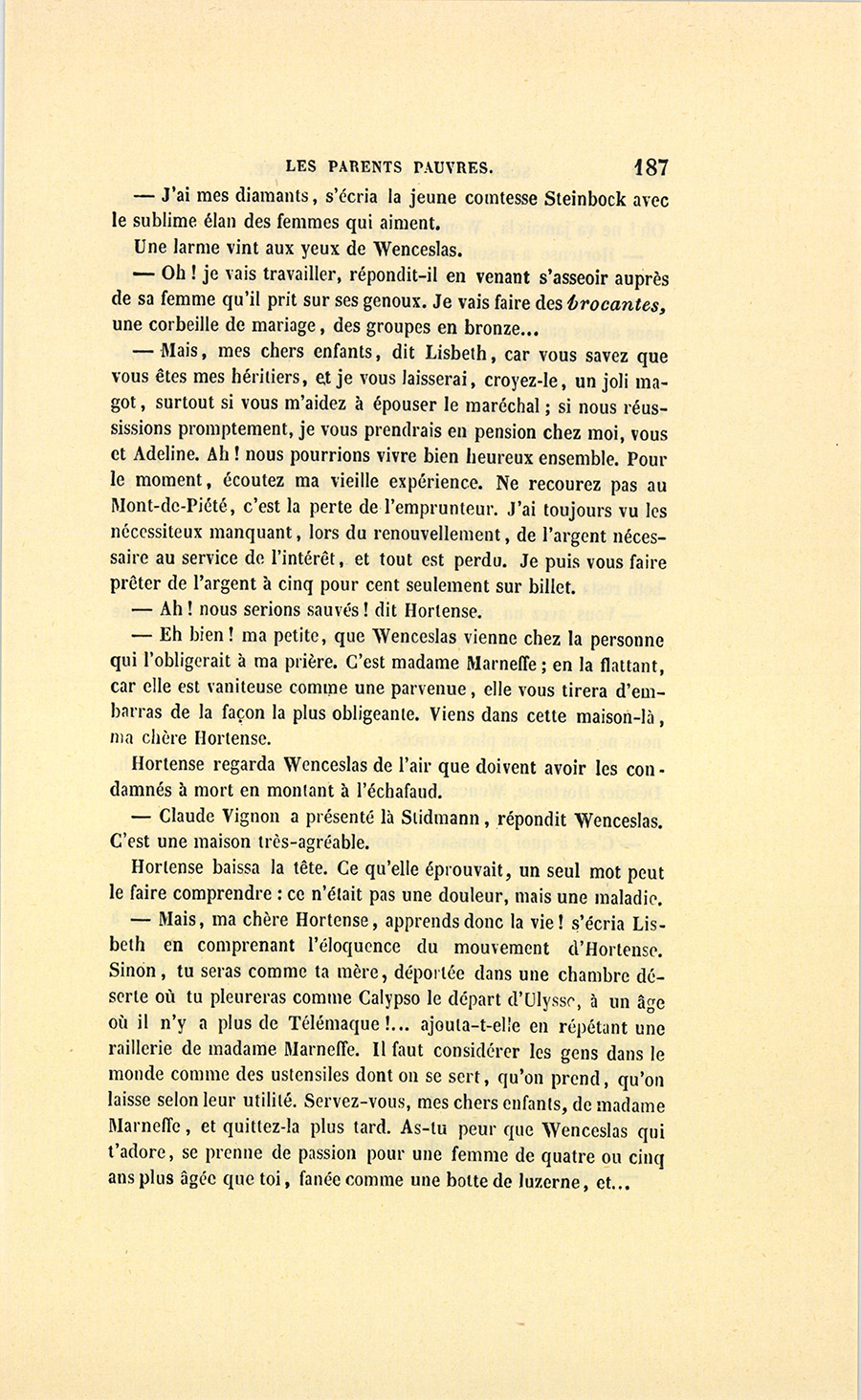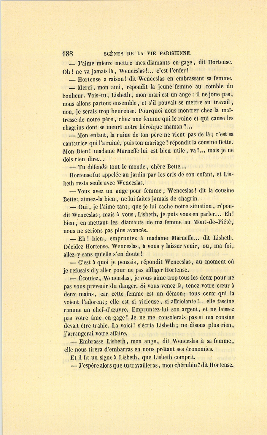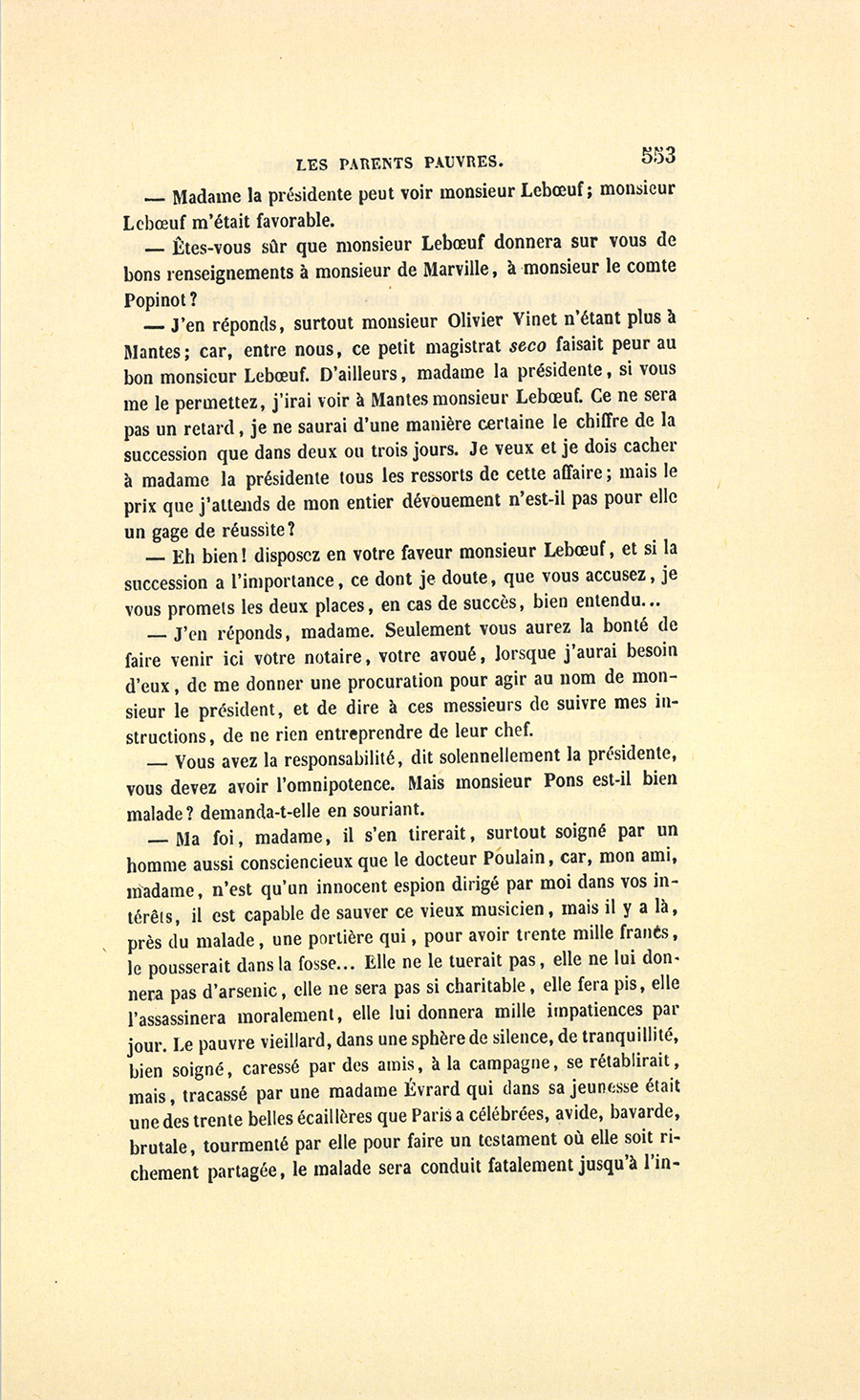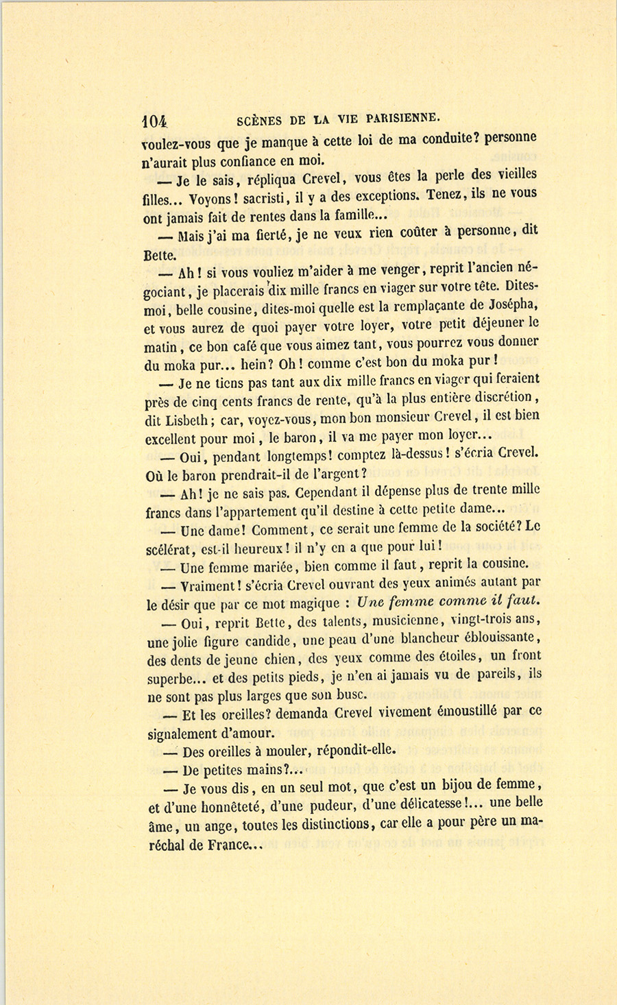 {p. 9} – Auriez-vous tenu ce langage, monsieur, demanda madame Hulot en regardant fixement Crevel, si pour vous j’eusse manqué à mes devoirs ?…
