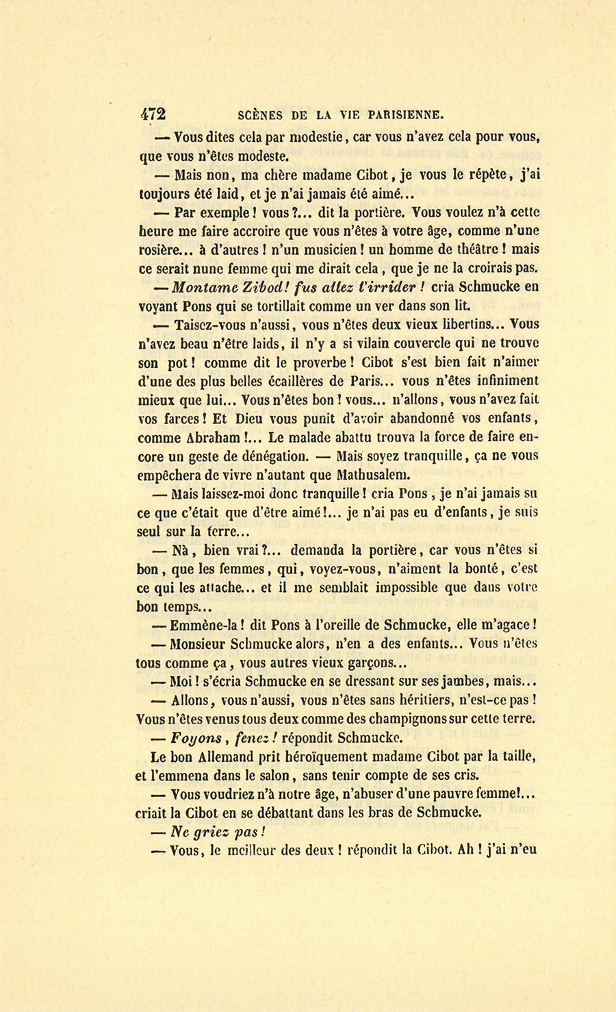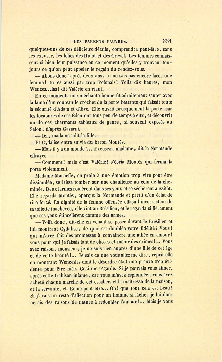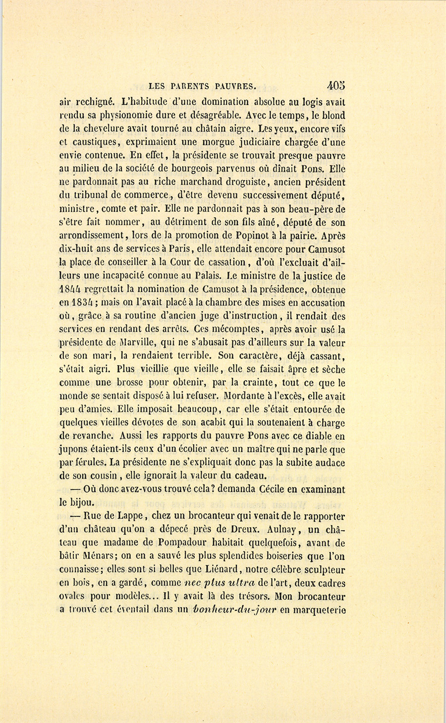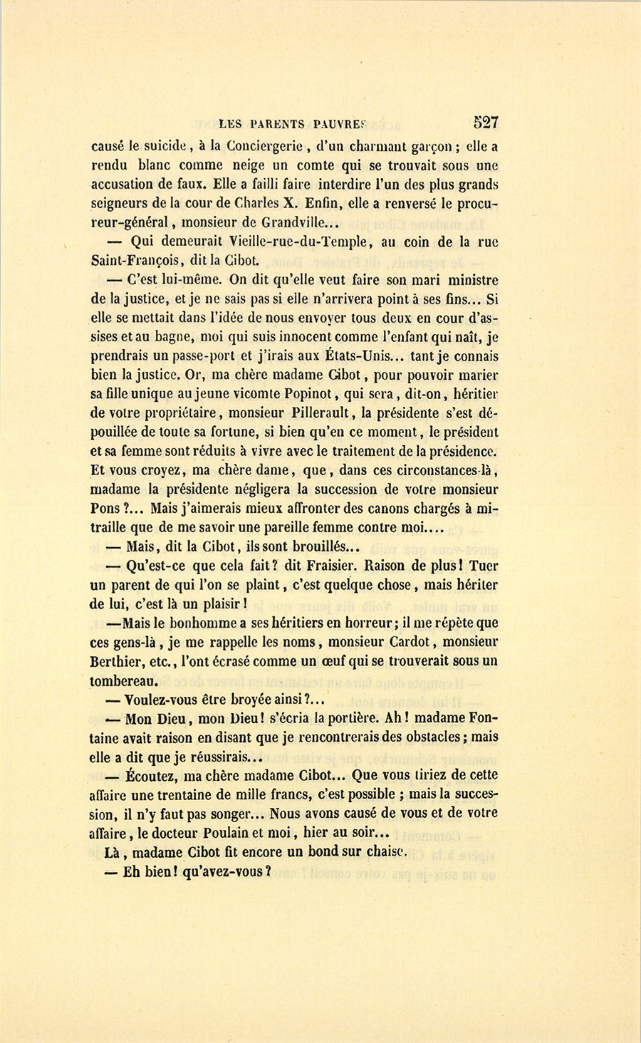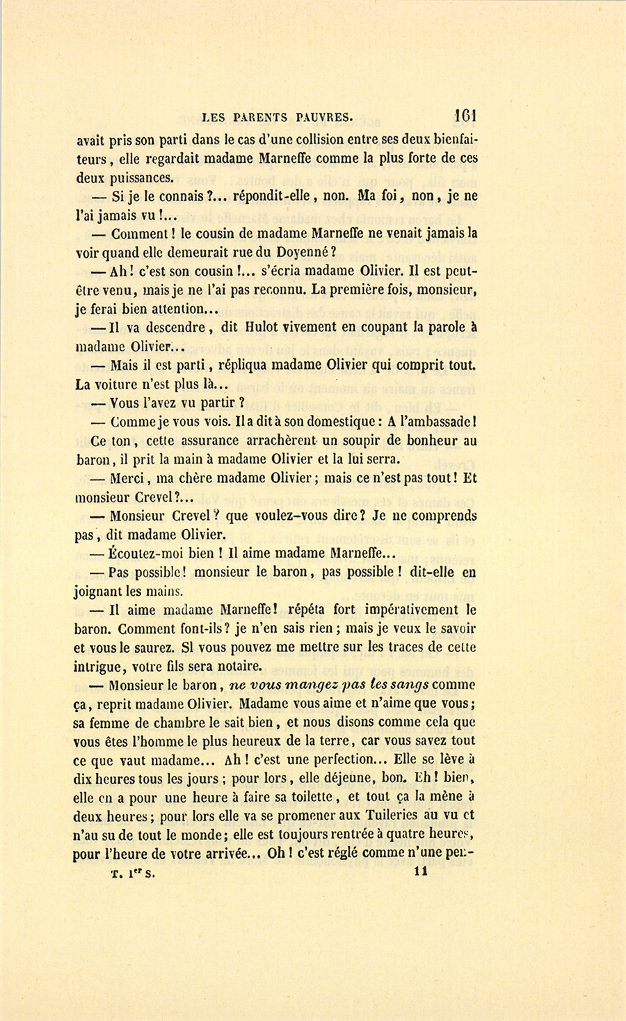 {p. 9} – Auriez-vous tenu ce langage, monsieur, demanda madame Hulot en regardant fixement Crevel, si pour vous j’eusse manqué à mes devoirs ?…