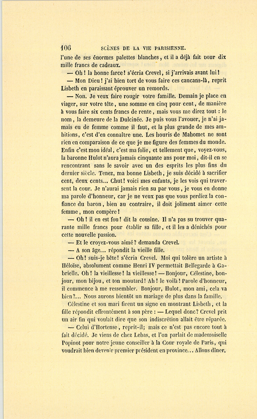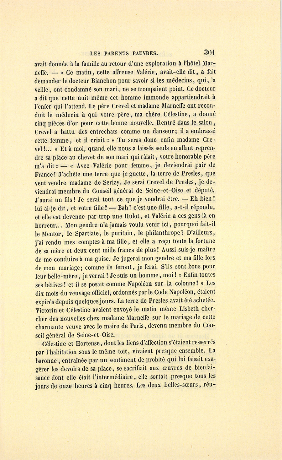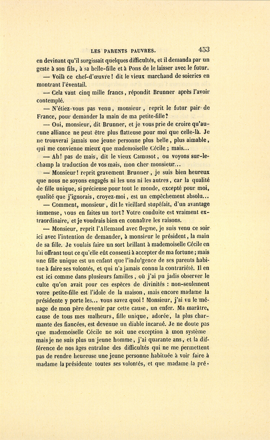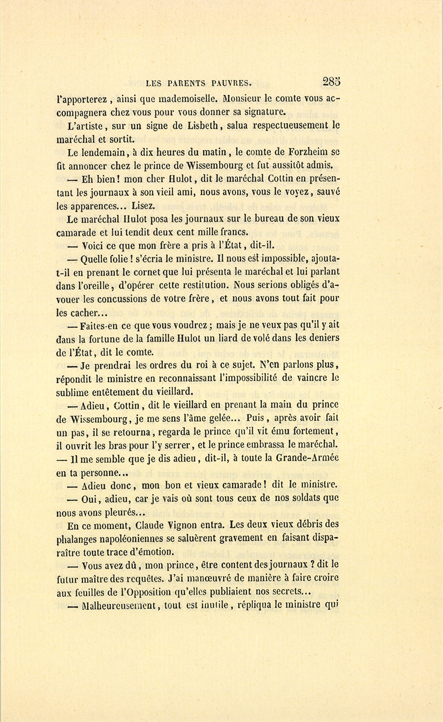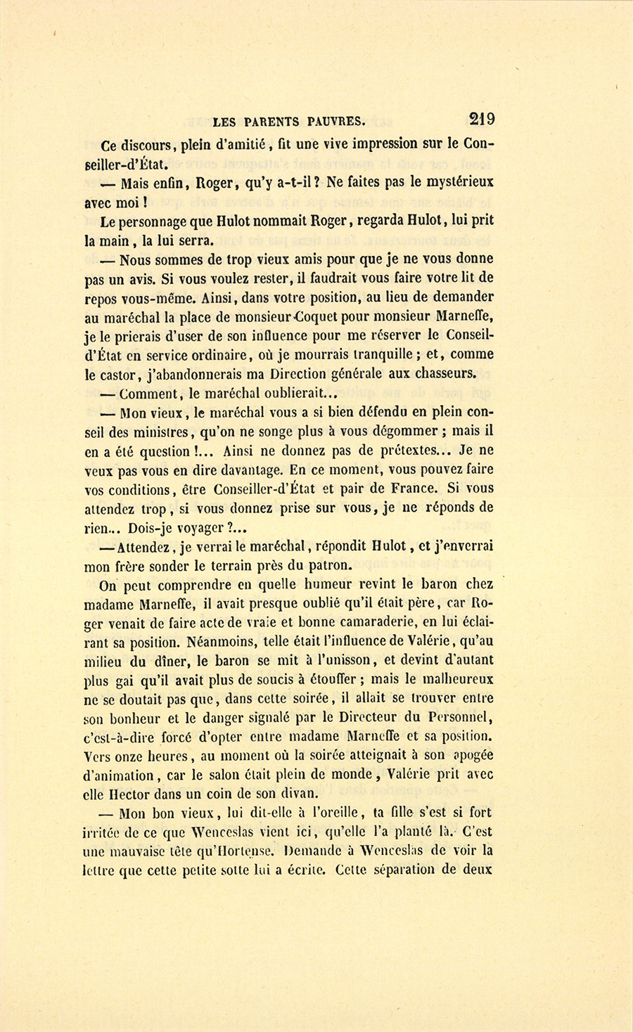 {p. 9} – Auriez-vous tenu ce langage, monsieur, demanda madame Hulot en regardant fixement Crevel, si pour vous j’eusse manqué à mes devoirs ?…
