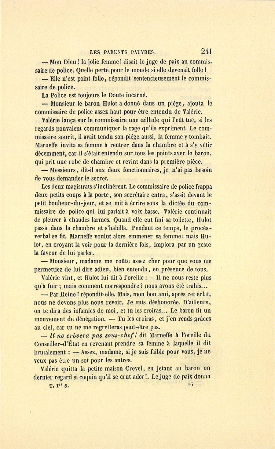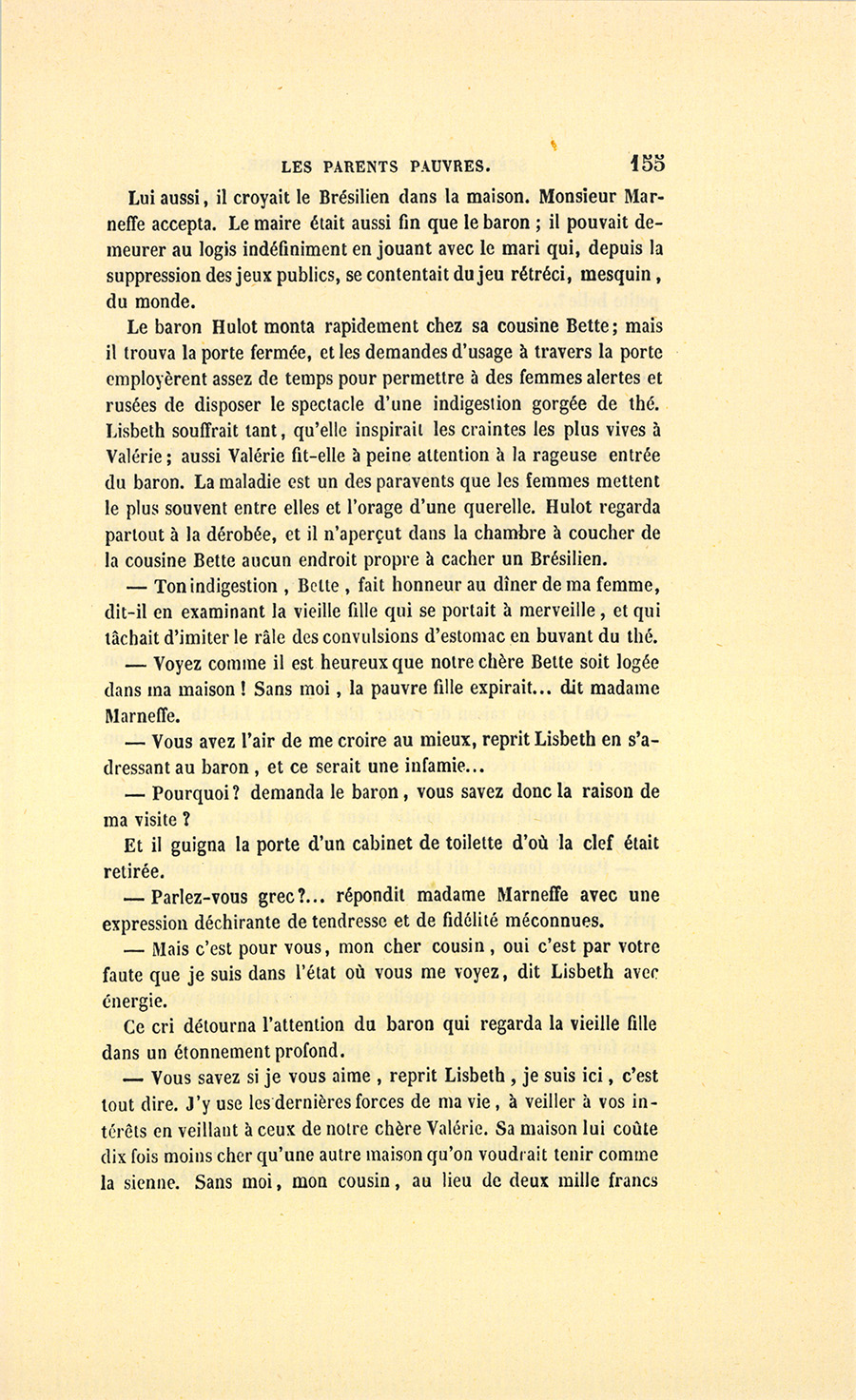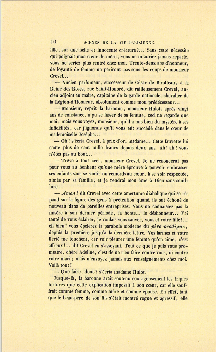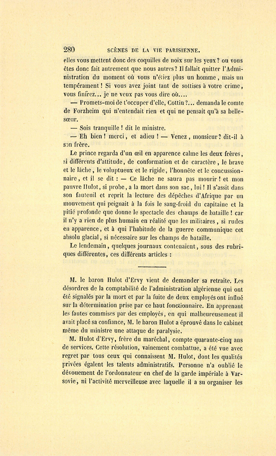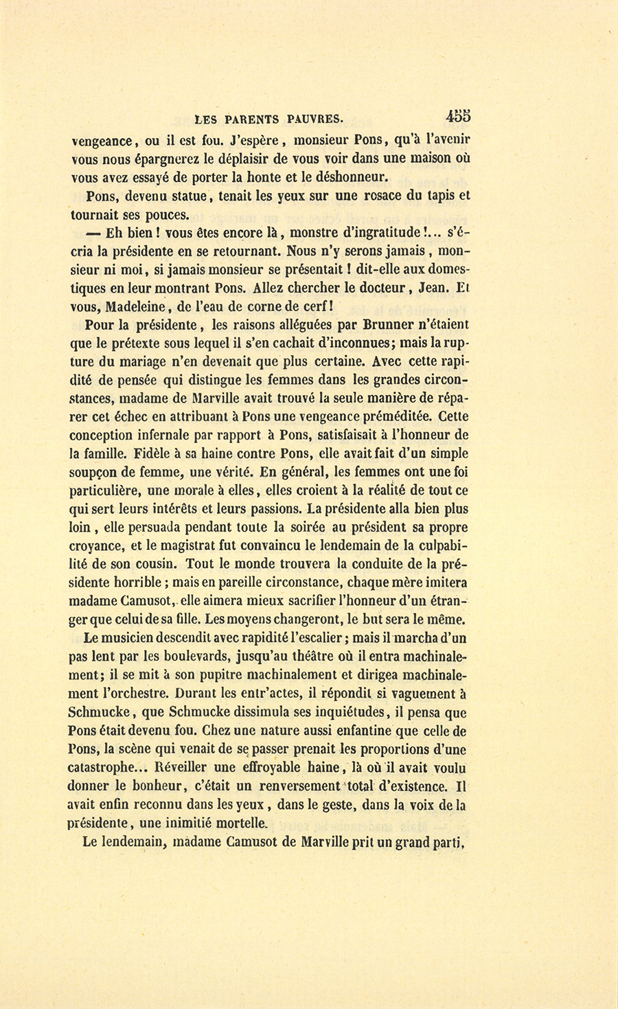 {p. 9} – Auriez-vous tenu ce langage, monsieur, demanda madame Hulot en regardant fixement Crevel, si pour vous j’eusse manqué à mes devoirs ?…