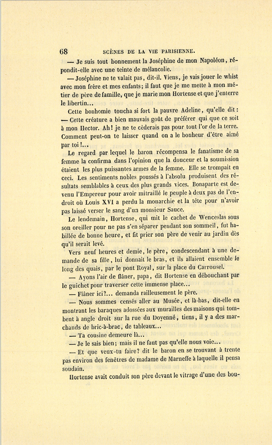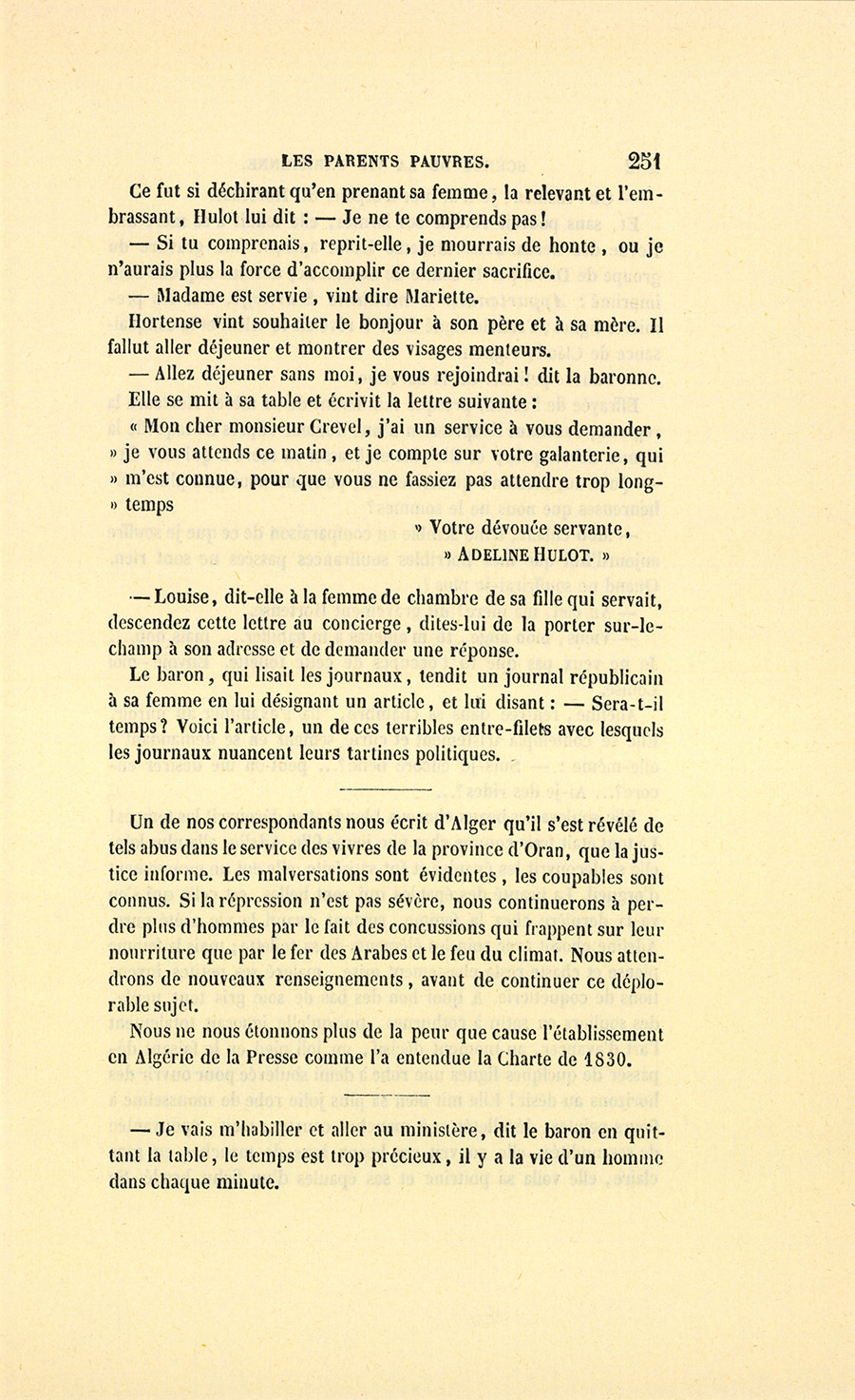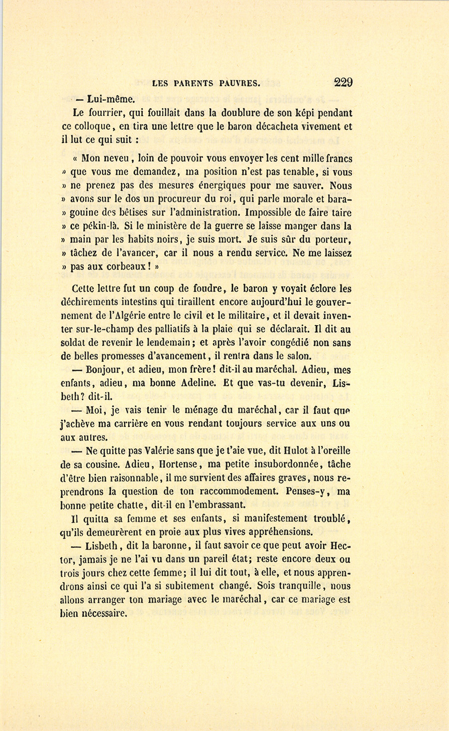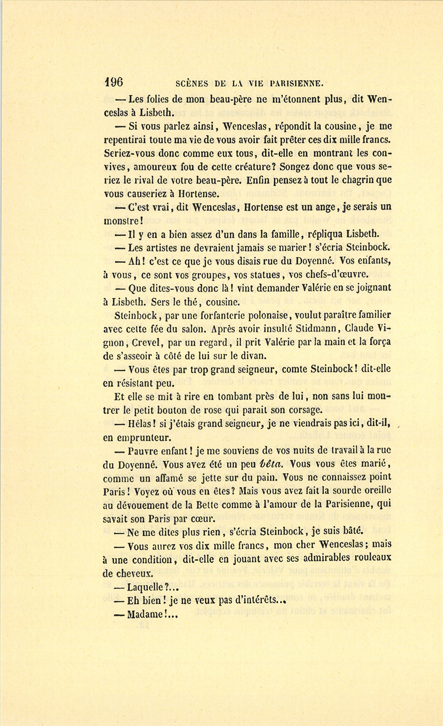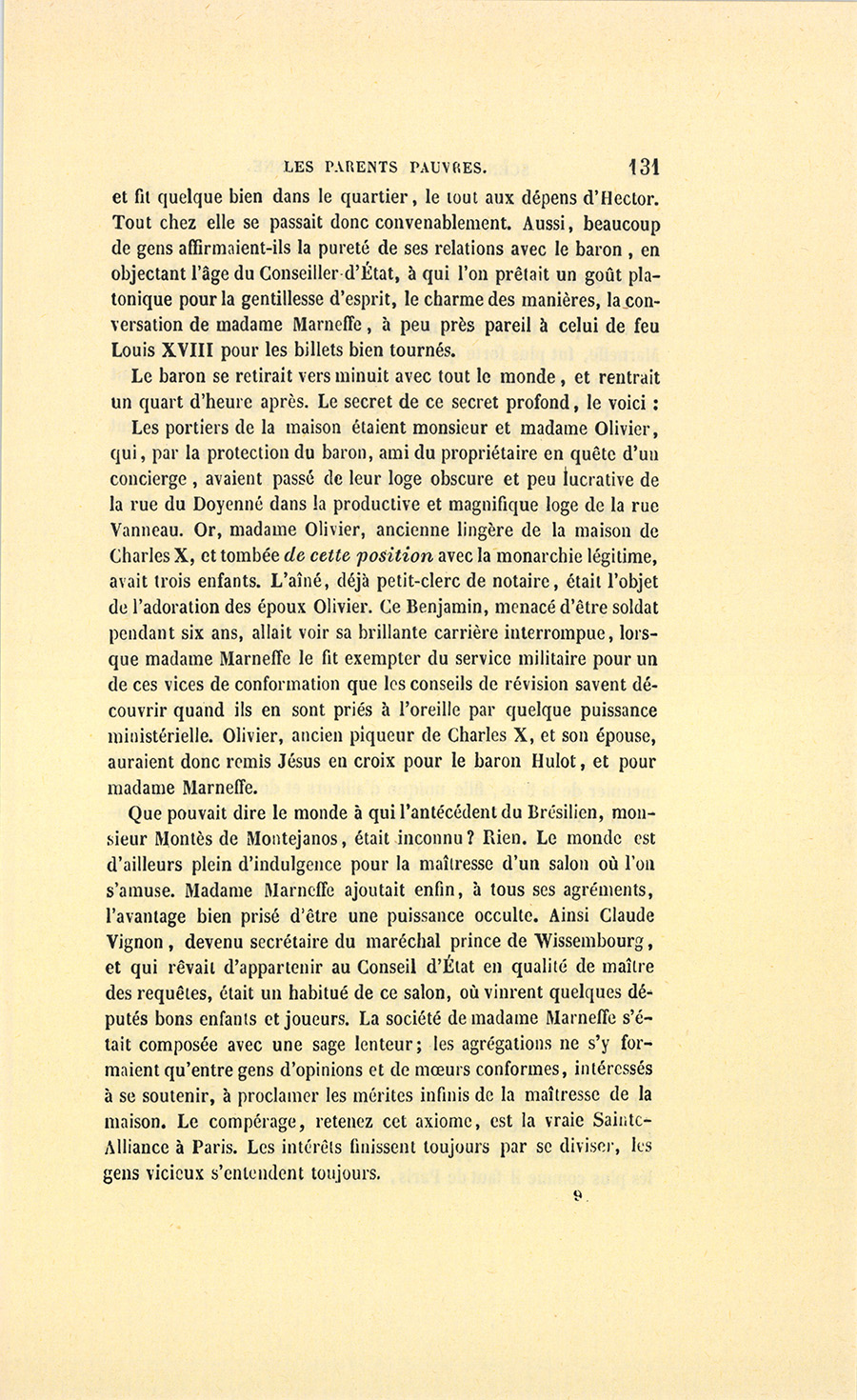 {p. 9} – Auriez-vous tenu ce langage, monsieur, demanda madame Hulot en regardant fixement Crevel, si pour vous j’eusse manqué à mes devoirs ?…