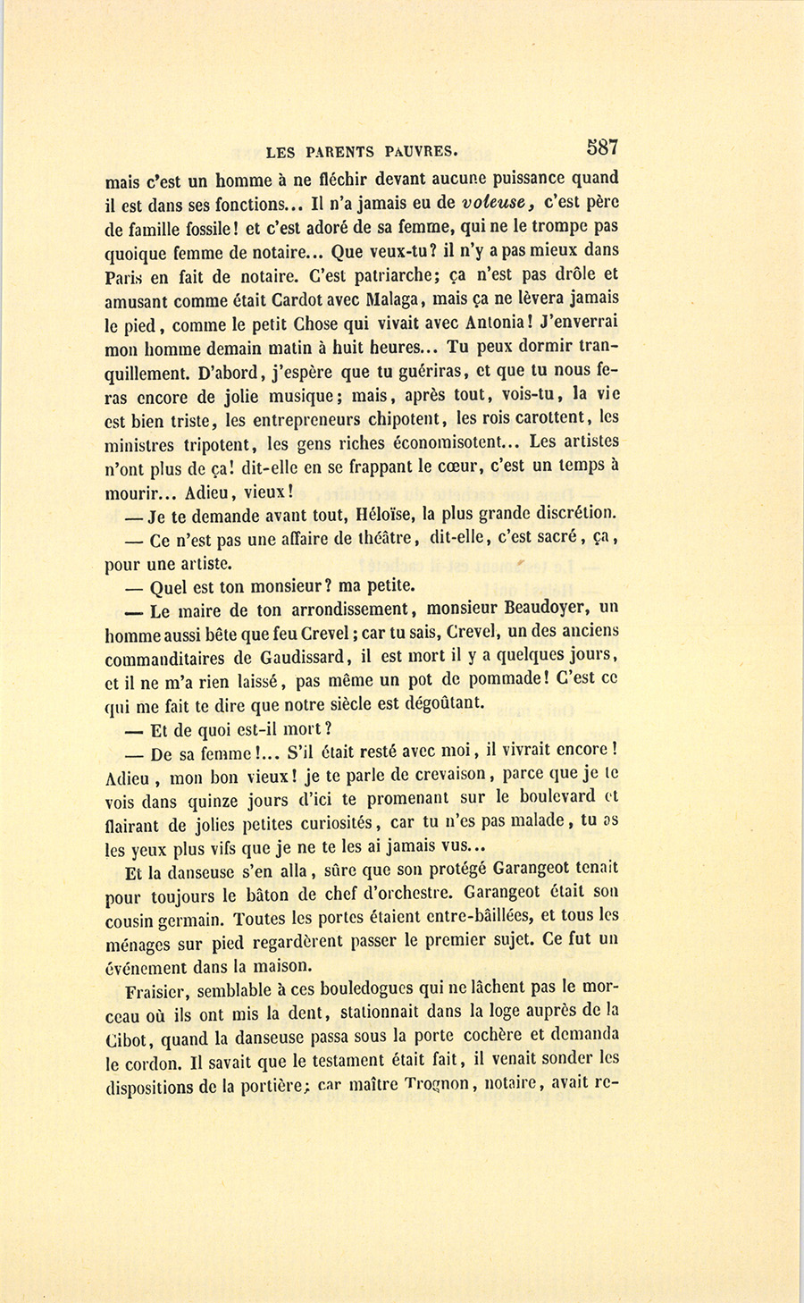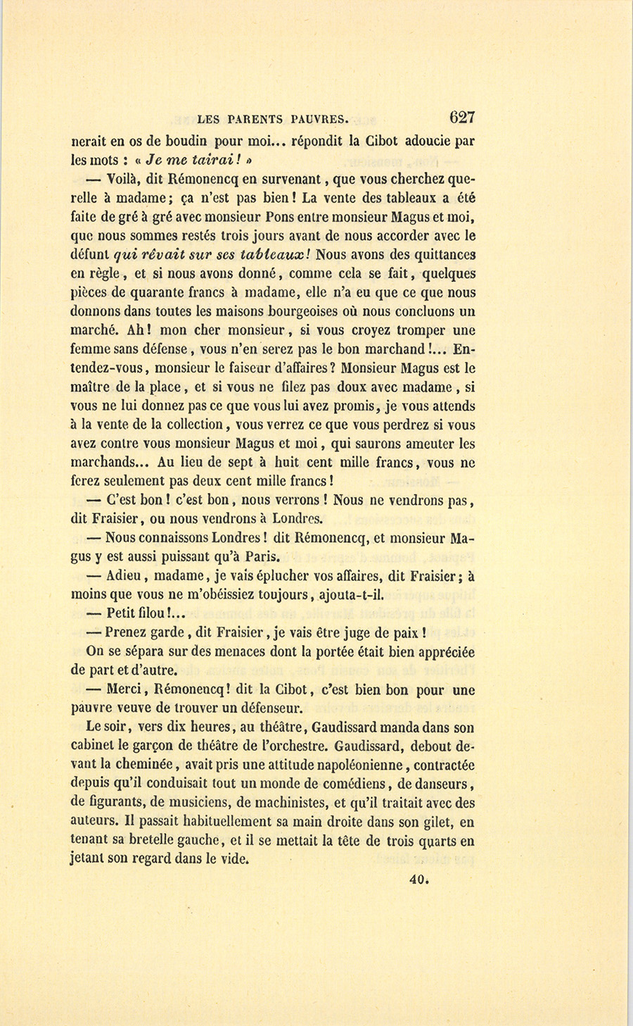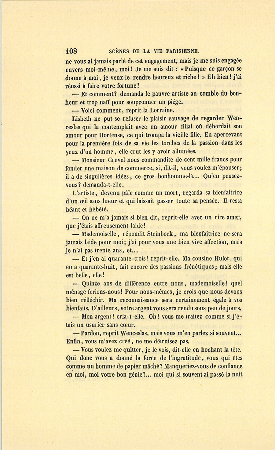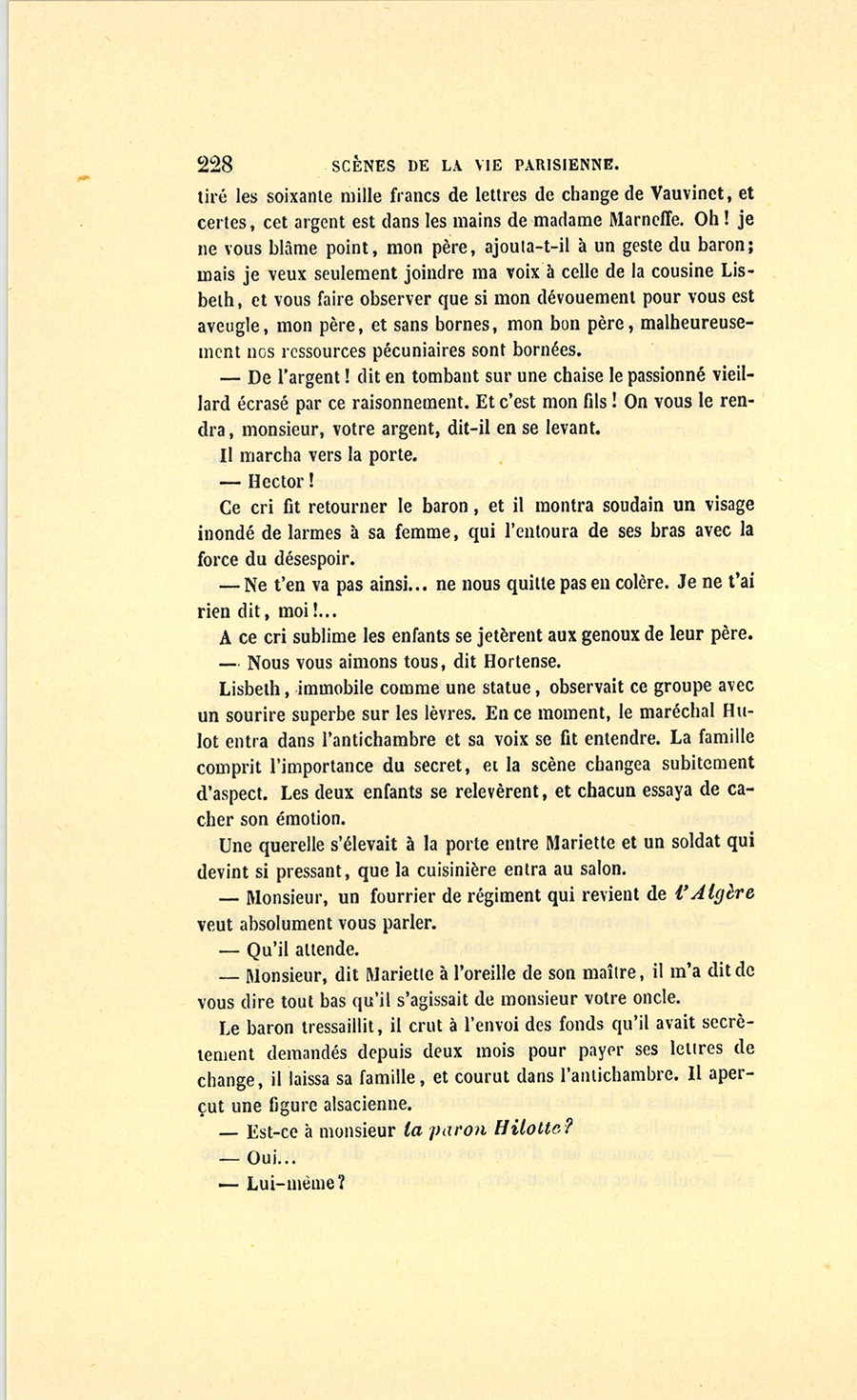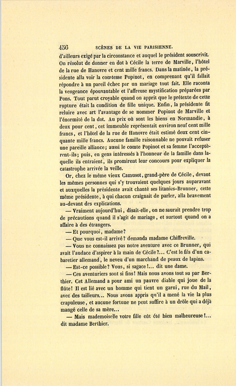 {p. 9} – Auriez-vous tenu ce langage, monsieur, demanda madame Hulot en regardant fixement Crevel, si pour vous j’eusse manqué à mes devoirs ?…
