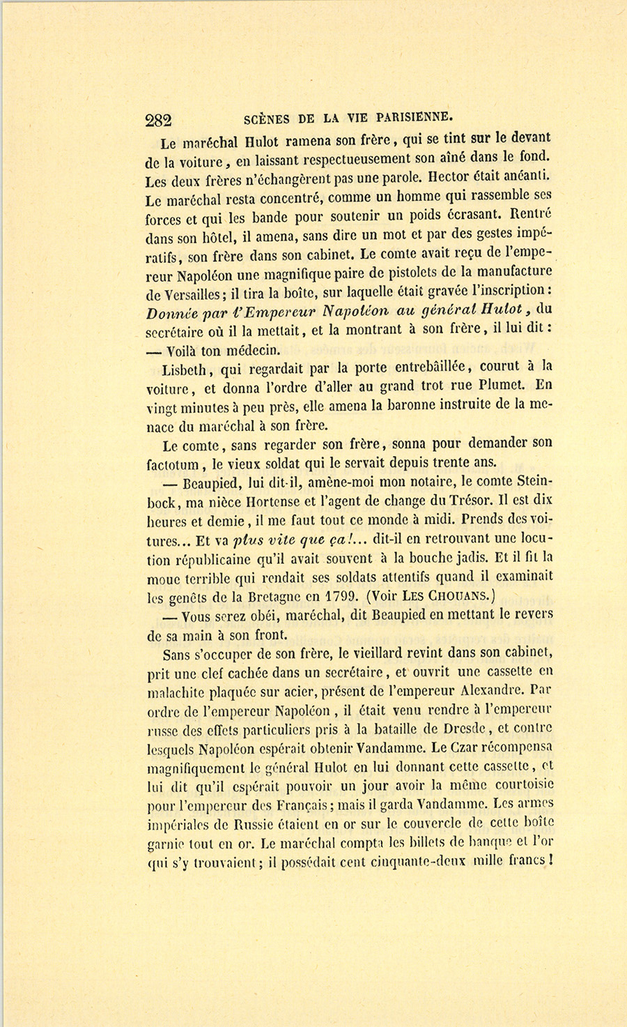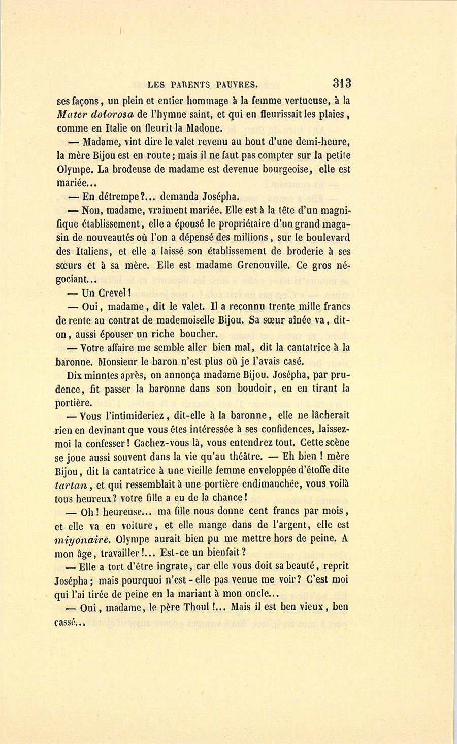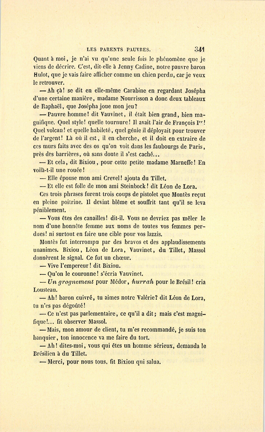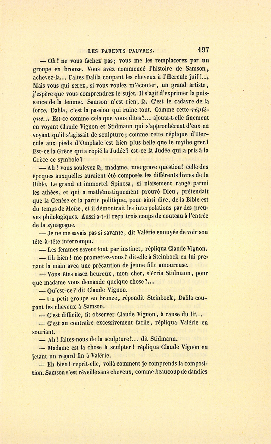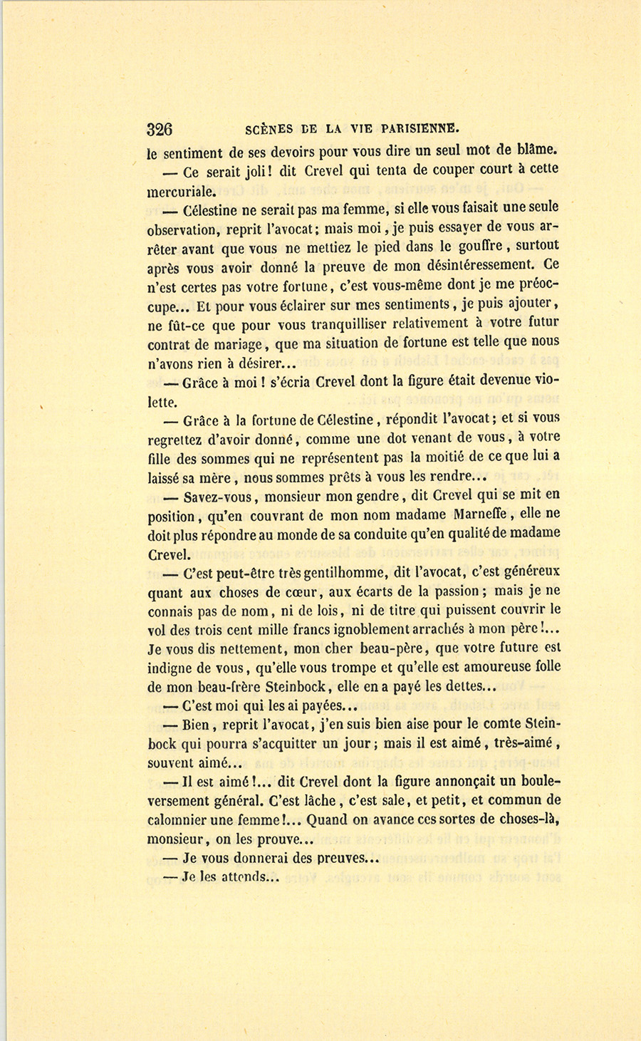 {p. 9} – Auriez-vous tenu ce langage, monsieur, demanda madame Hulot en regardant fixement Crevel, si pour vous j’eusse manqué à mes devoirs ?…