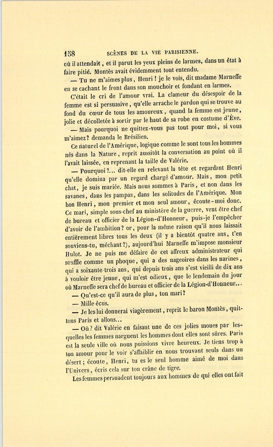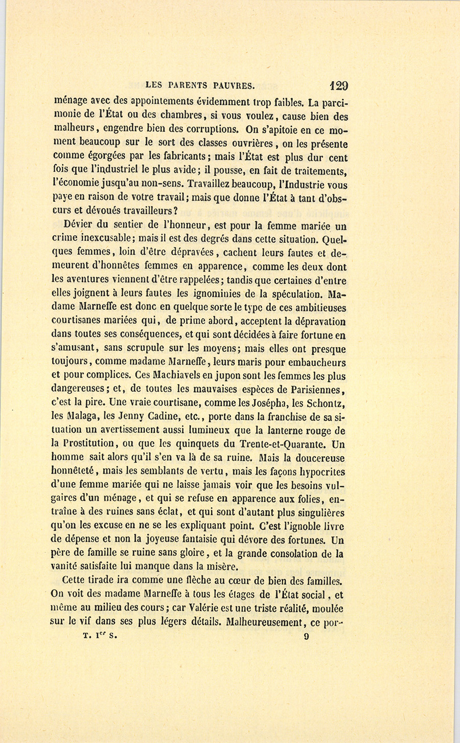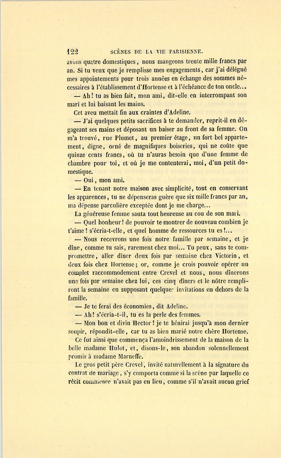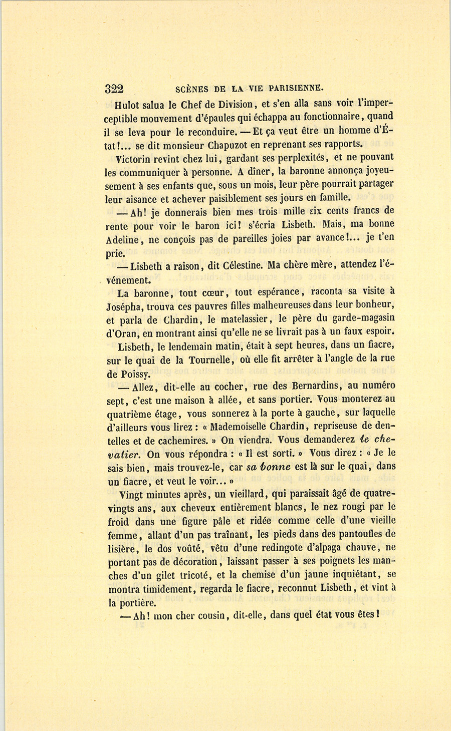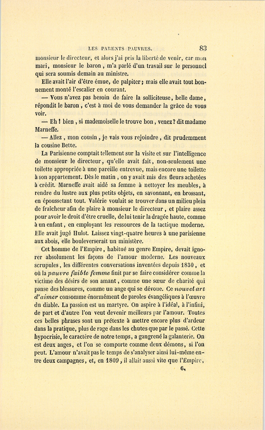 {p. 9} – Auriez-vous tenu ce langage, monsieur, demanda madame Hulot en regardant fixement Crevel, si pour vous j’eusse manqué à mes devoirs ?…