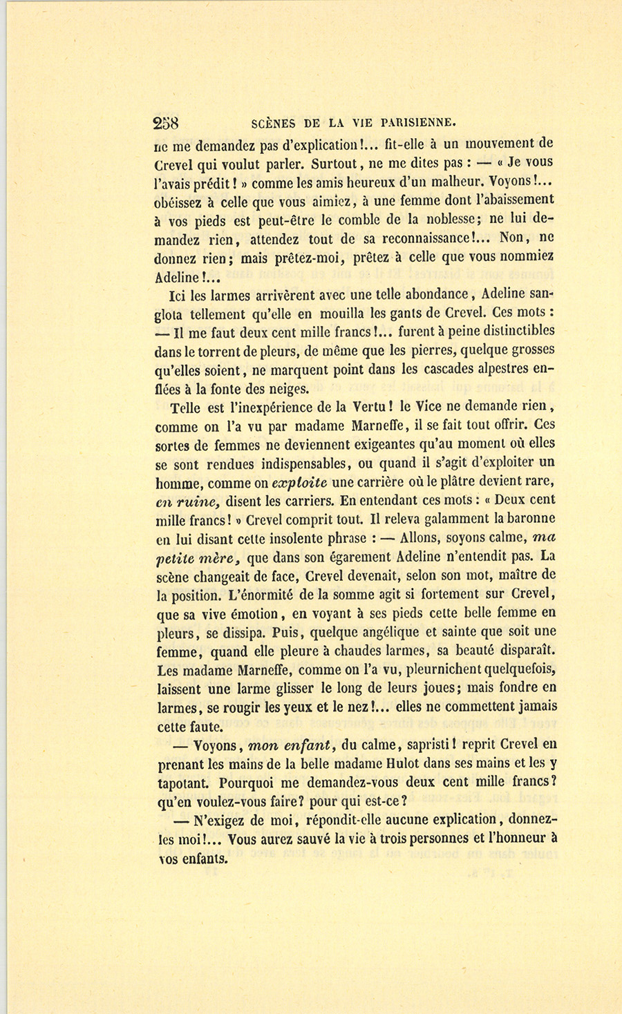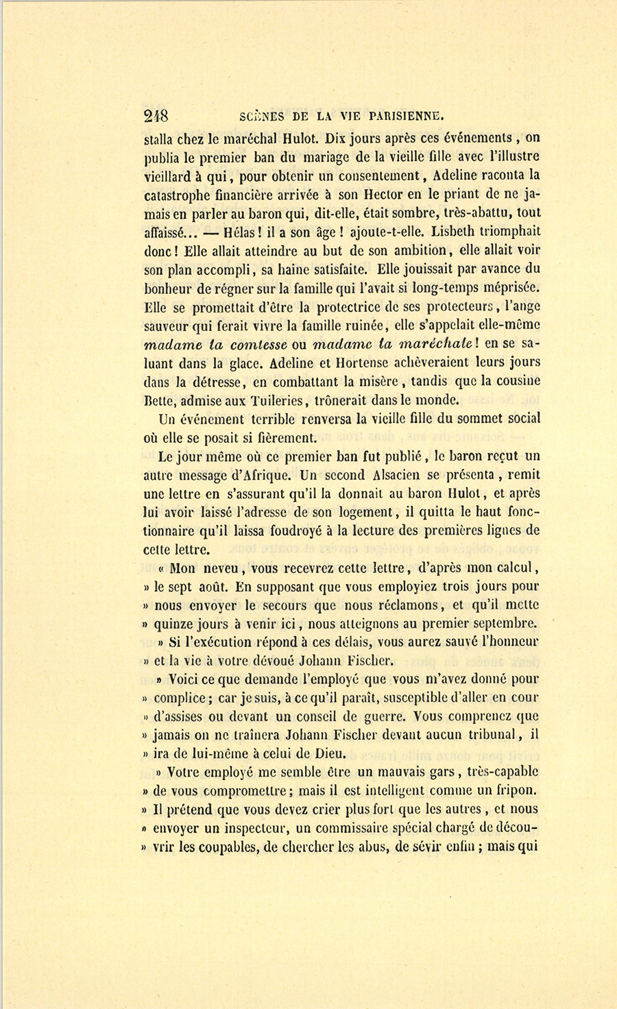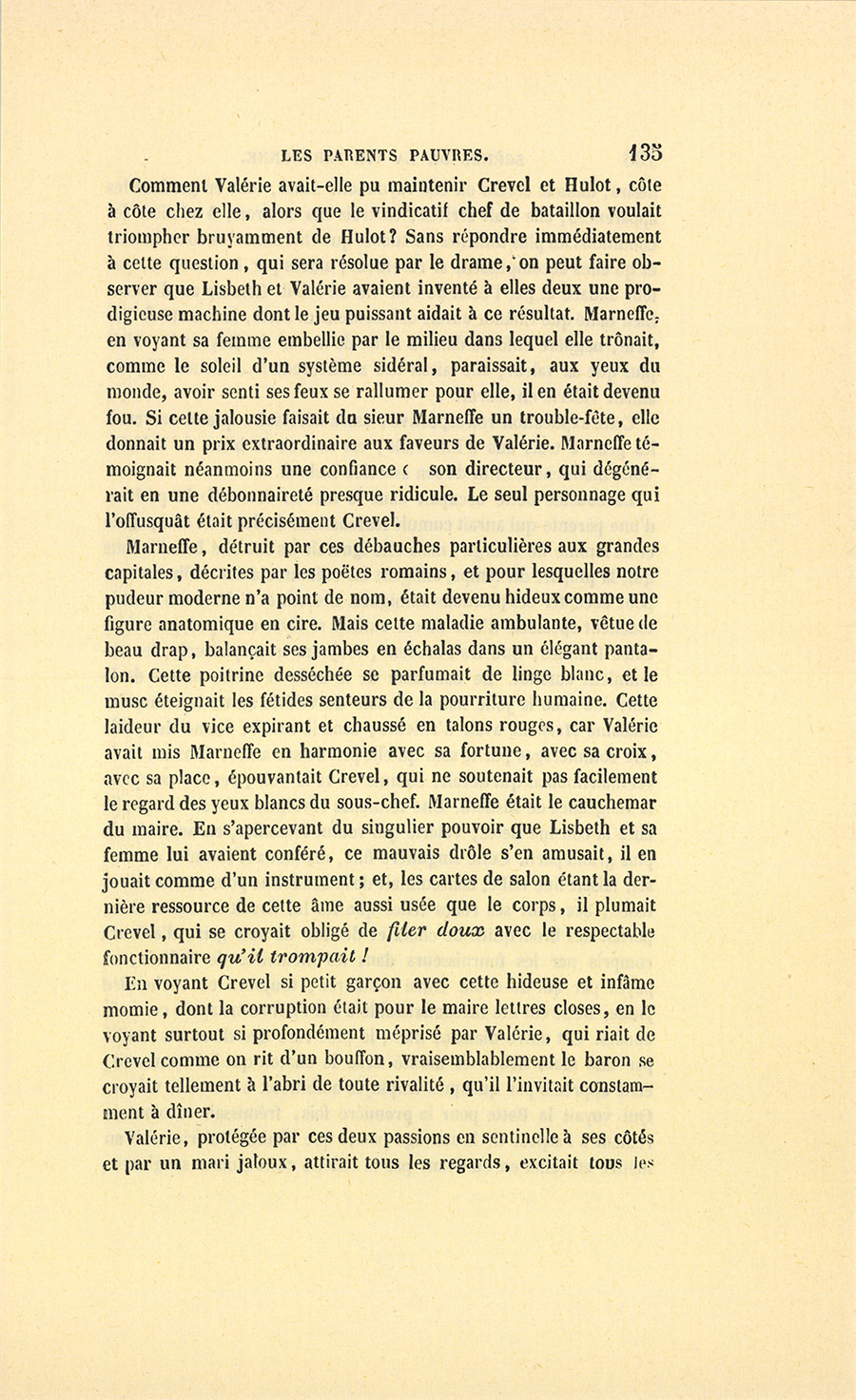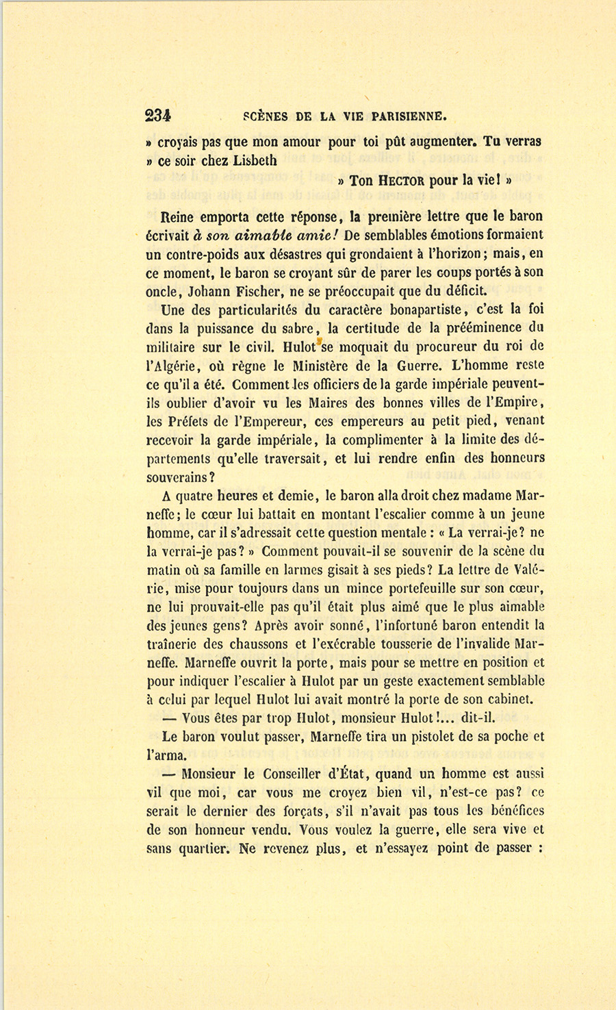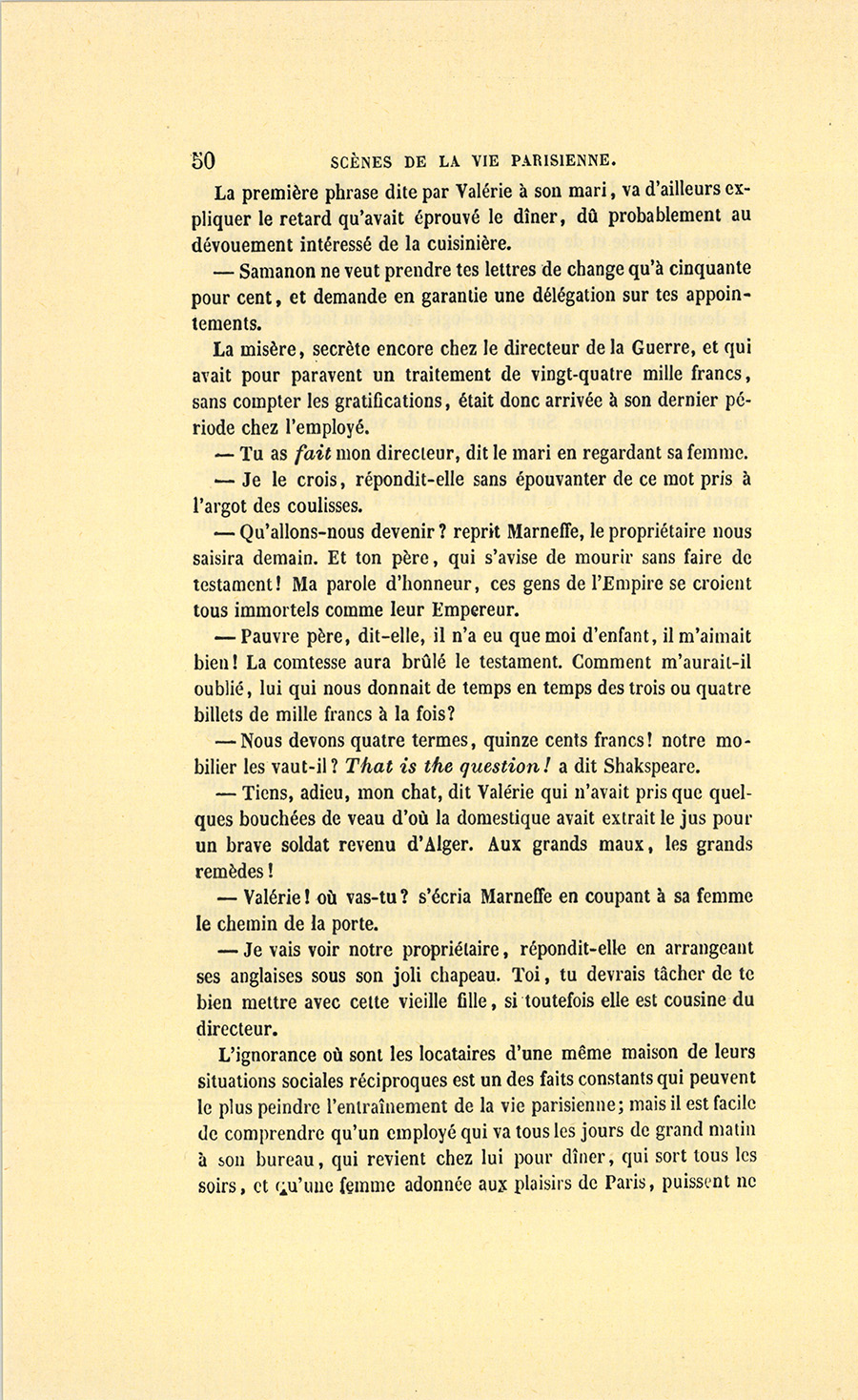 {p. 9} – Auriez-vous tenu ce langage, monsieur, demanda madame Hulot en regardant fixement Crevel, si pour vous j’eusse manqué à mes devoirs ?…