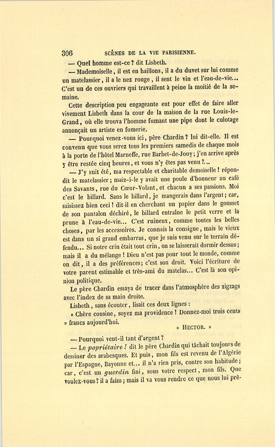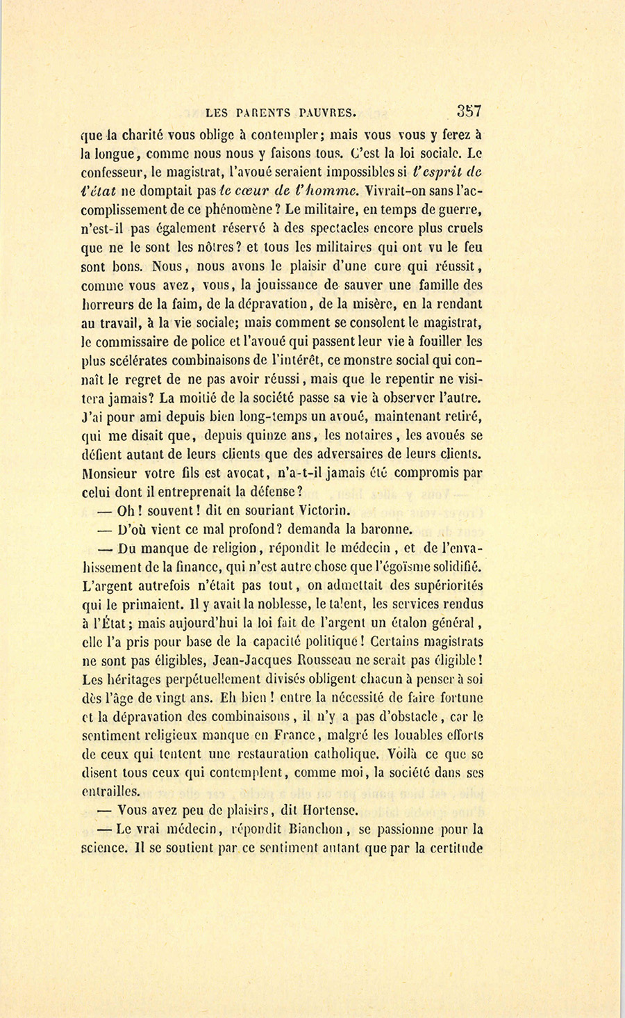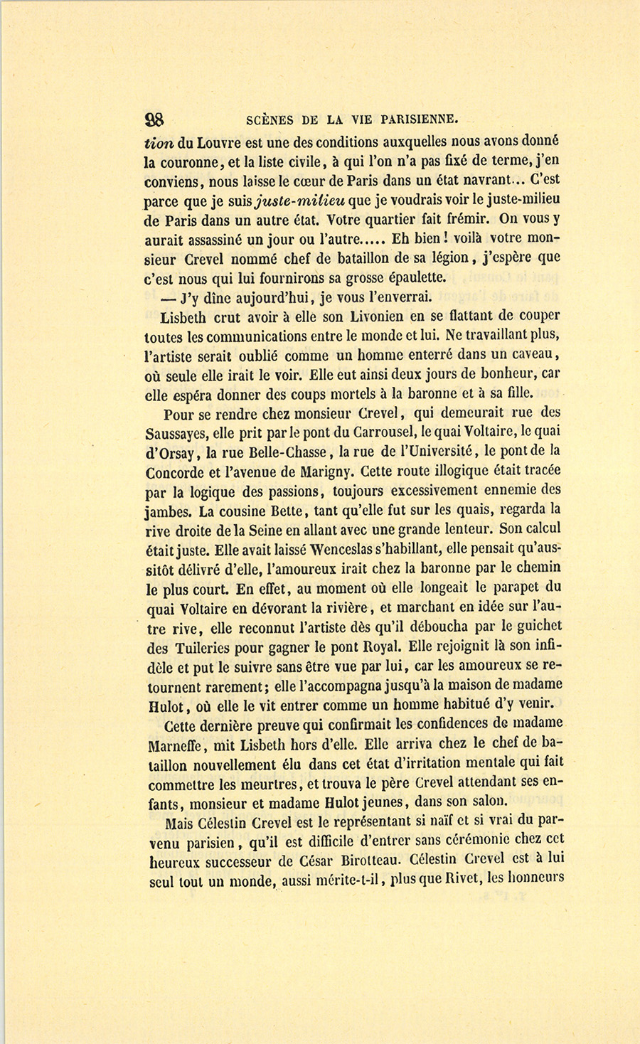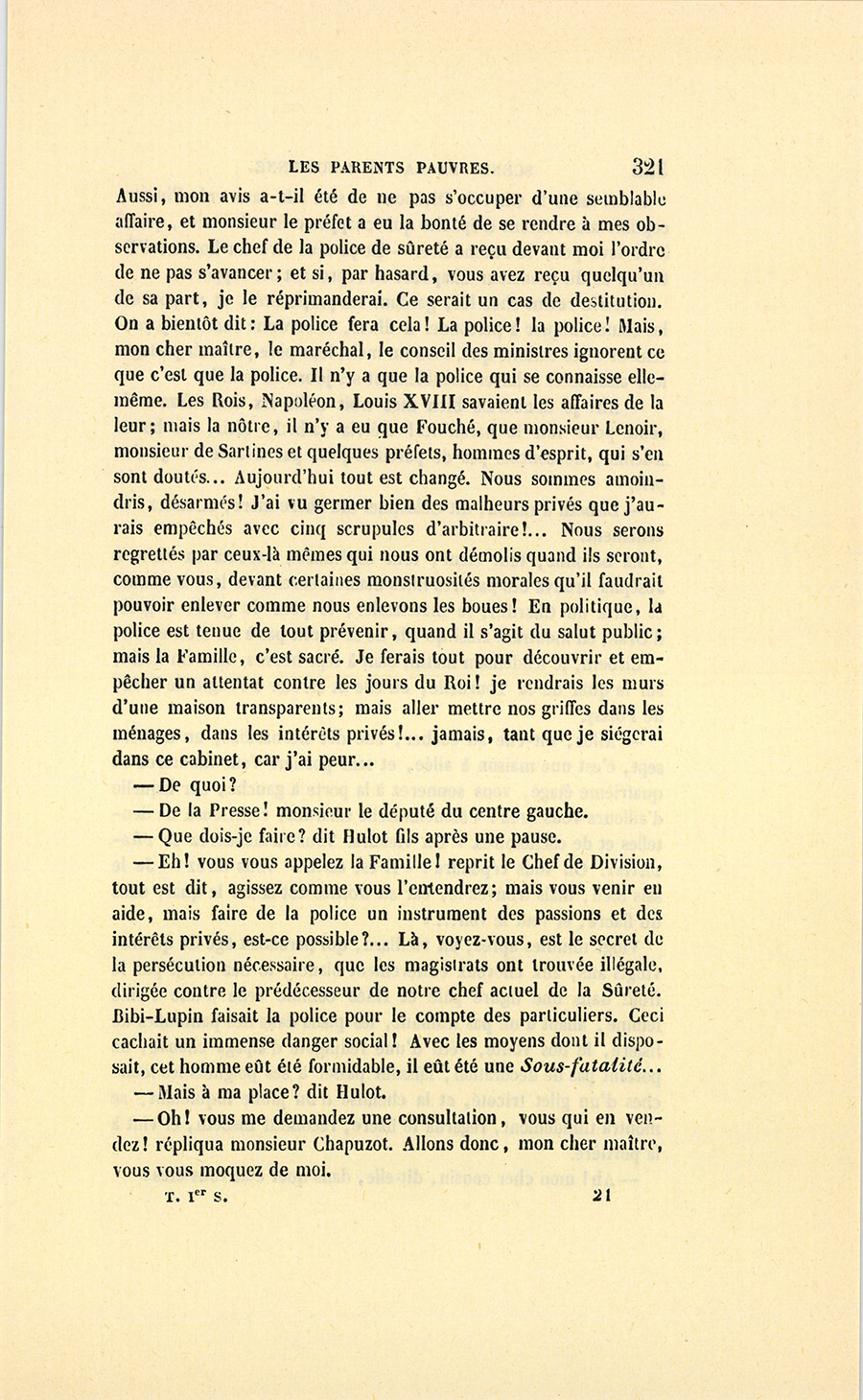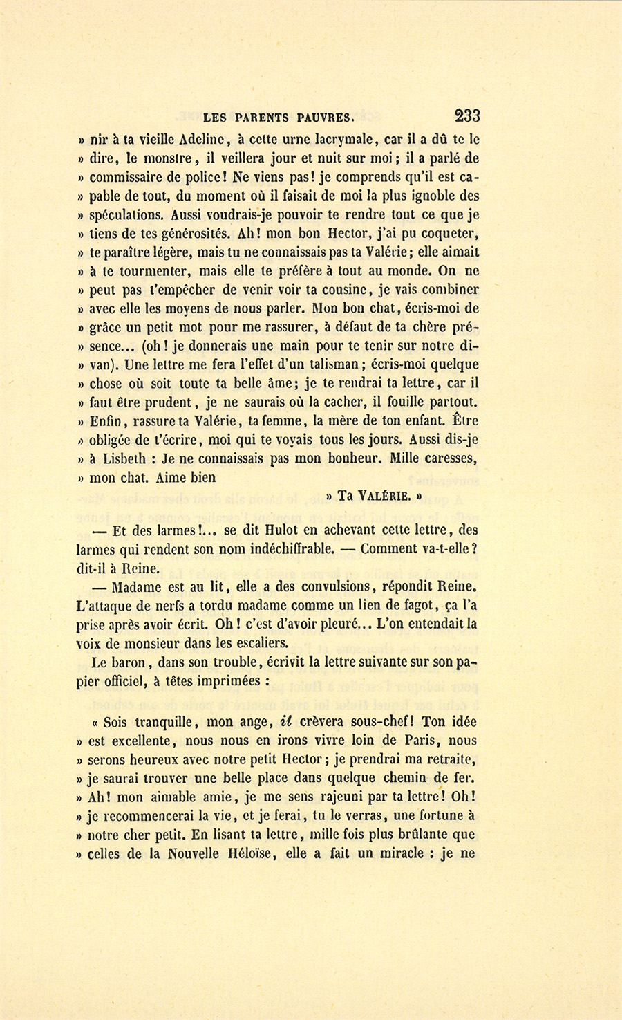 {p. 9} – Auriez-vous tenu ce langage, monsieur, demanda madame Hulot en regardant fixement Crevel, si pour vous j’eusse manqué à mes devoirs ?…