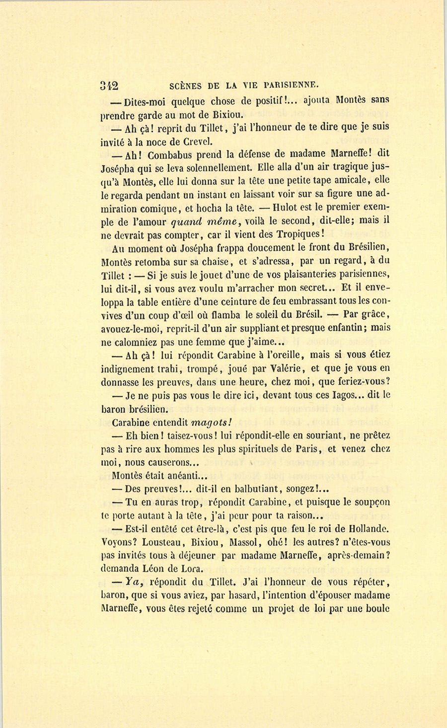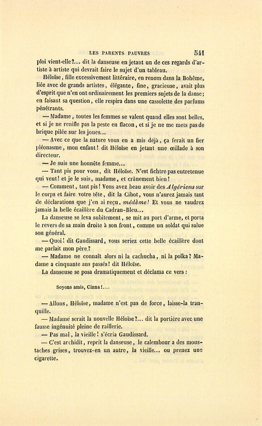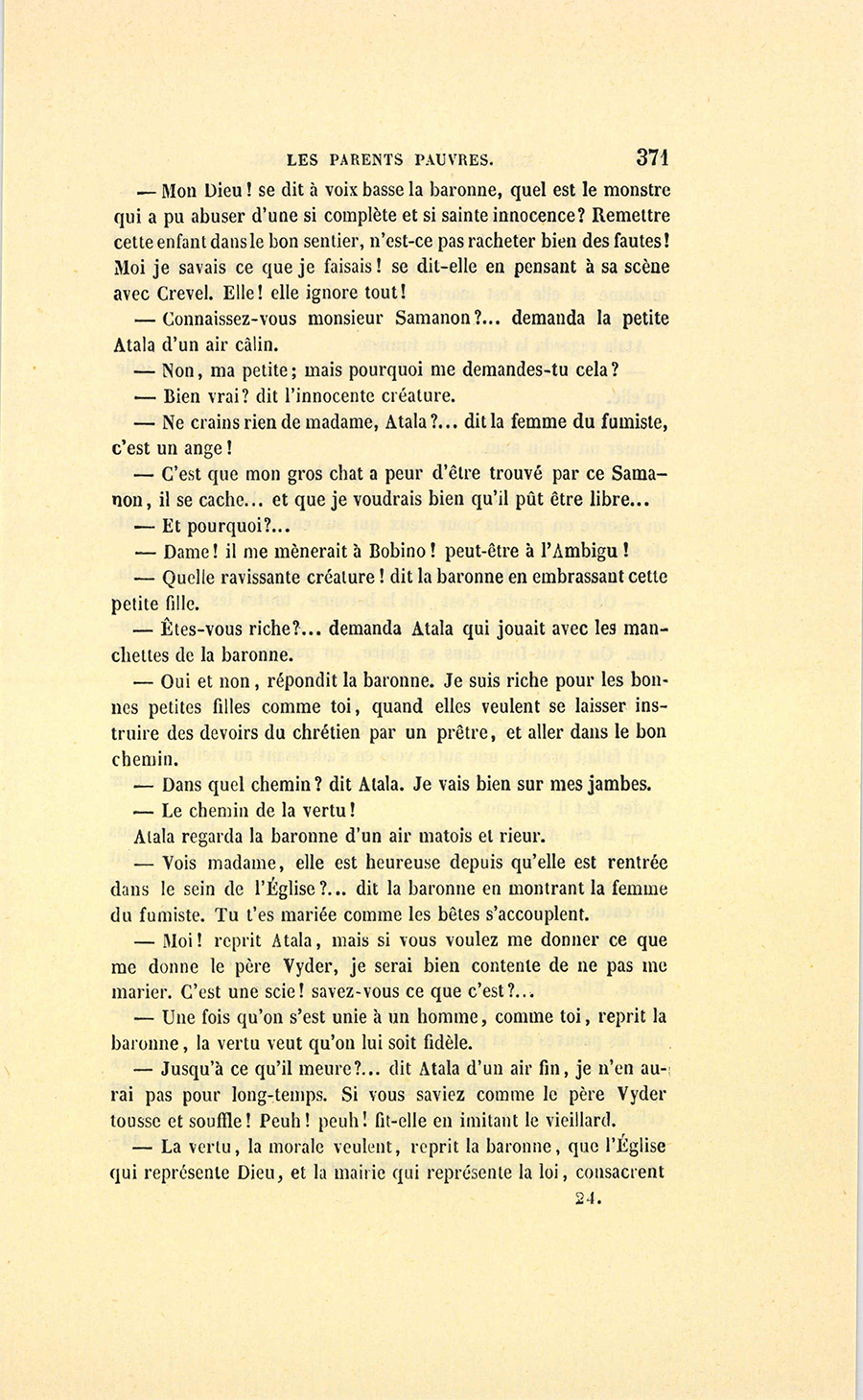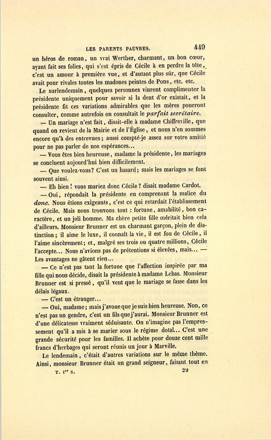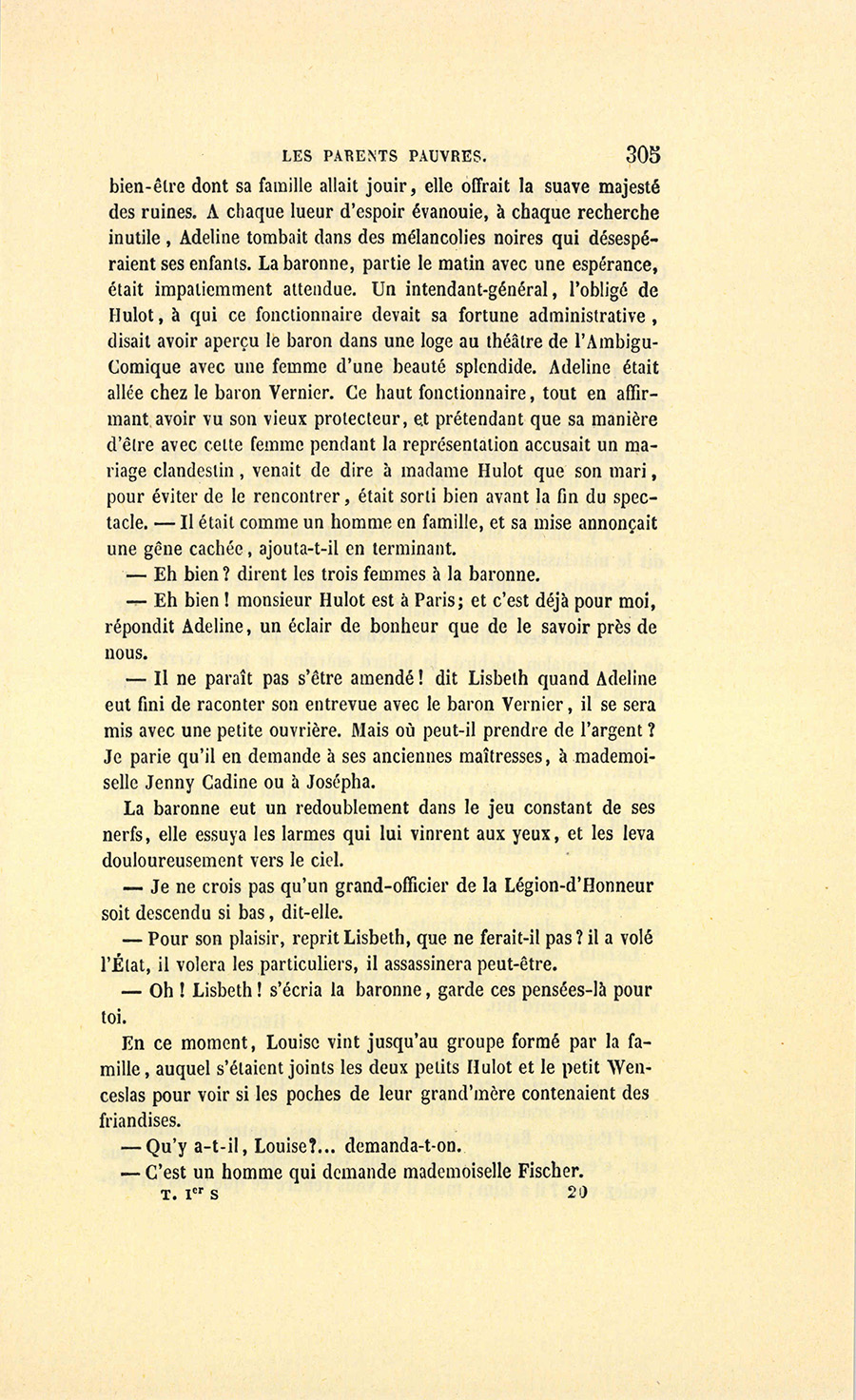 {p. 9} – Auriez-vous tenu ce langage, monsieur, demanda madame Hulot en regardant fixement Crevel, si pour vous j’eusse manqué à mes devoirs ?…
