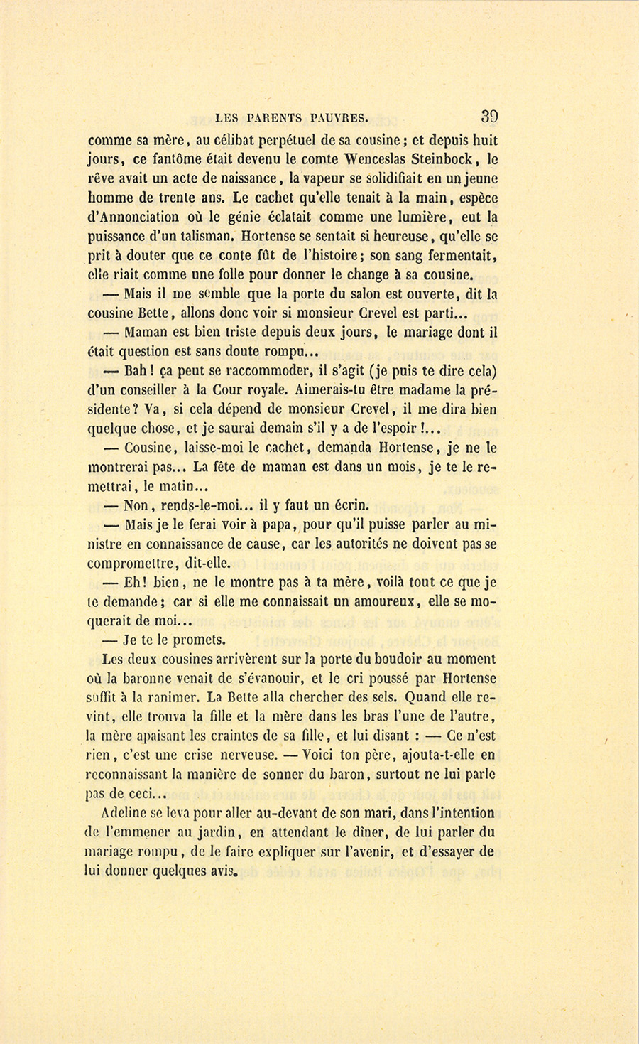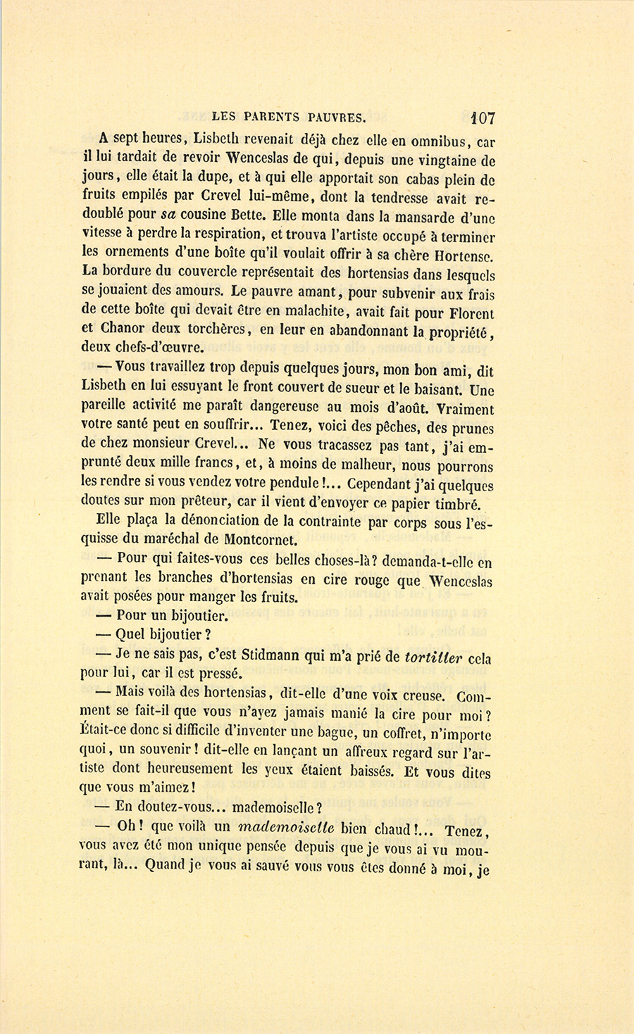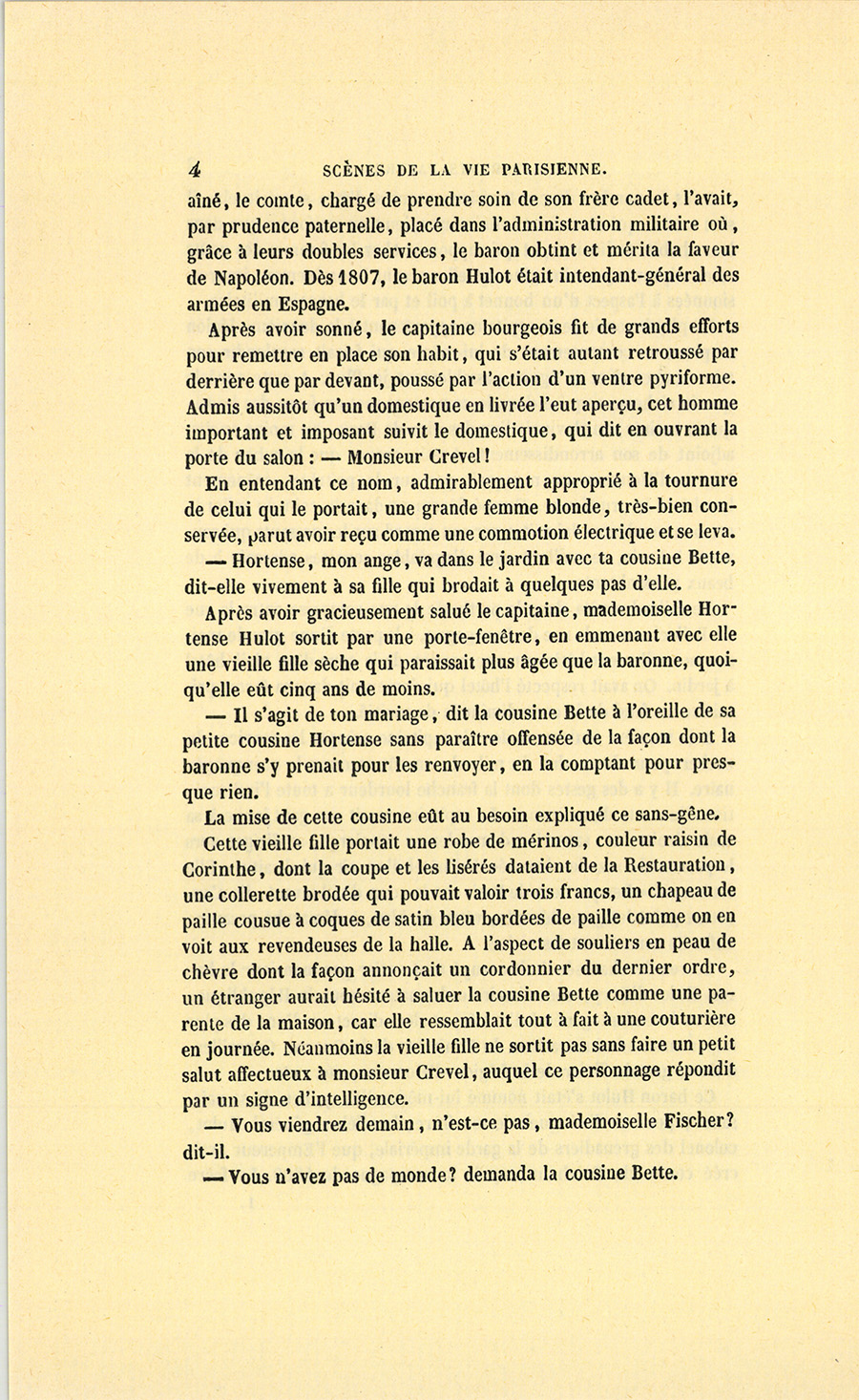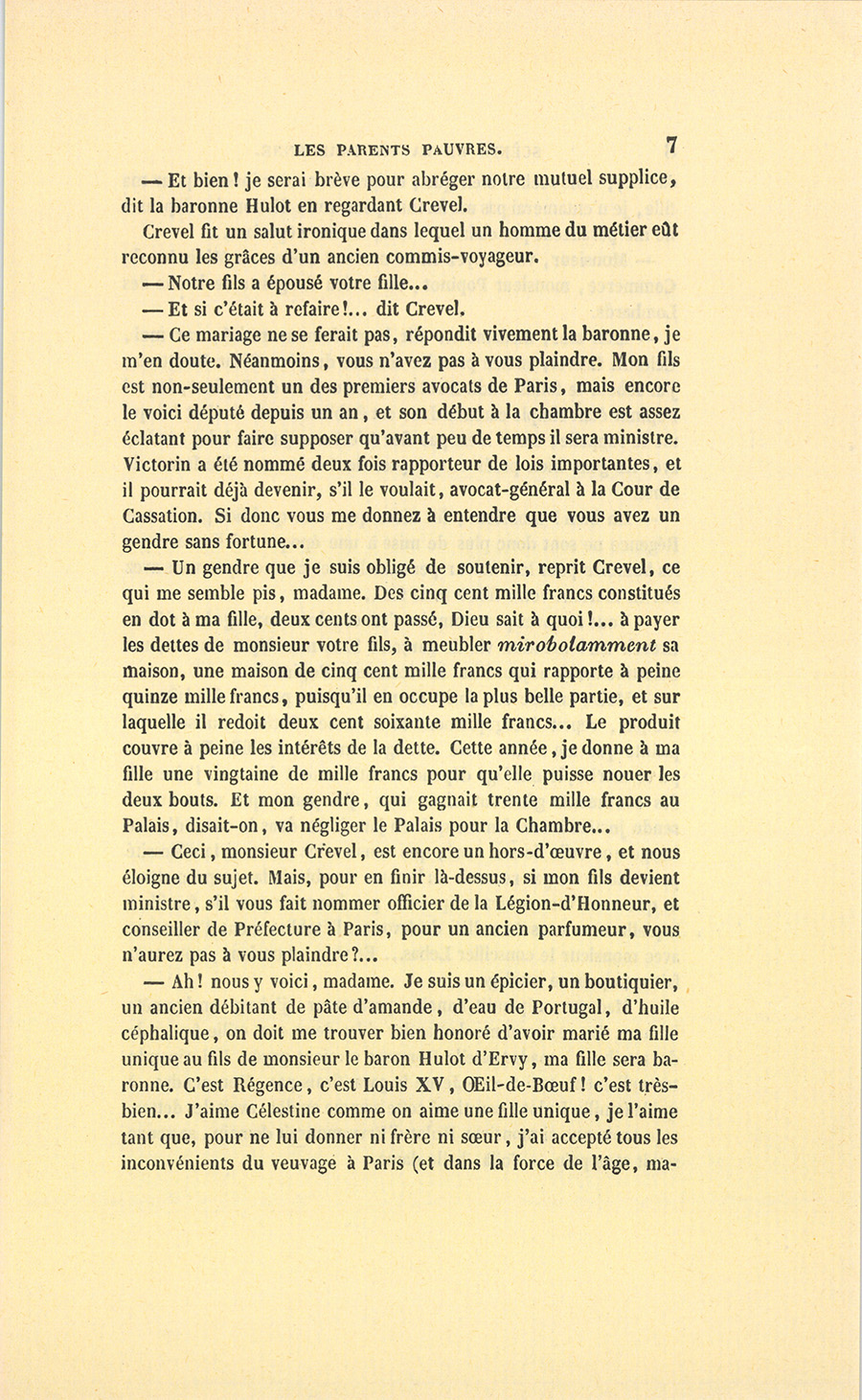 {p. 7} – Et bien ! je serai brève pour abréger notre mutuel supplice, dit la baronne Hulot en regardant Crevel.