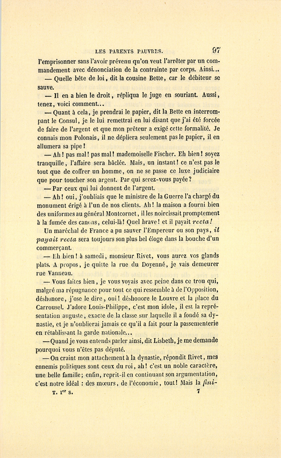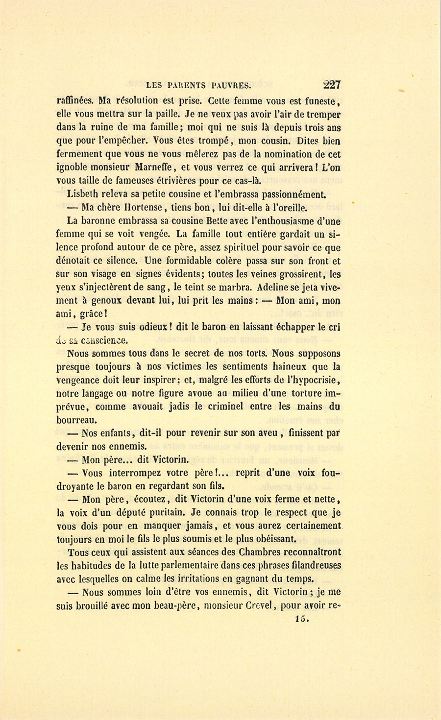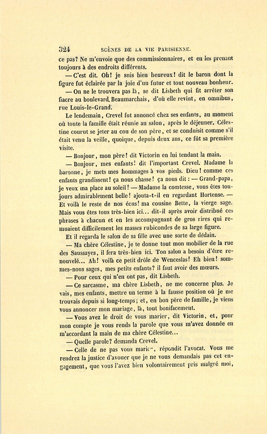 {p. 7} – Et bien ! je serai brève pour abréger notre mutuel supplice, dit la baronne Hulot en regardant Crevel.