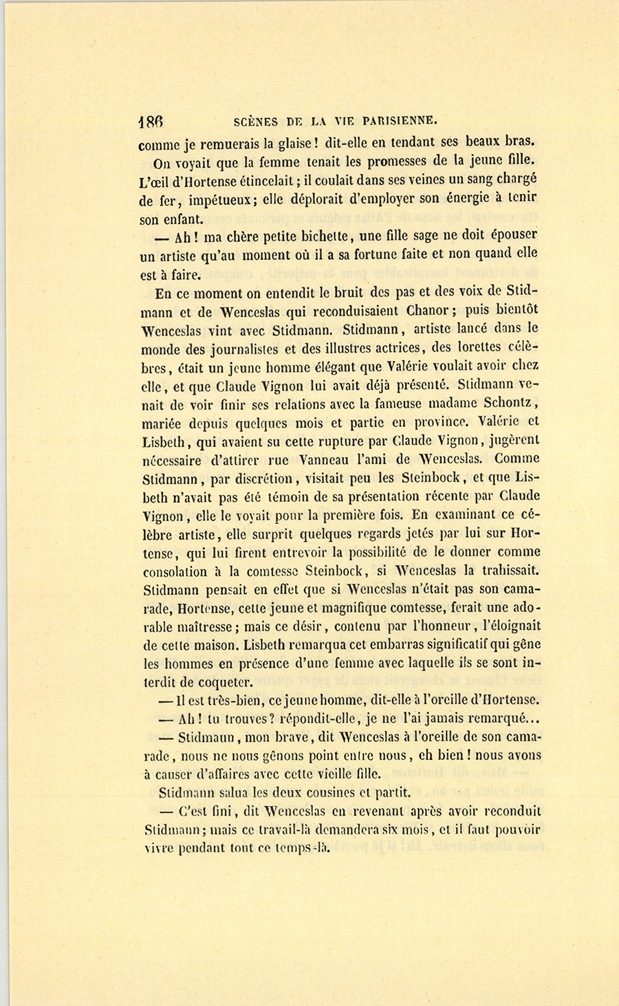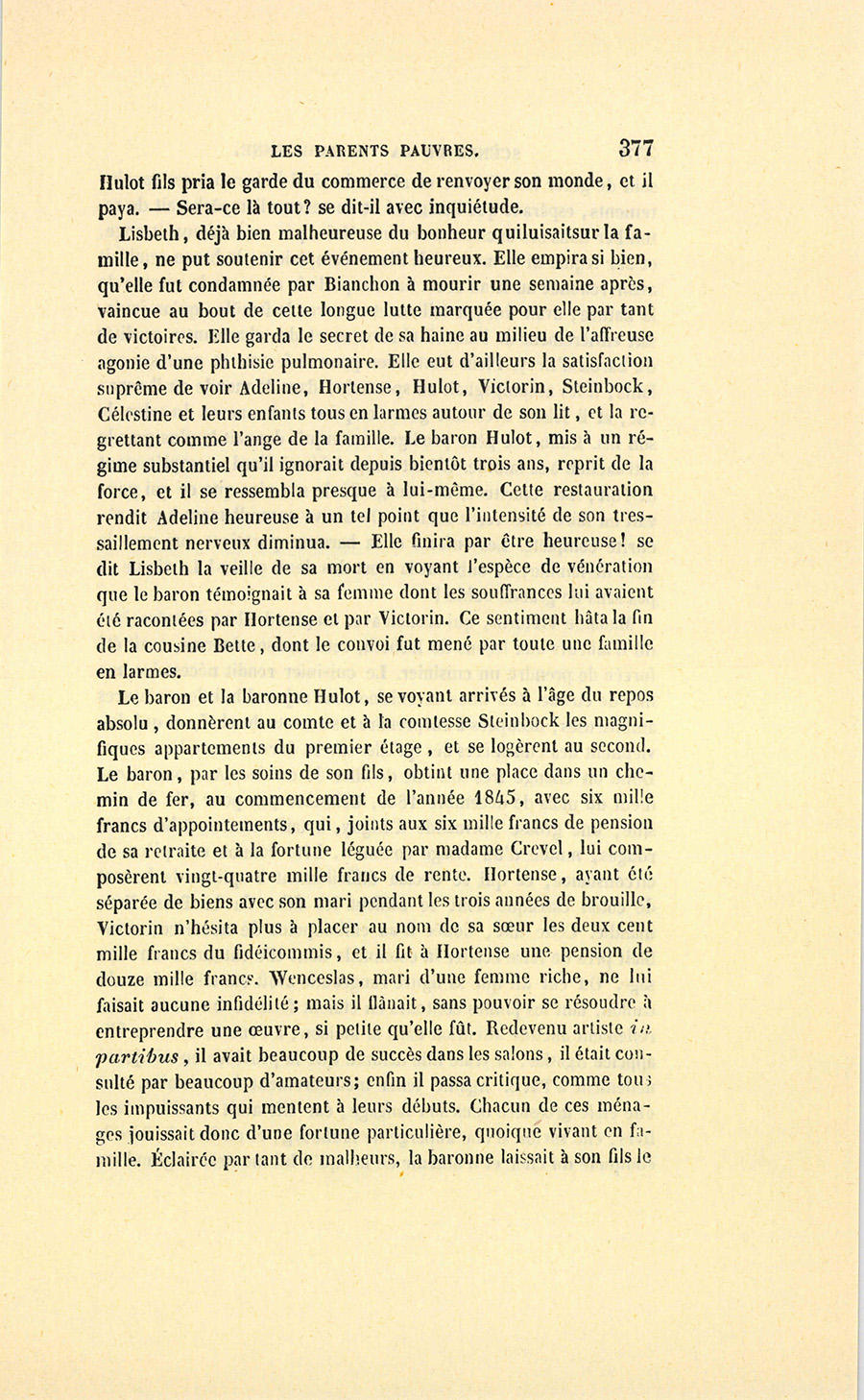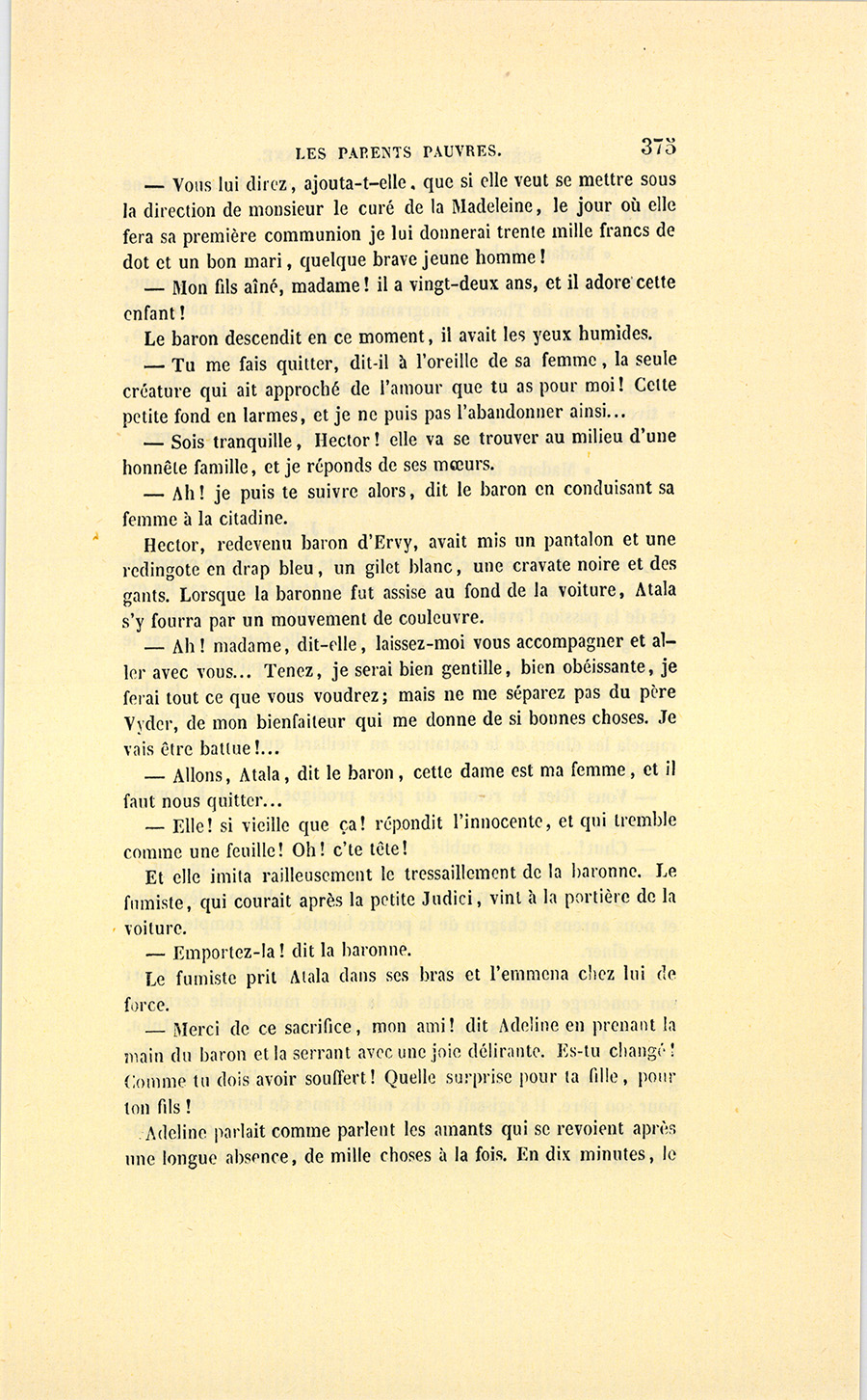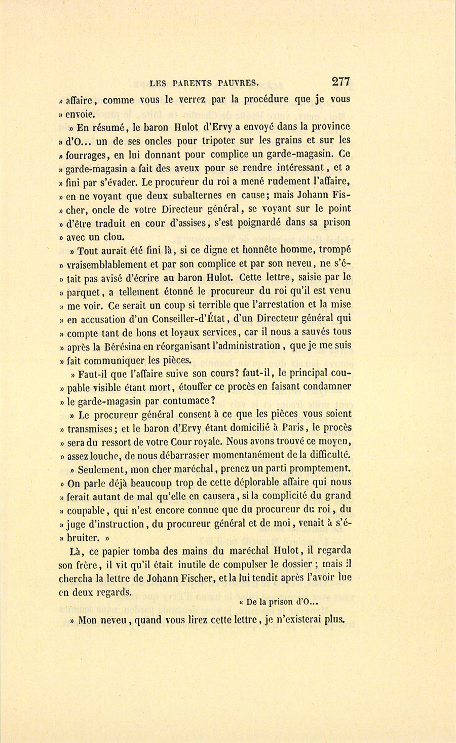 {p. 7} – Et bien ! je serai brève pour abréger notre mutuel supplice, dit la baronne Hulot en regardant Crevel.