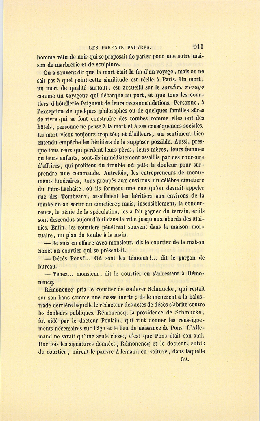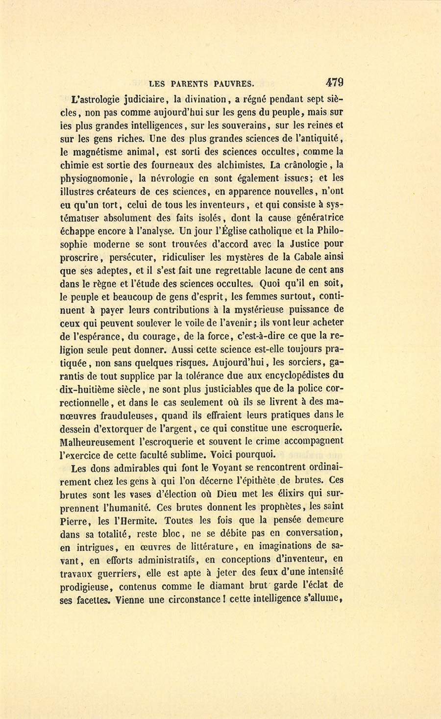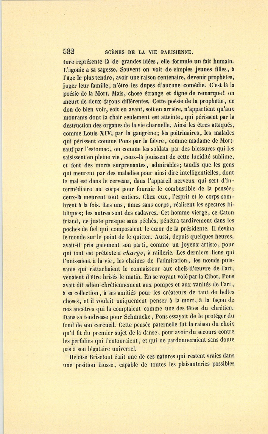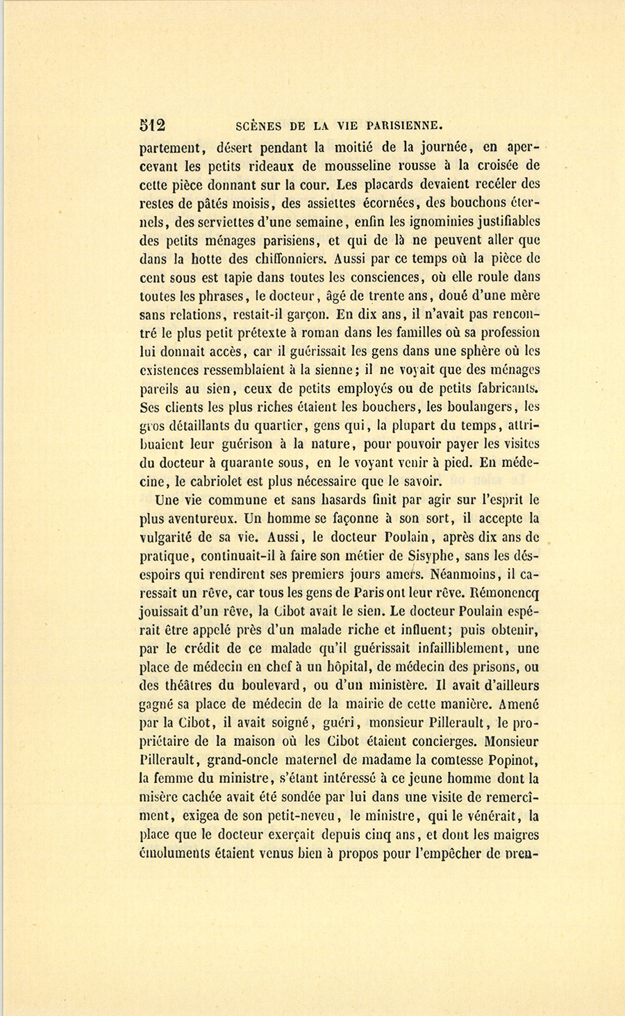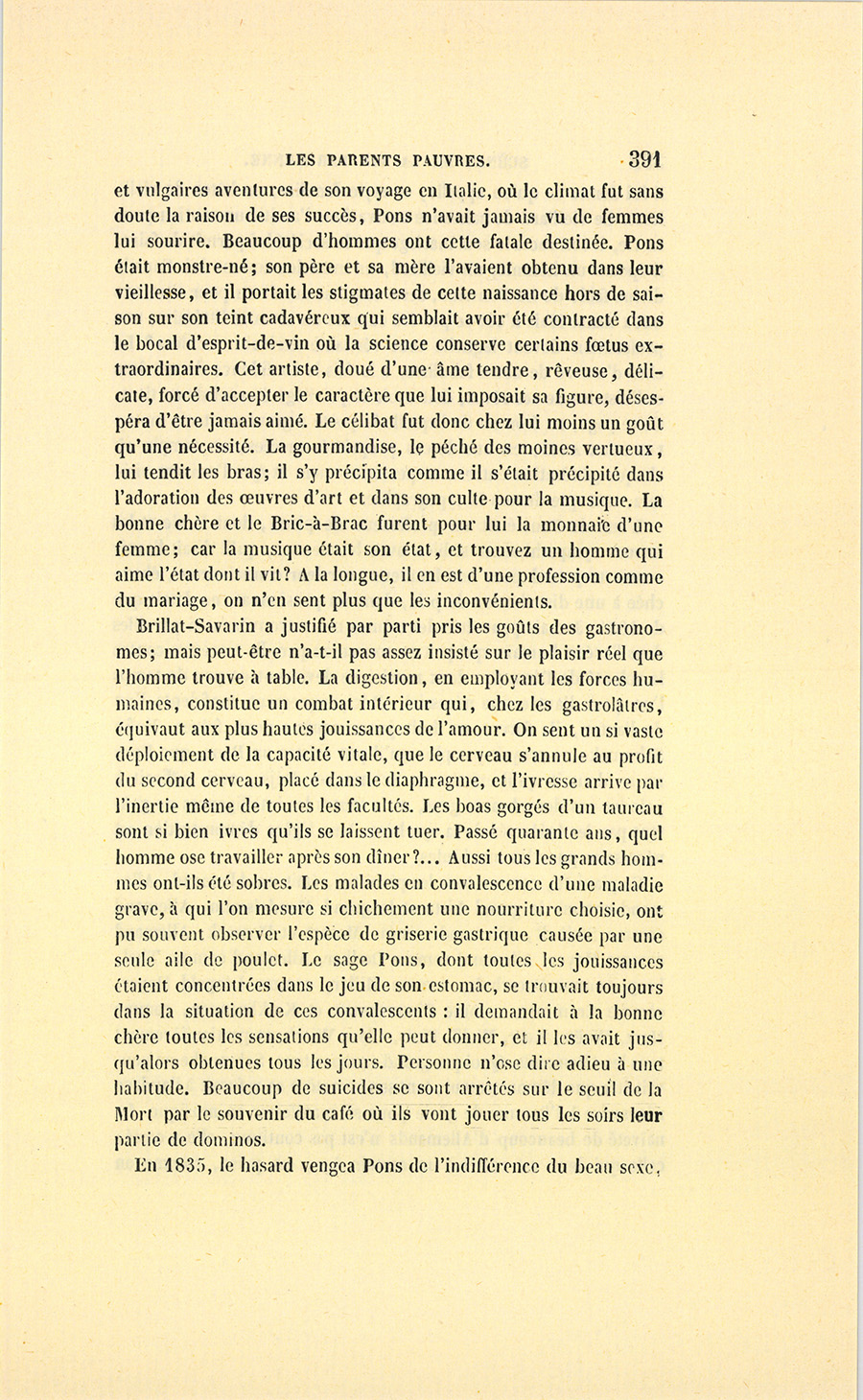 Tout le monde désirera sans doute savoir ce qu’est devenue l’héroïne de cette histoire, malheureusement trop véridique dans ses détails, et qui, superposée à la précédente, dont elle est la sœur jumelle, prouve que la grande force sociale est le caractère. Vous devinez, ô amateurs, connaisseurs et marchands, qu’il s’agit de la collection de Pons ! Il suffira d’assister à une conversation tenue chez le comte Popinot, qui montrait, il y a peu de jours, sa magnifique collection à des étrangers.