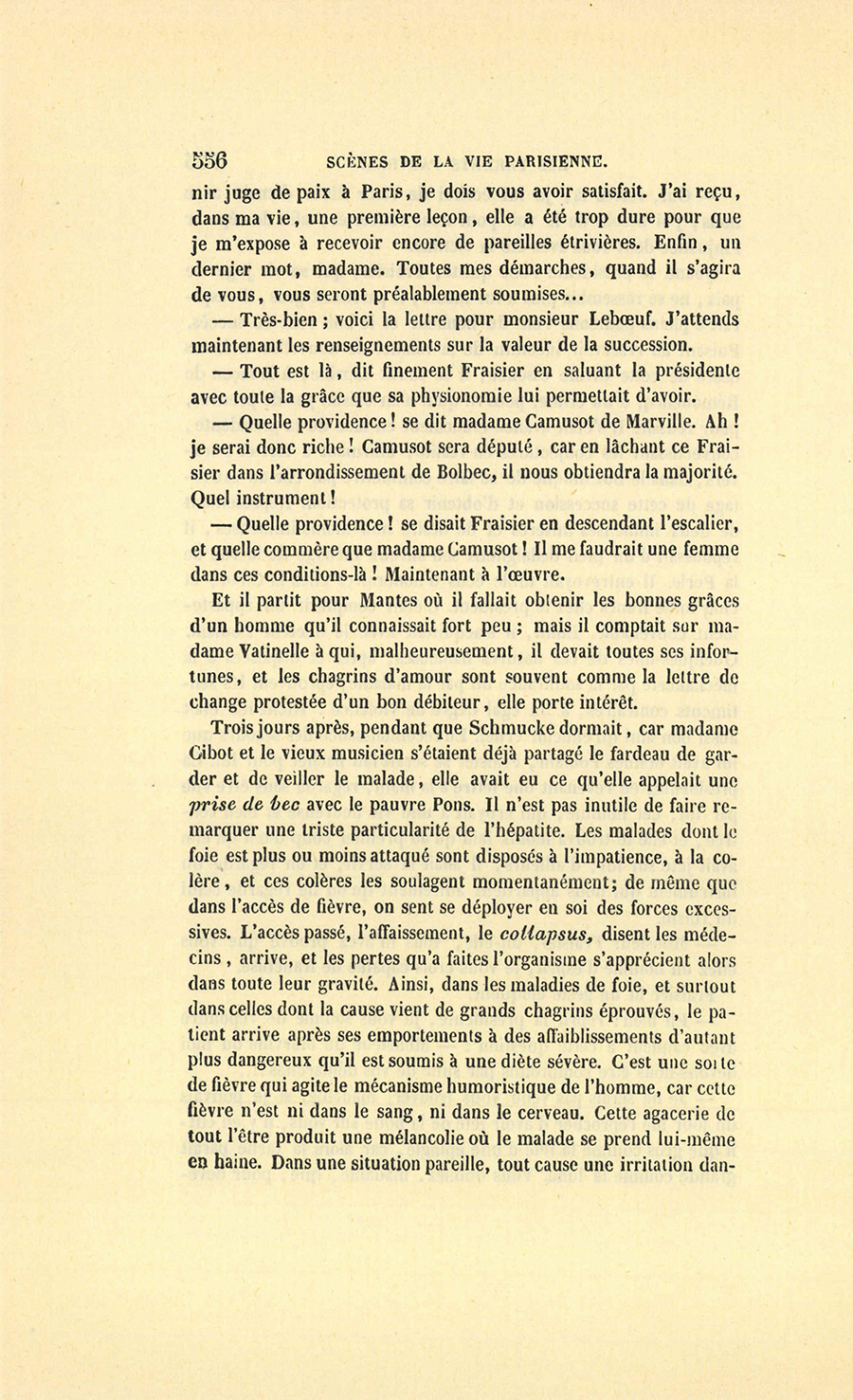 – Ce sera fait avant trois jours. Car cette assignation le saisira dans le premier étourdissement de sa douleur, car il regrette Pons, ce pauvre bonhomme. Il a pris cette perte très au sérieux.
