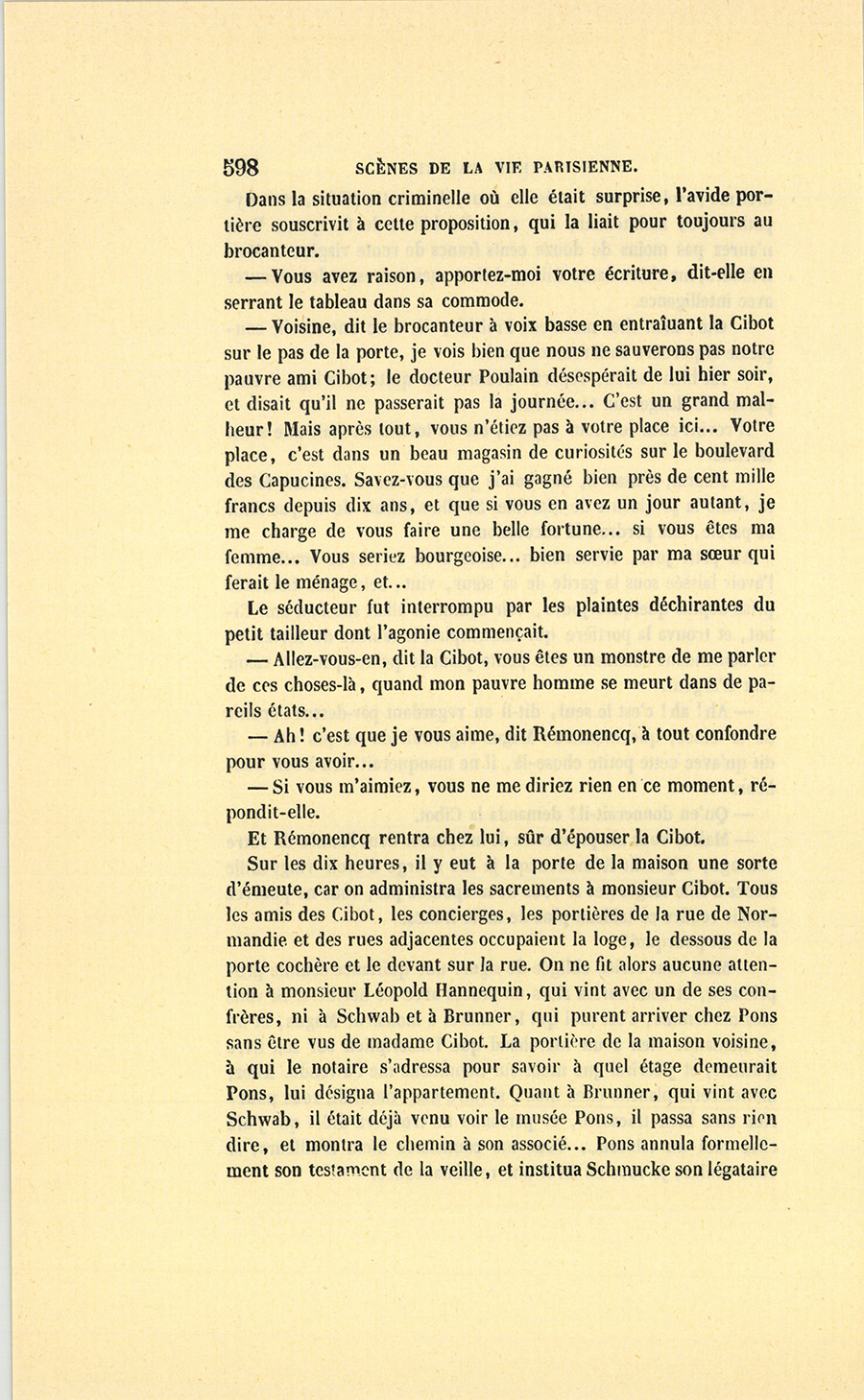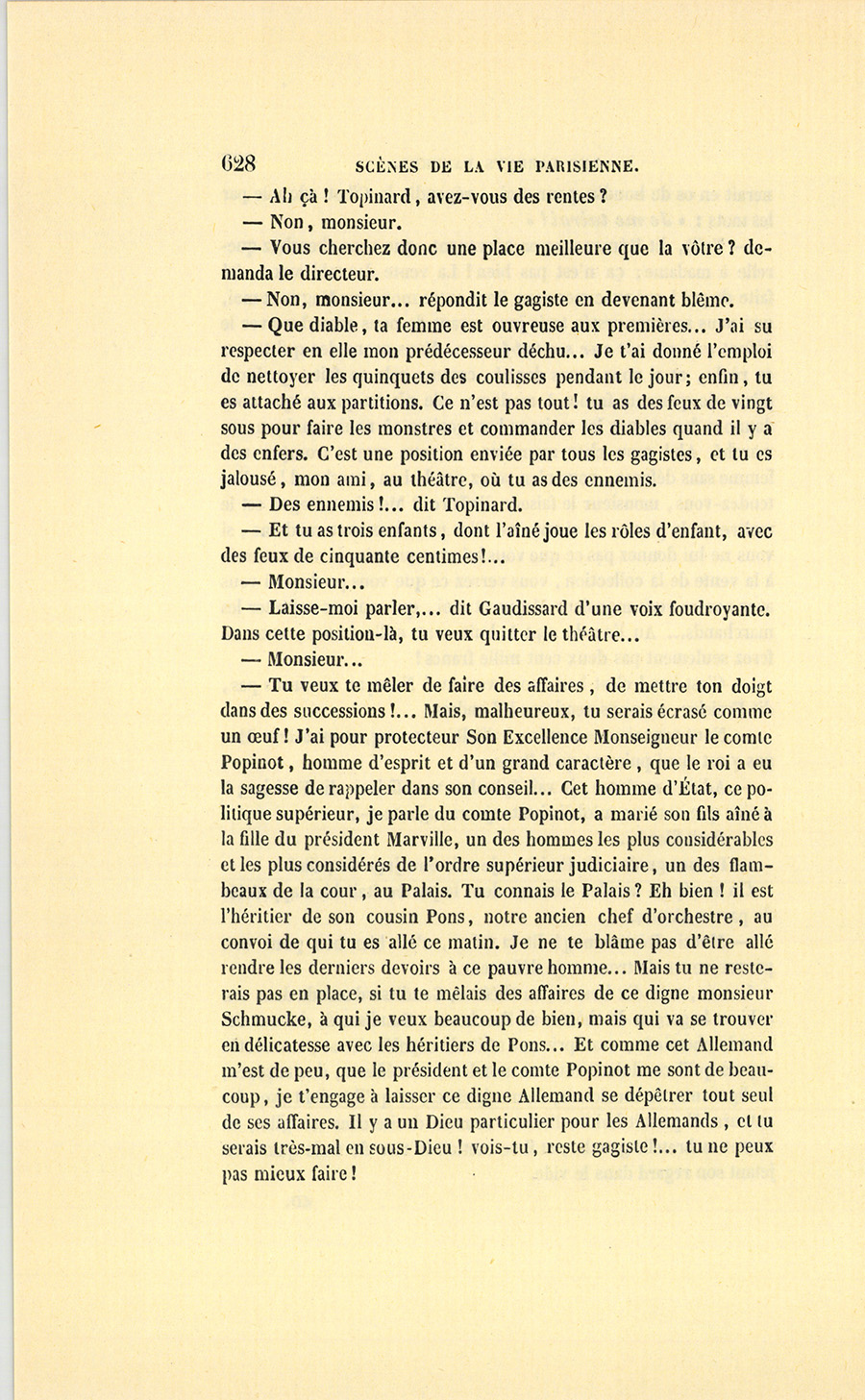 – Vous aurez tout cela ! mais je ferai mieux, mon cher Schmucke. Topinard est un homme de probité…