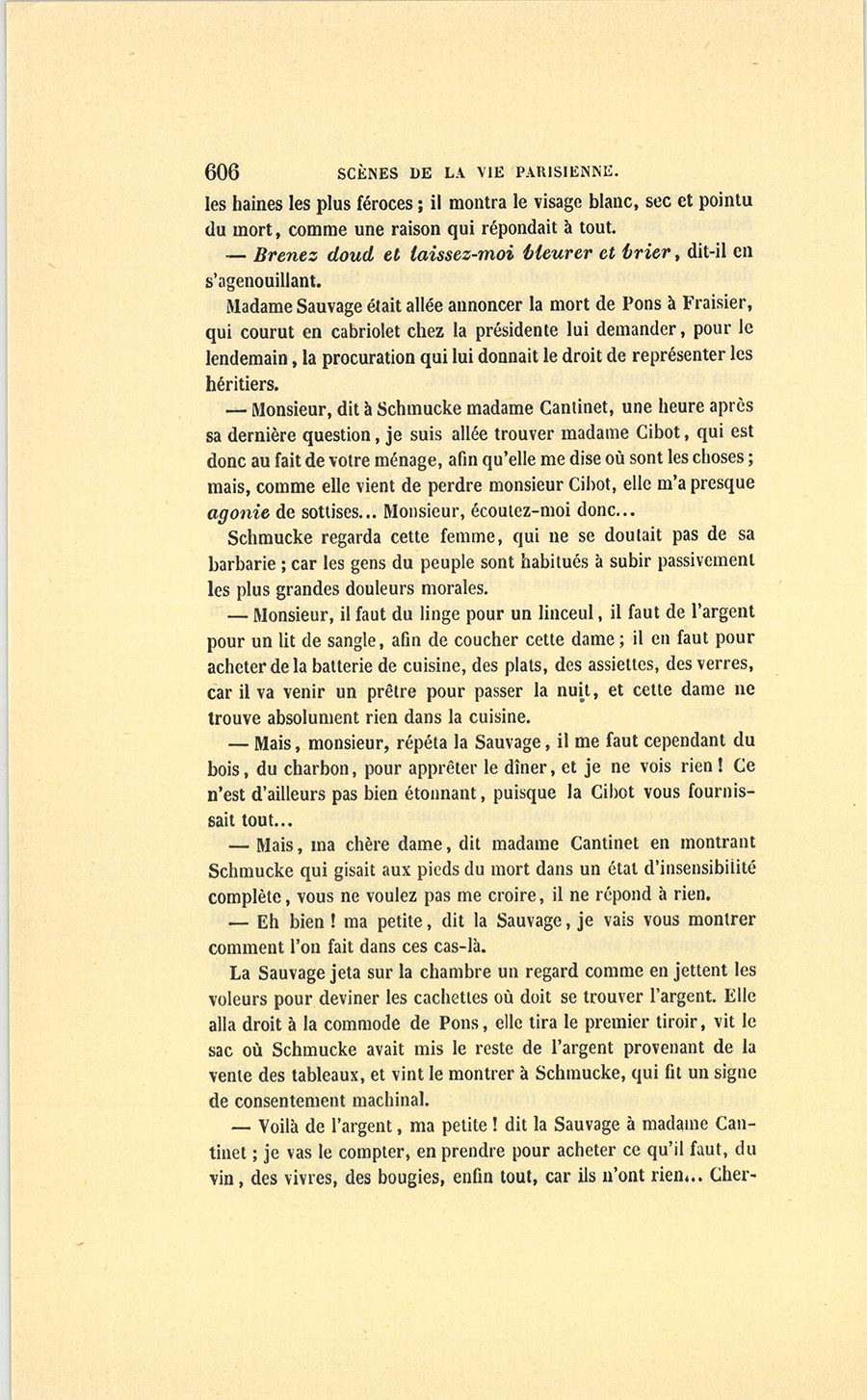 – Monsieur, je ne mangerai pas de pain dont toutes les bouchées me resteraient dans la gorge !… – Monsieur Schmucke ! criait-il…