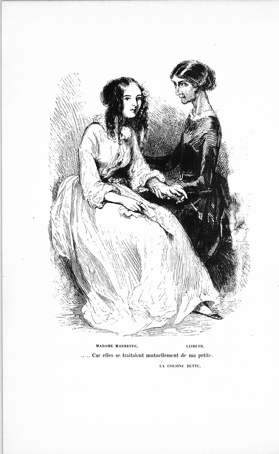 – Il s’agit de ton mariage, dit la cousine Bette à l’oreille de sa petite cousine Hortense sans paraître offensée de la façon dont la baronne s’y prenait pour les renvoyer, en la comptant pour presque rien.