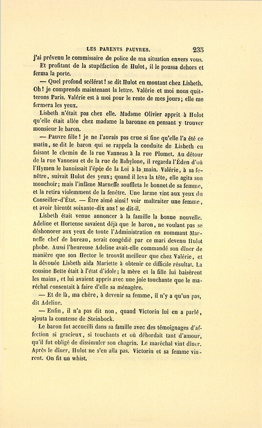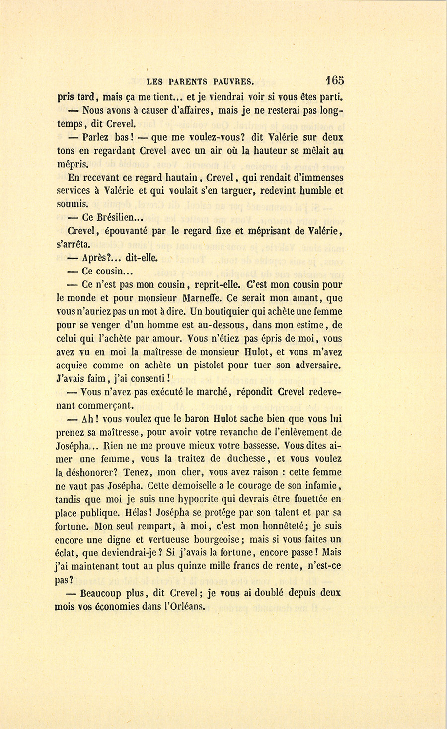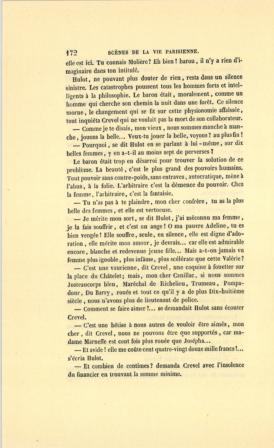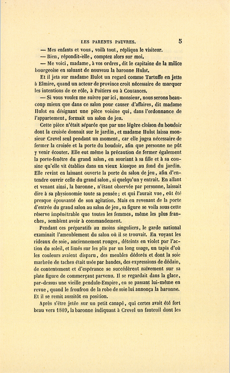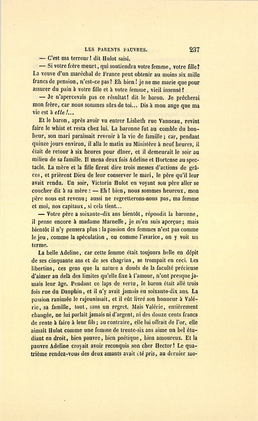 {p. 9} – Auriez-vous tenu ce langage, monsieur, demanda madame Hulot en regardant fixement Crevel, si pour vous j’eusse manqué à mes devoirs ?…