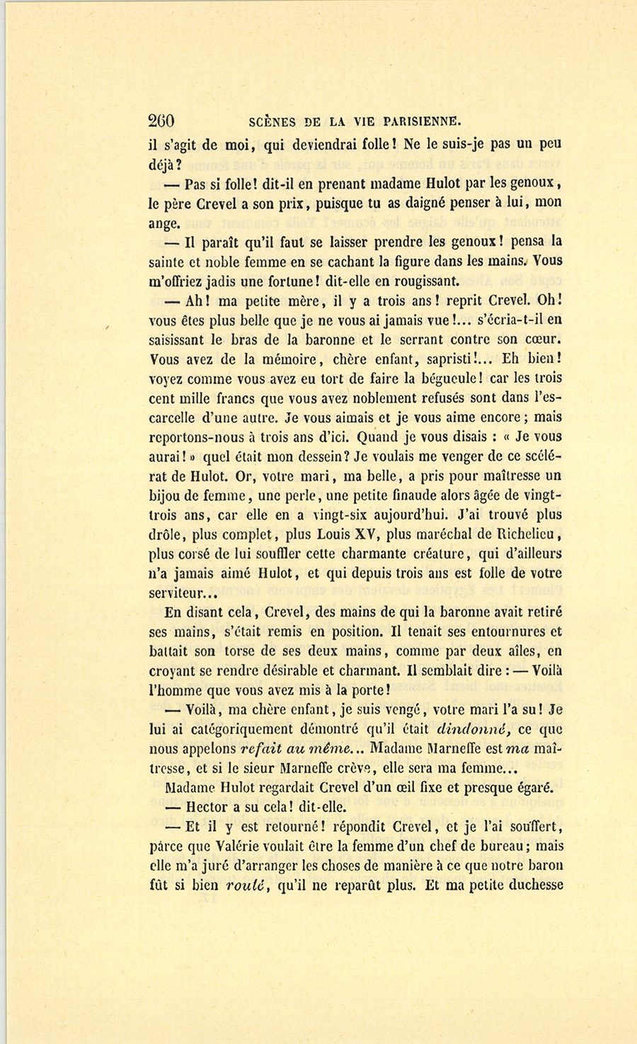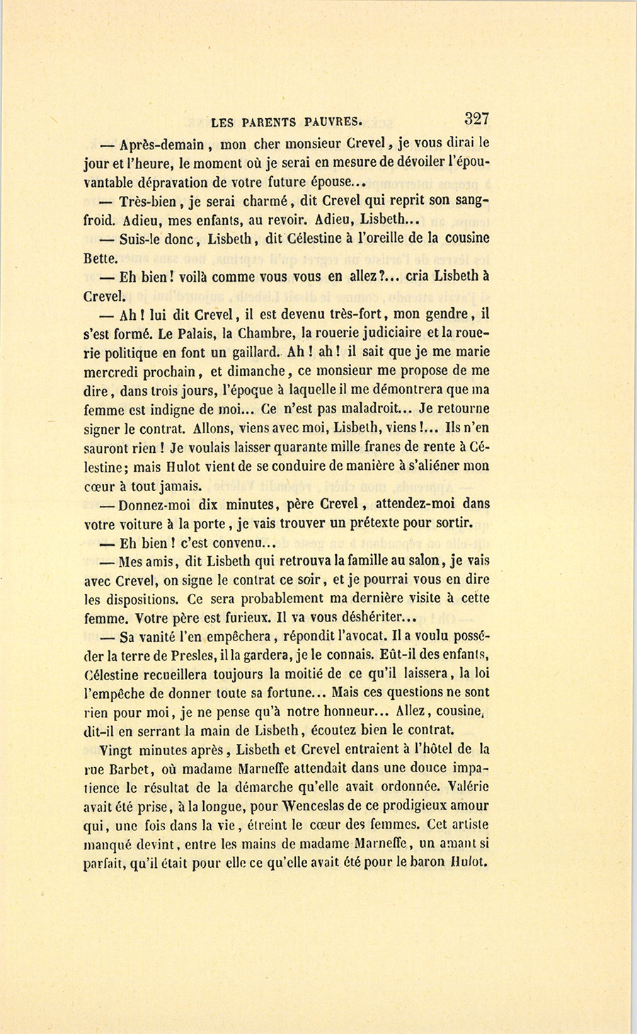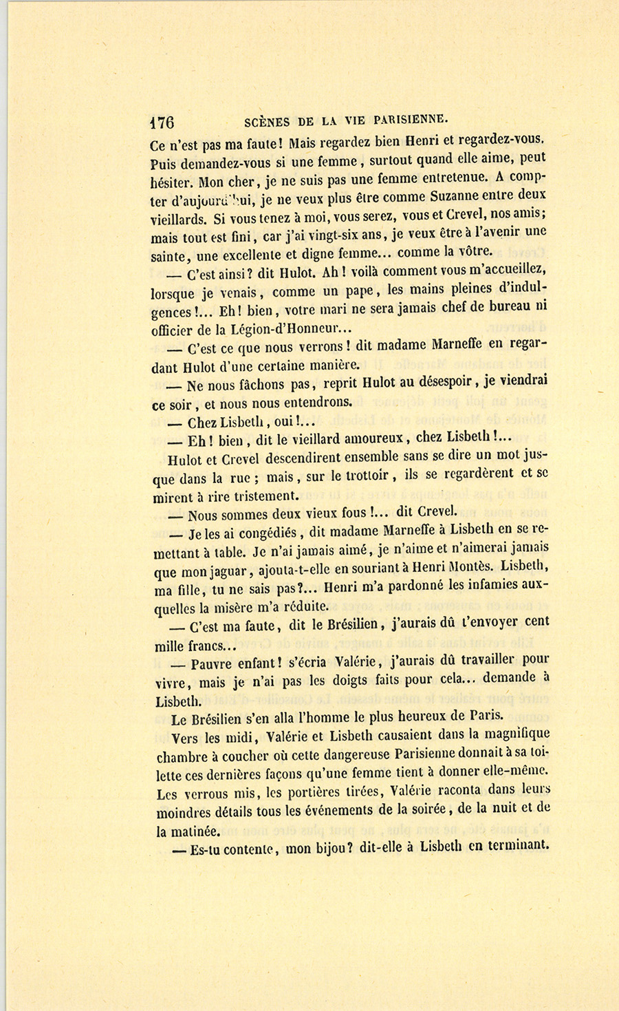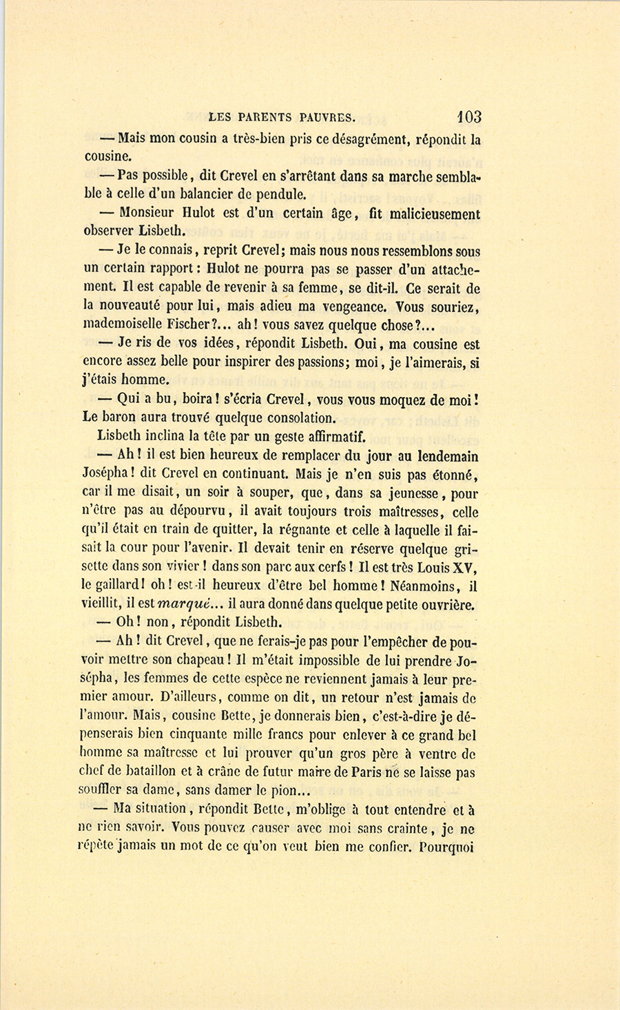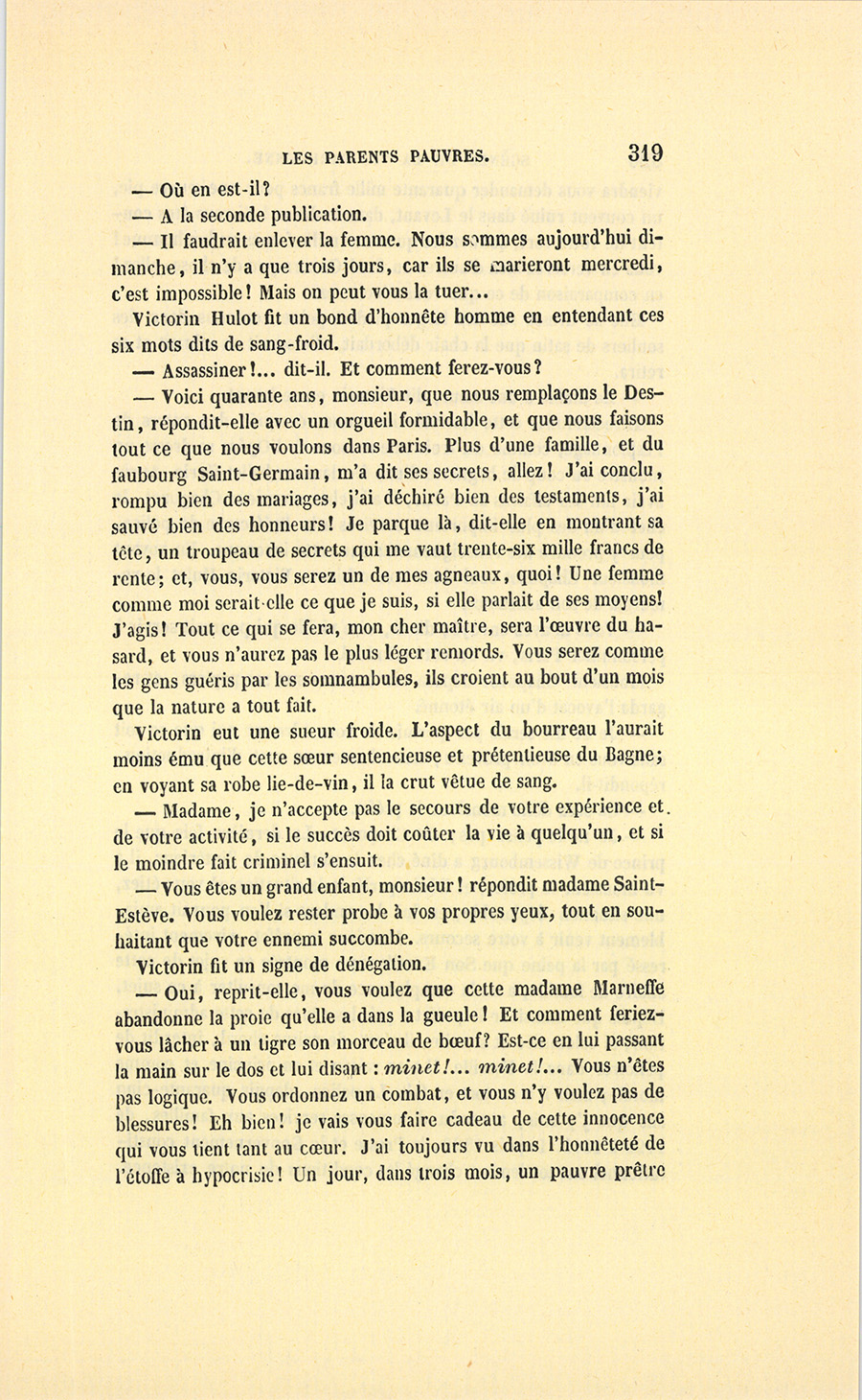 {p. 9} – Auriez-vous tenu ce langage, monsieur, demanda madame Hulot en regardant fixement Crevel, si pour vous j’eusse manqué à mes devoirs ?…