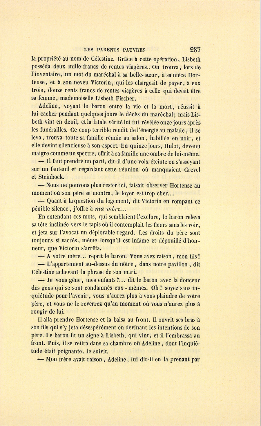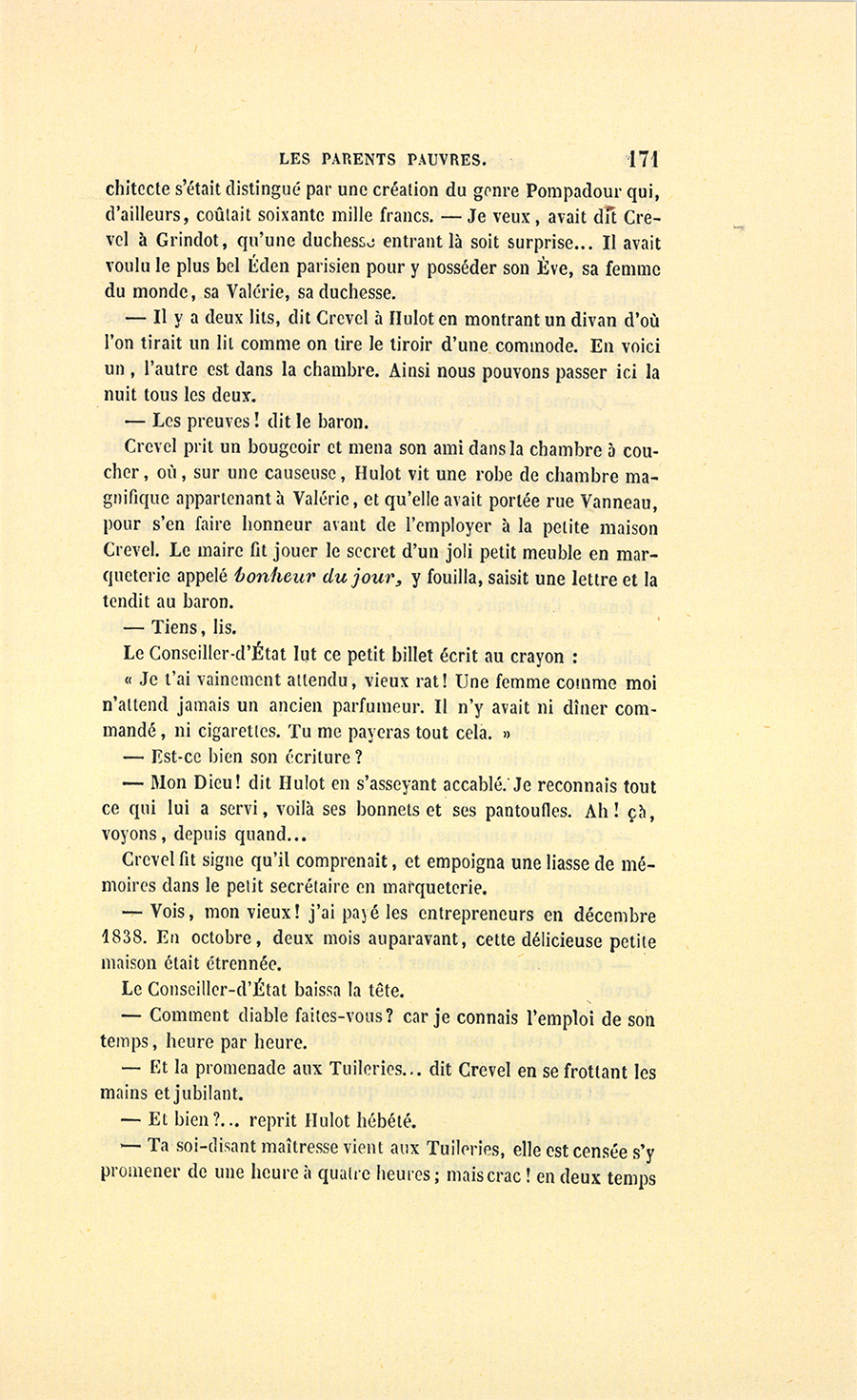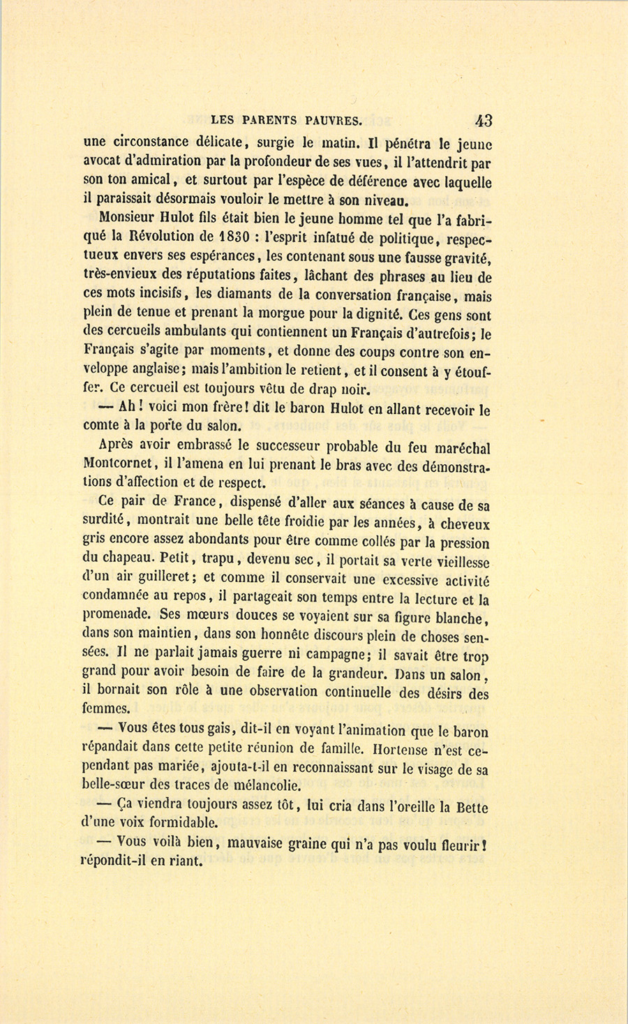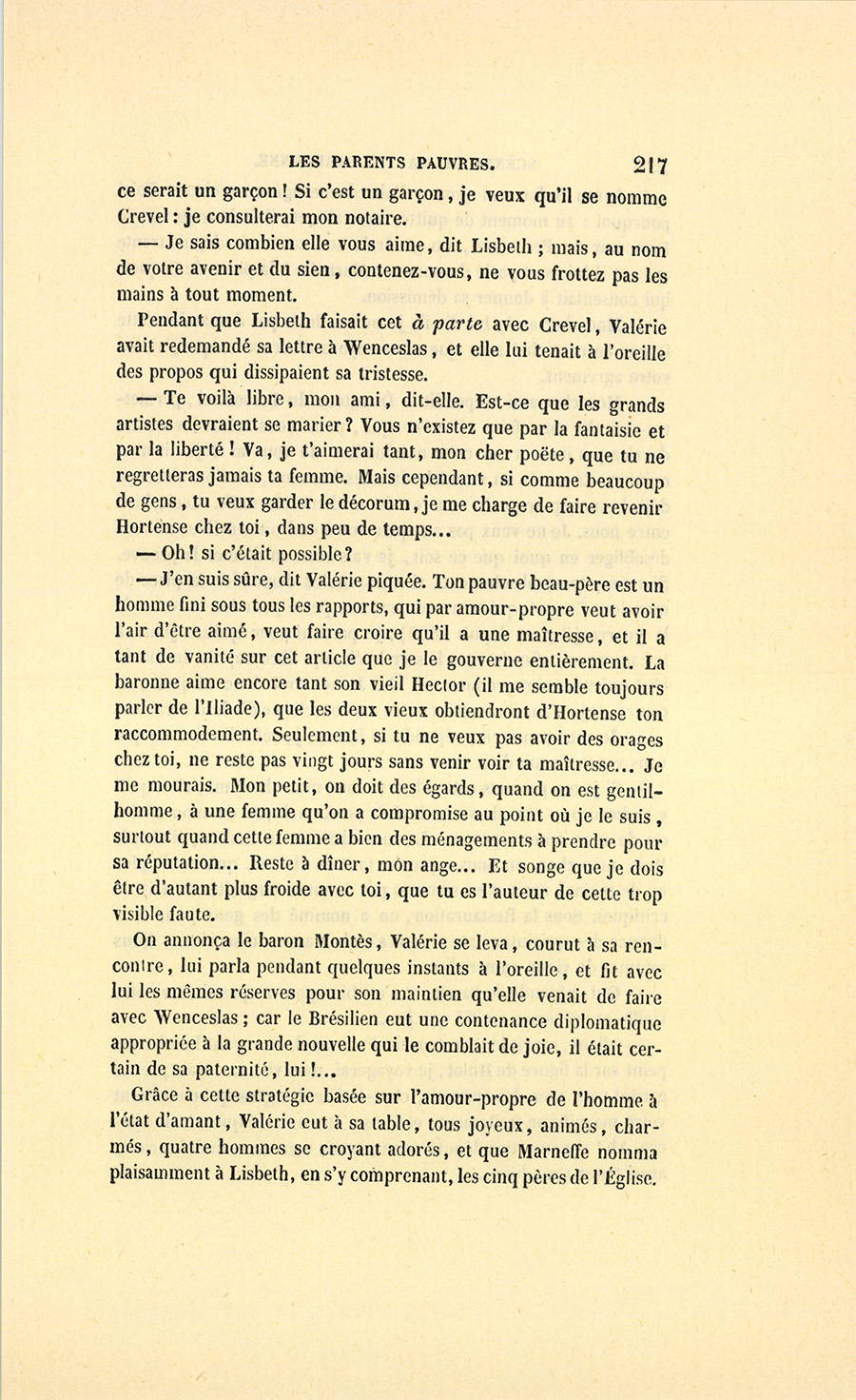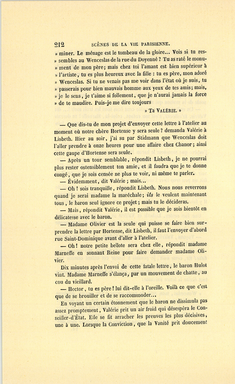 {p. 9} – Auriez-vous tenu ce langage, monsieur, demanda madame Hulot en regardant fixement Crevel, si pour vous j’eusse manqué à mes devoirs ?…