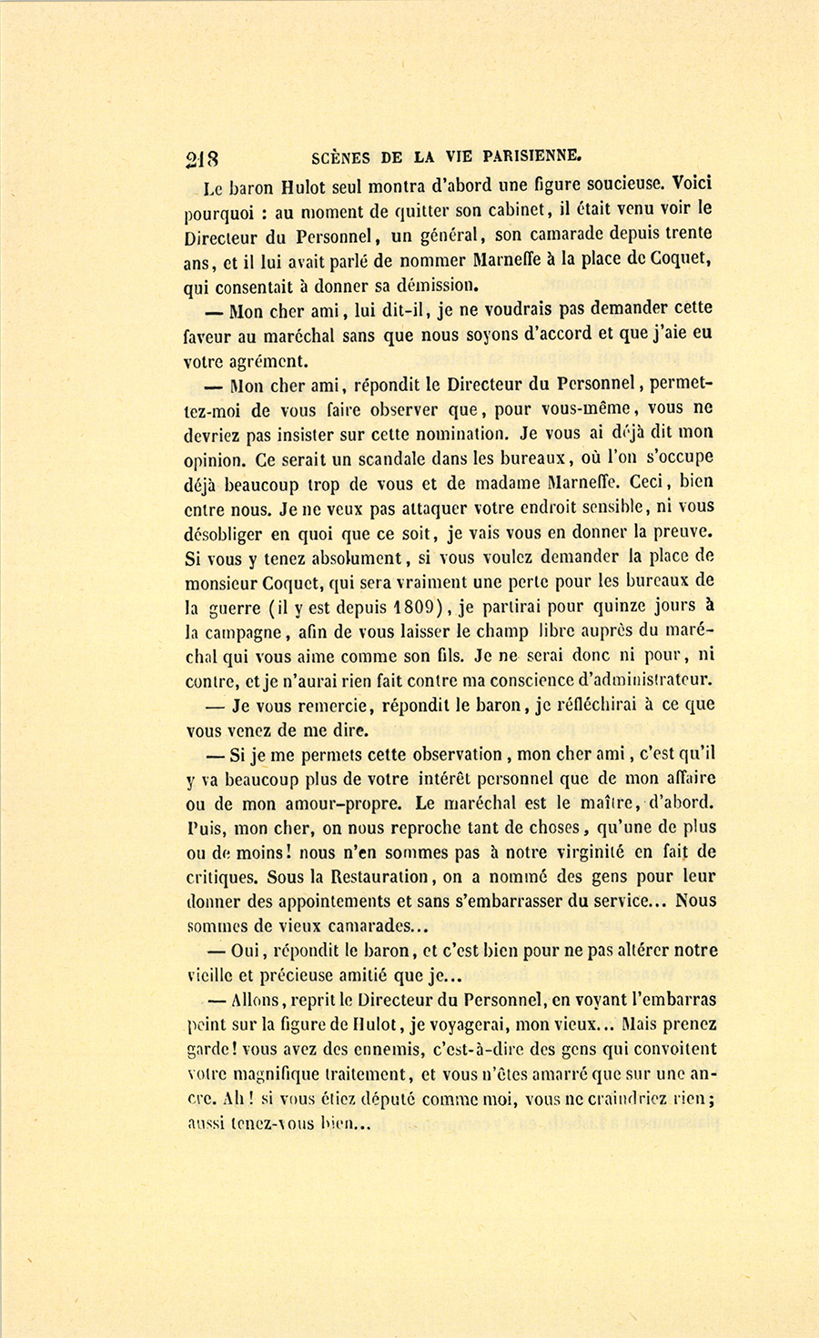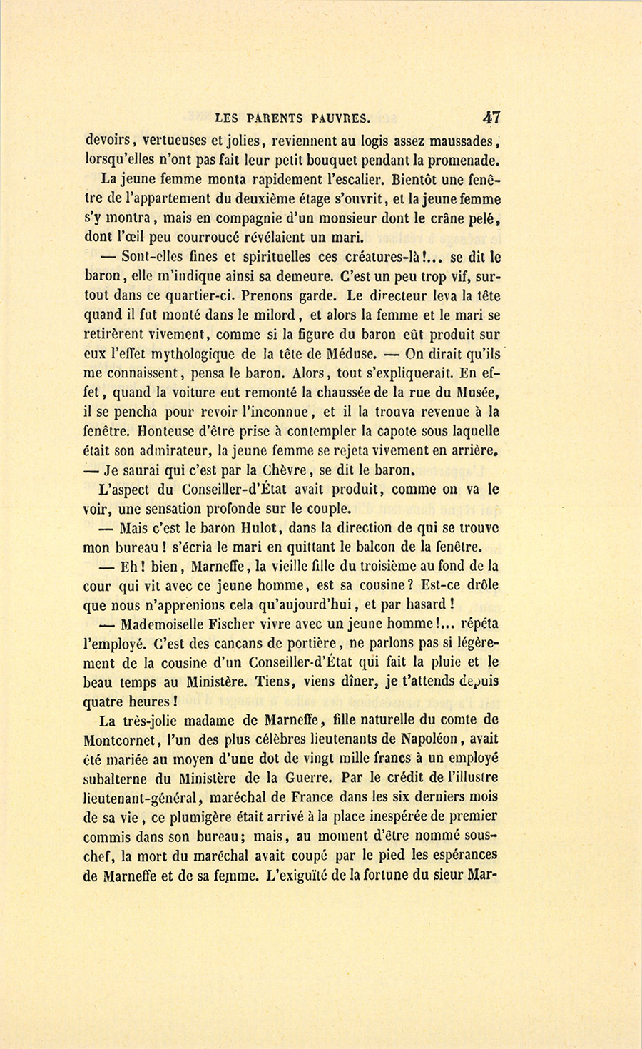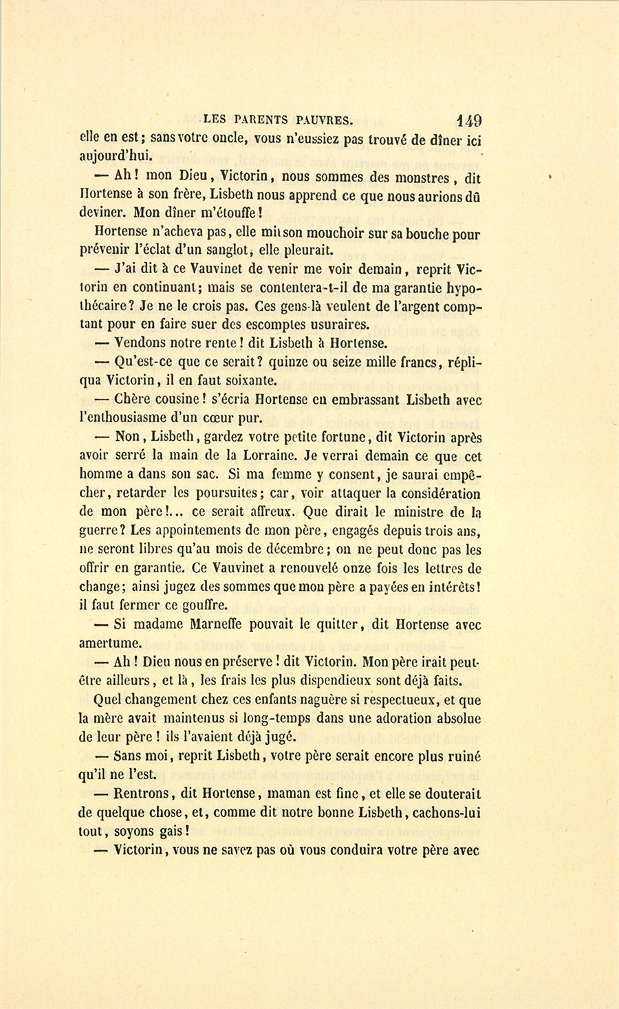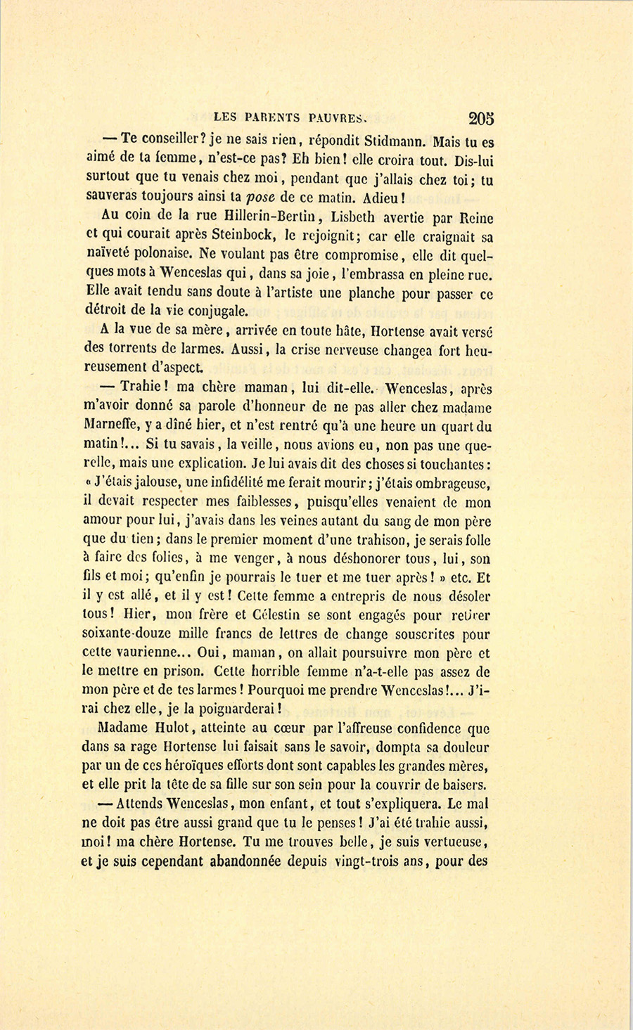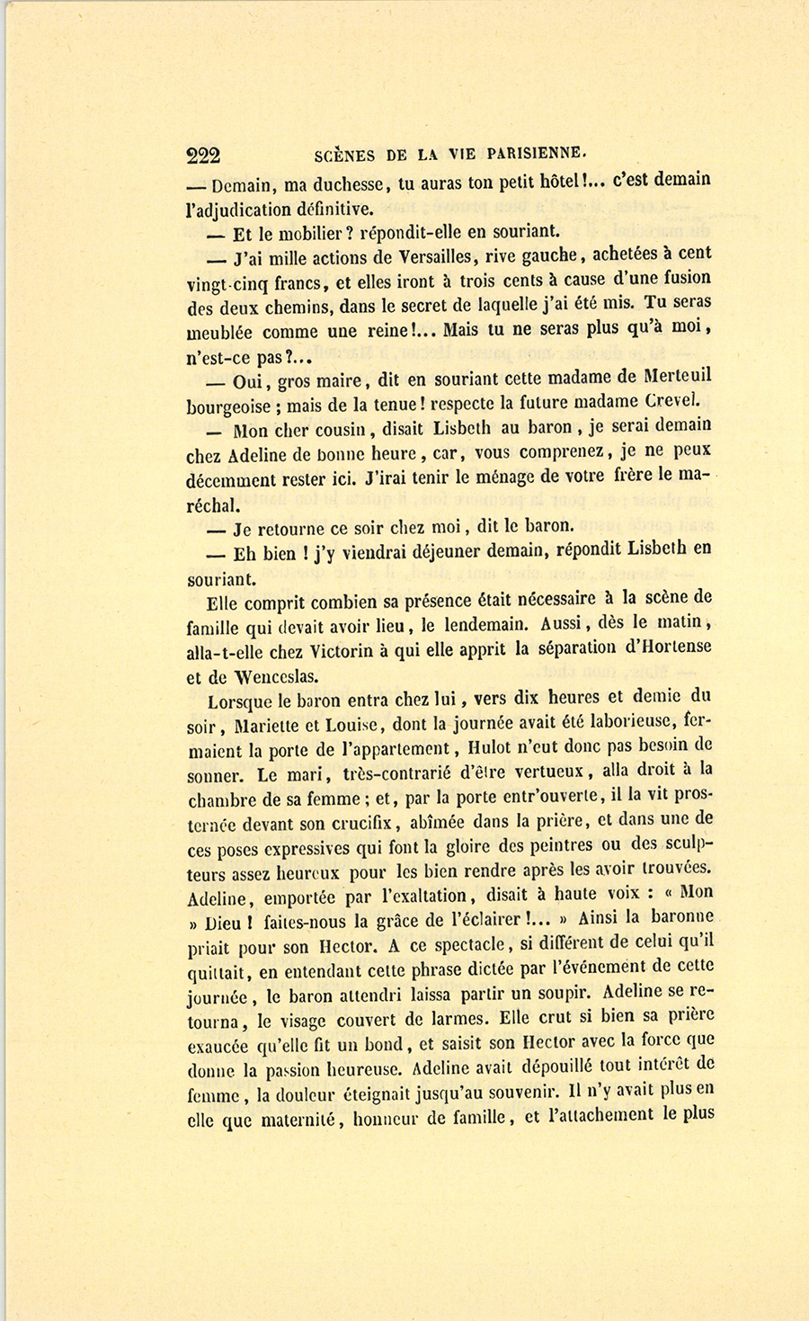 {p. 9} – Auriez-vous tenu ce langage, monsieur, demanda madame Hulot en regardant fixement Crevel, si pour vous j’eusse manqué à mes devoirs ?…