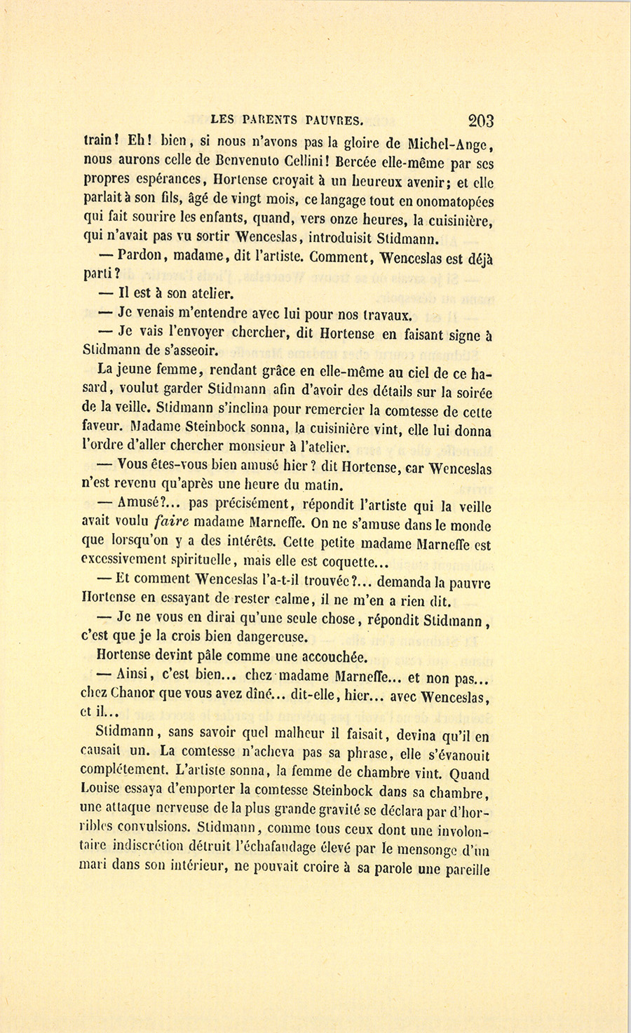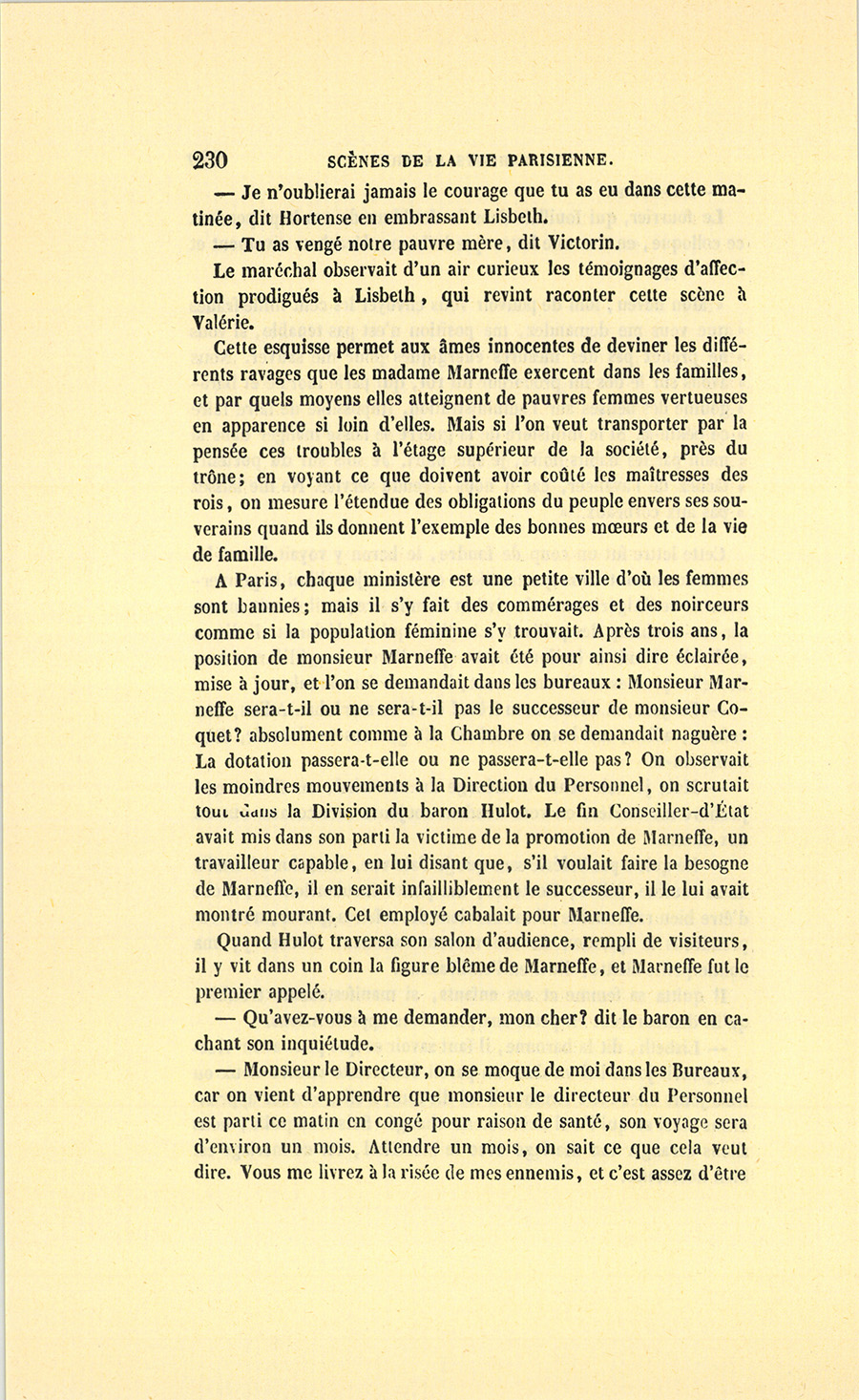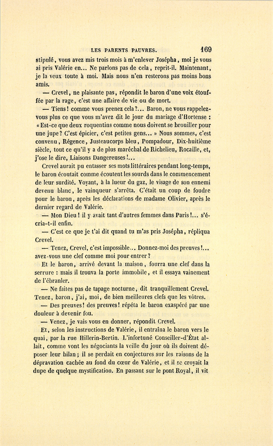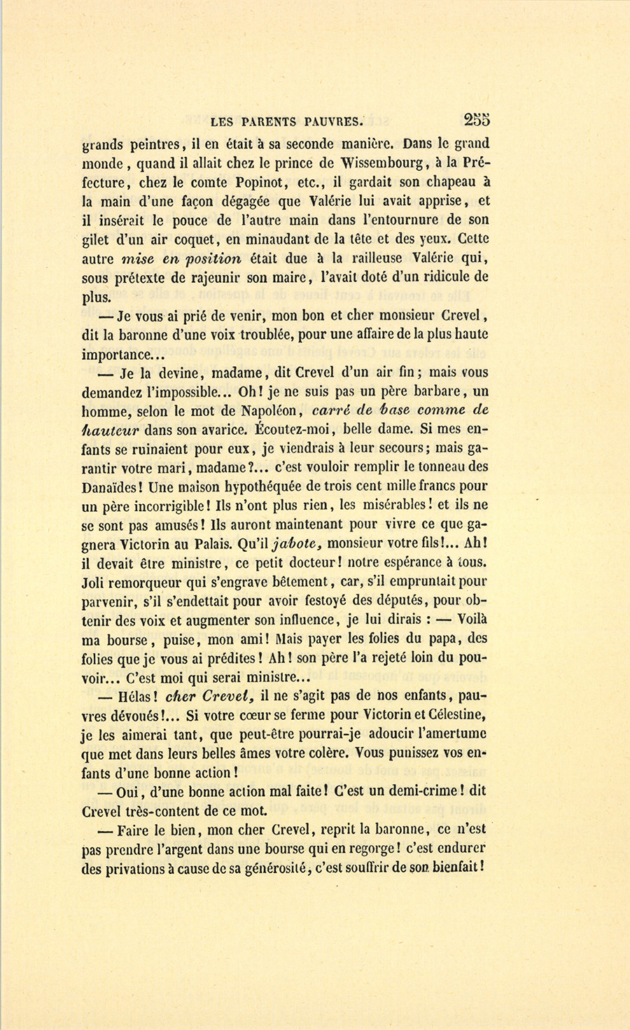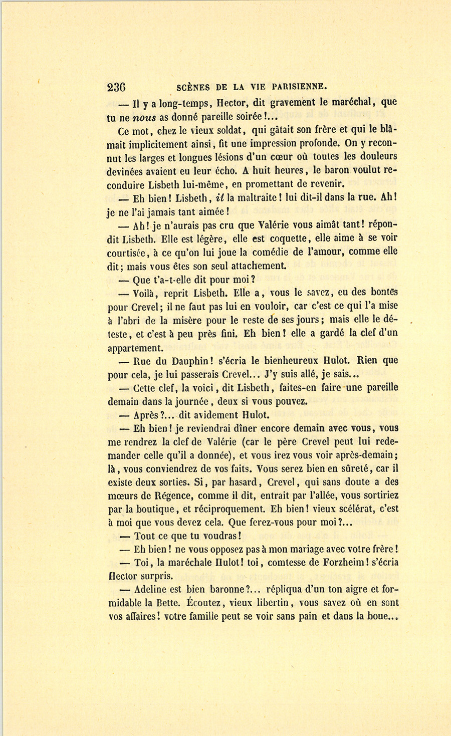 {p. 9} – Auriez-vous tenu ce langage, monsieur, demanda madame Hulot en regardant fixement Crevel, si pour vous j’eusse manqué à mes devoirs ?…