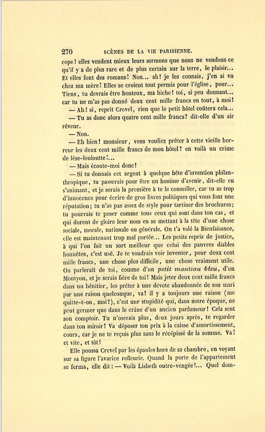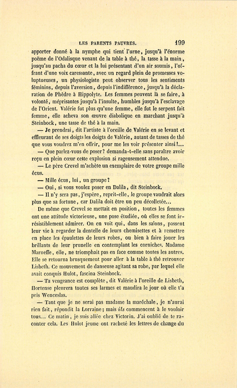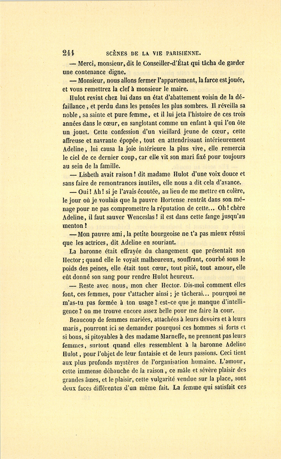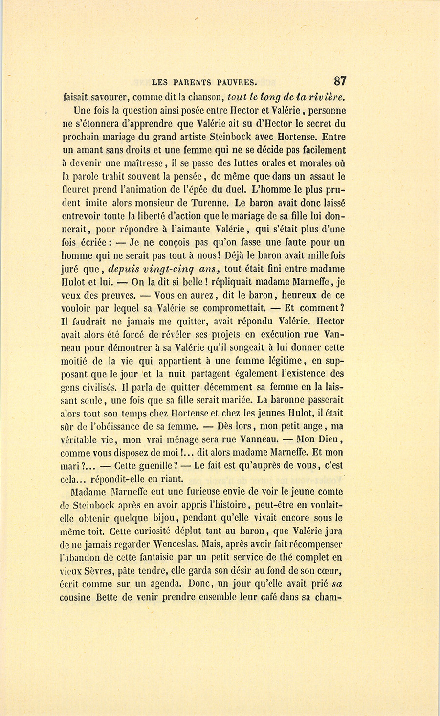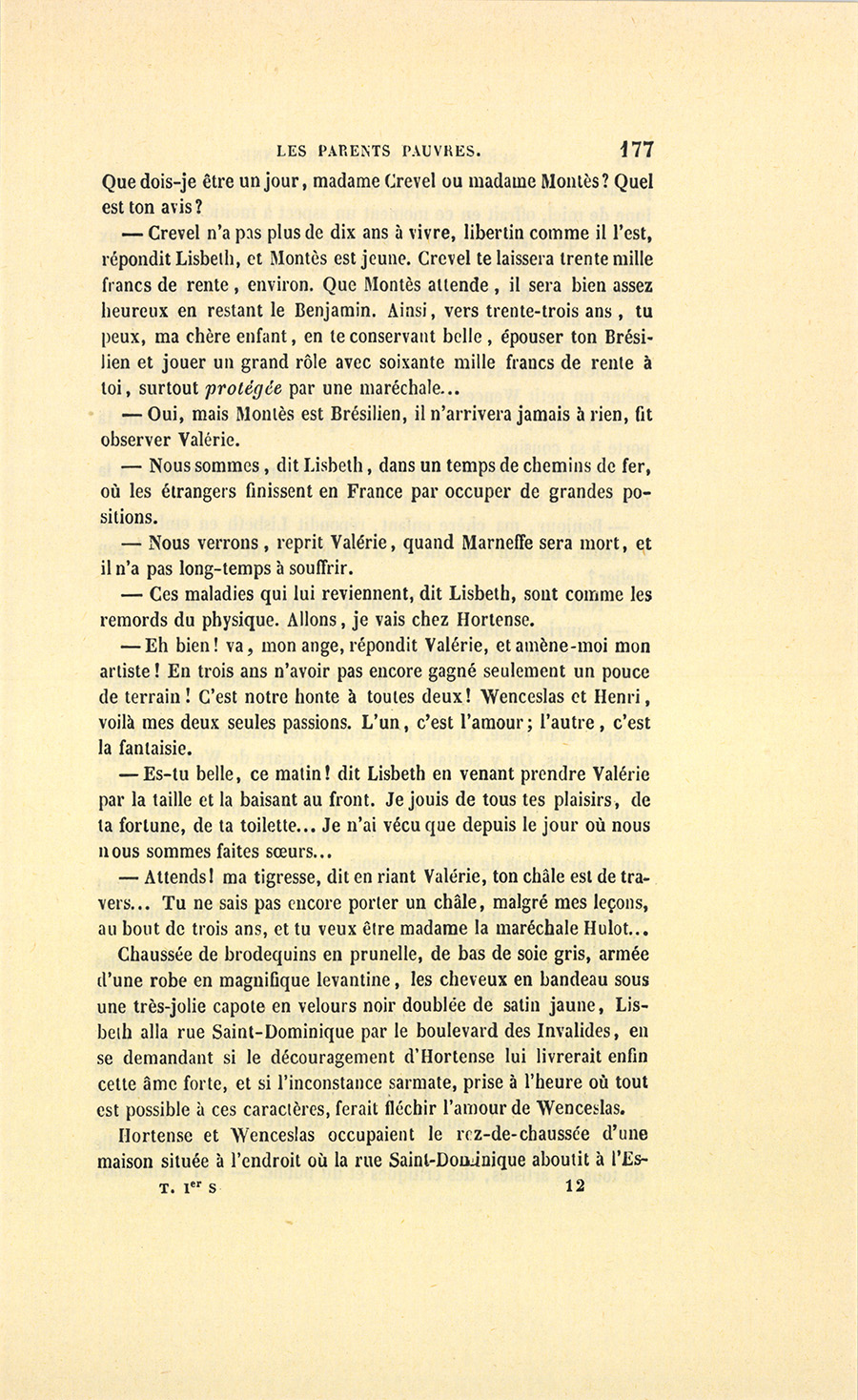 {p. 9} – Auriez-vous tenu ce langage, monsieur, demanda madame Hulot en regardant fixement Crevel, si pour vous j’eusse manqué à mes devoirs ?…
