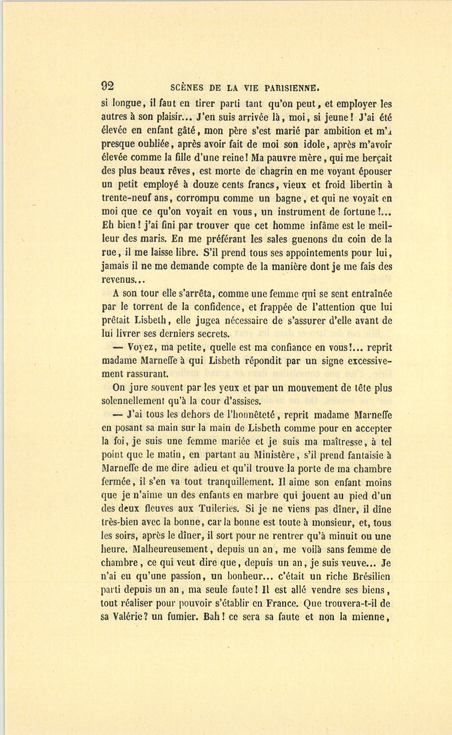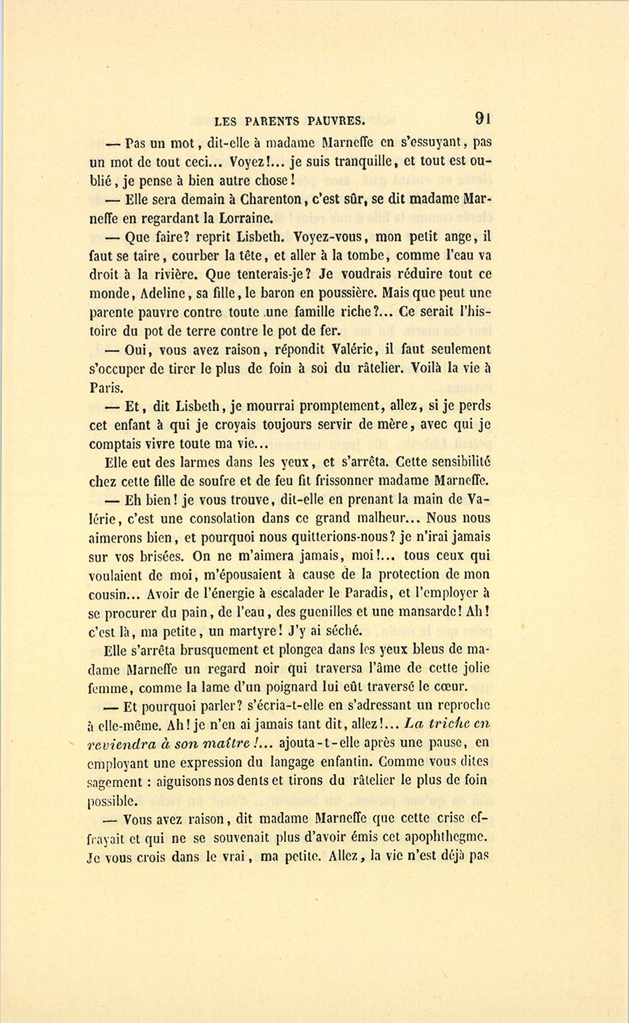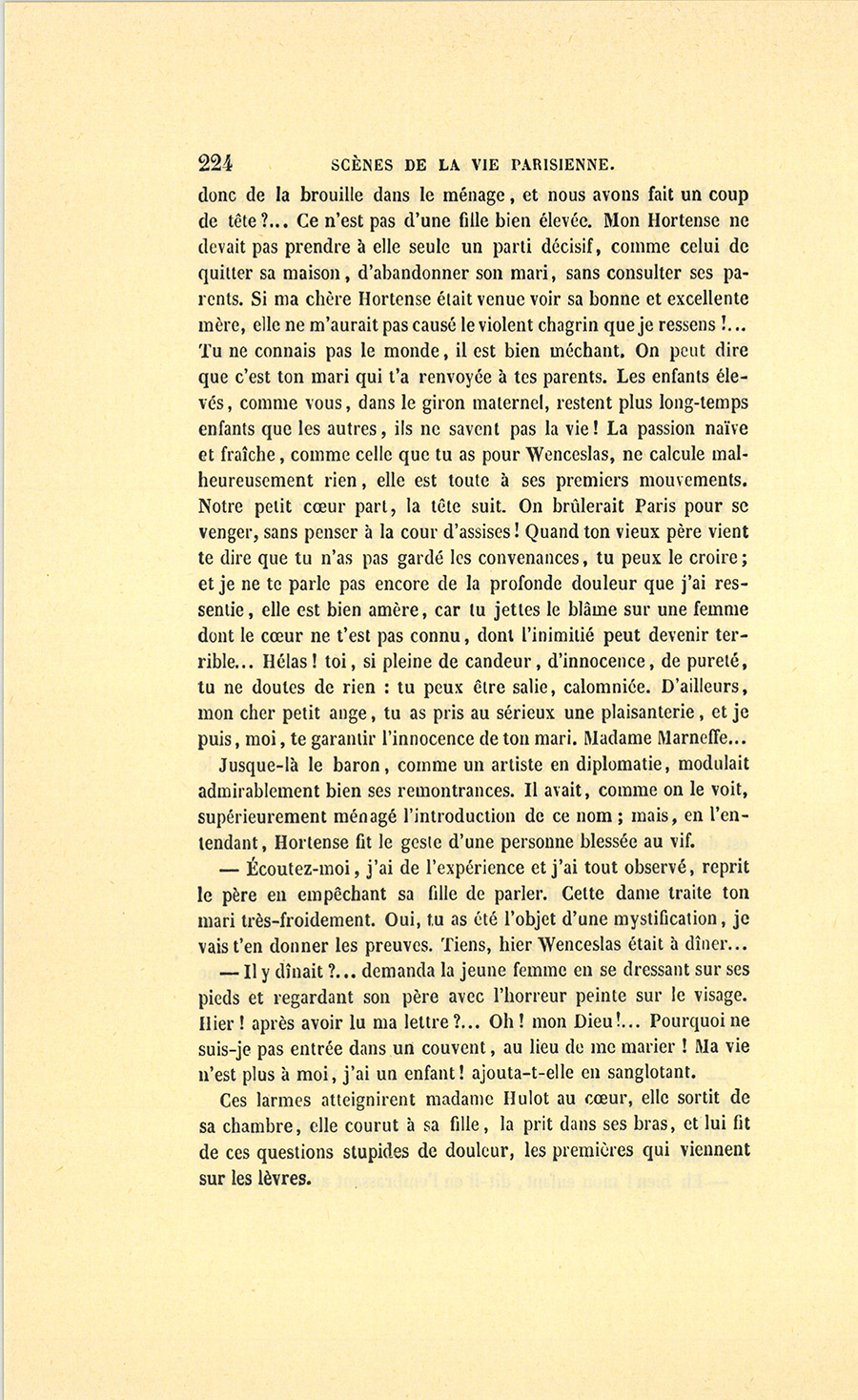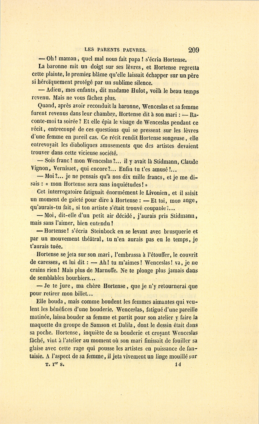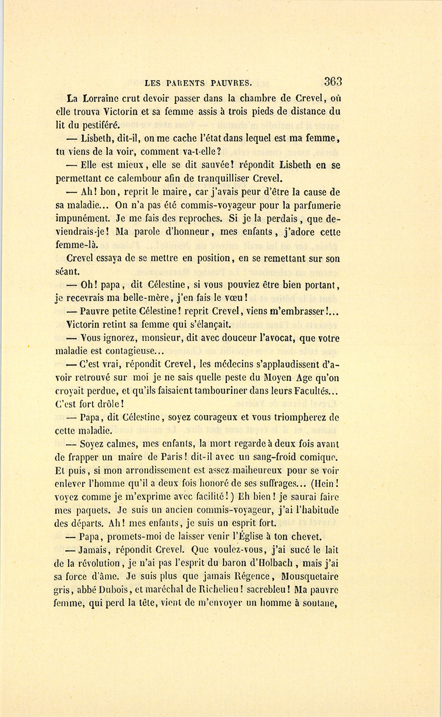 {p. 9} – Auriez-vous tenu ce langage, monsieur, demanda madame Hulot en regardant fixement Crevel, si pour vous j’eusse manqué à mes devoirs ?…