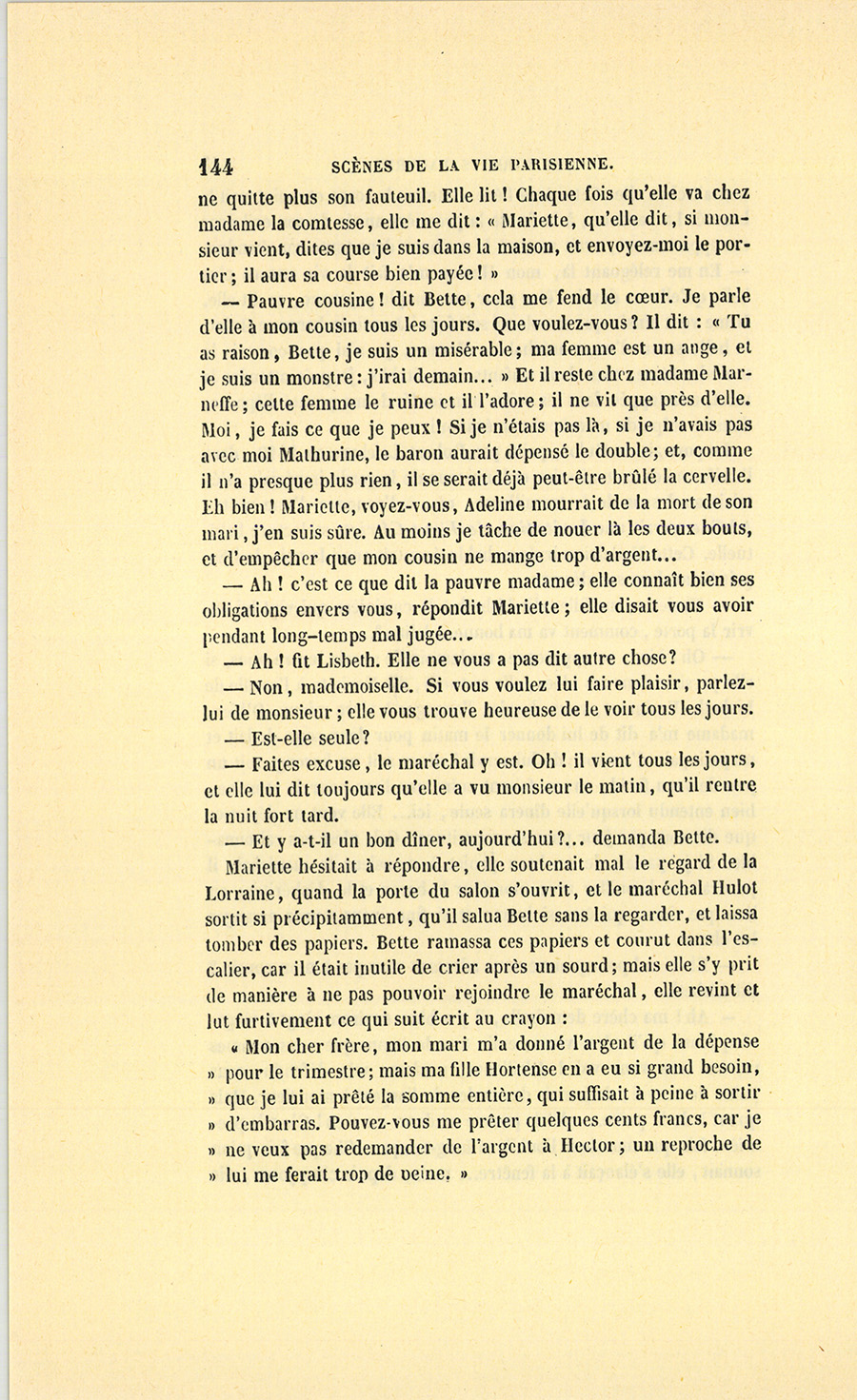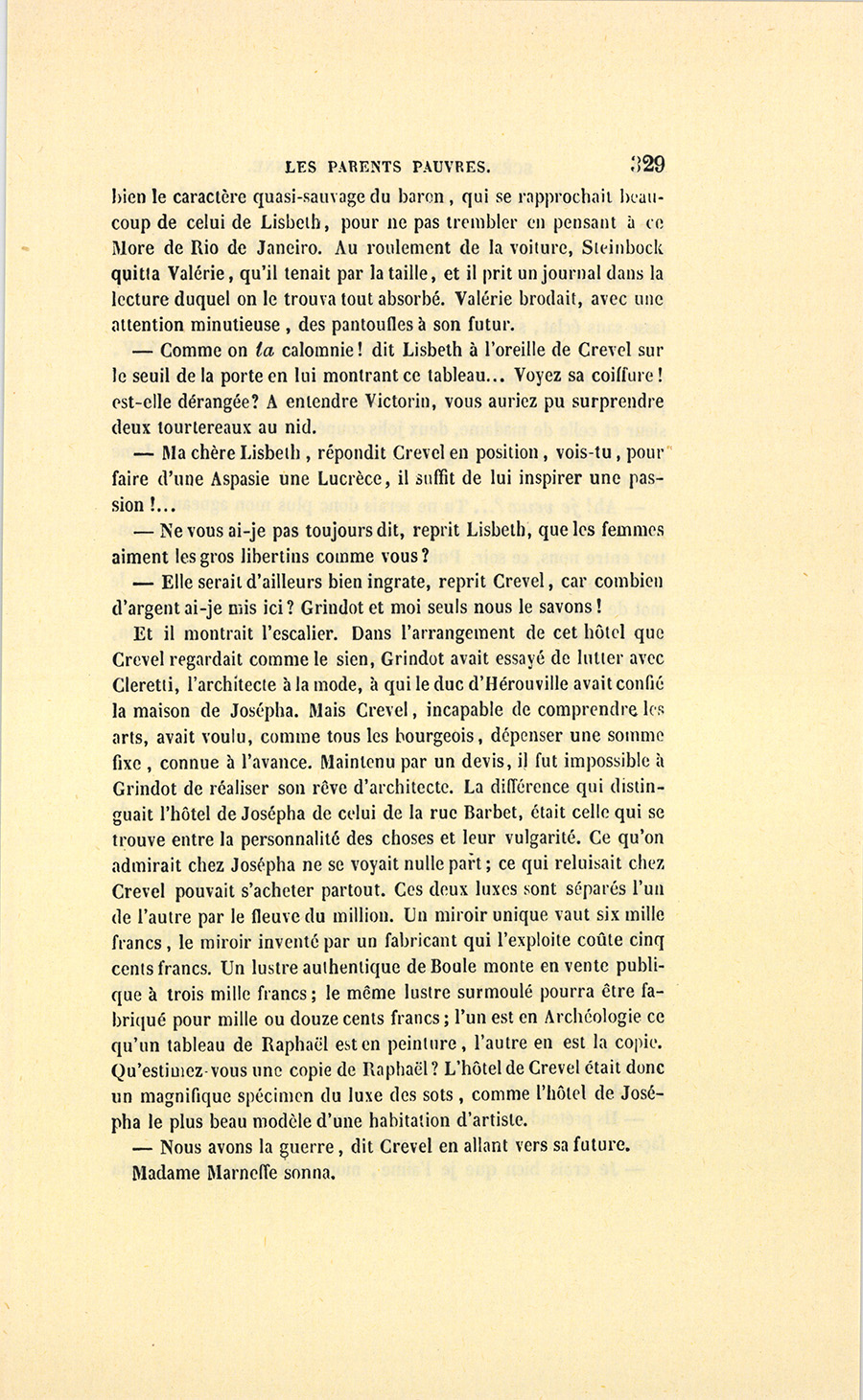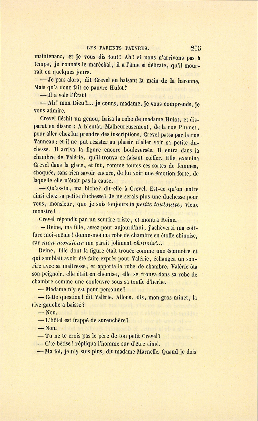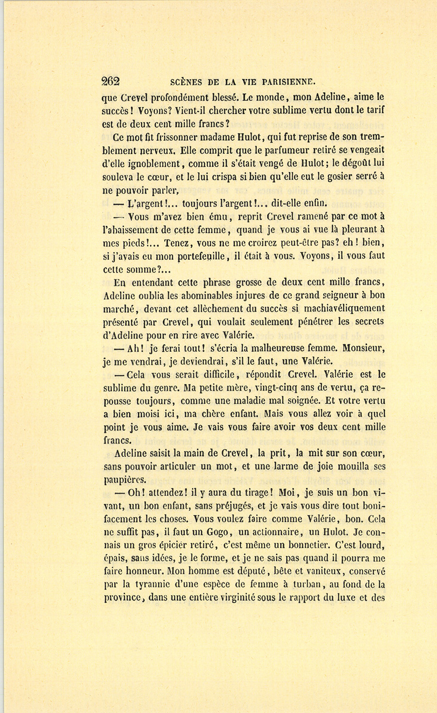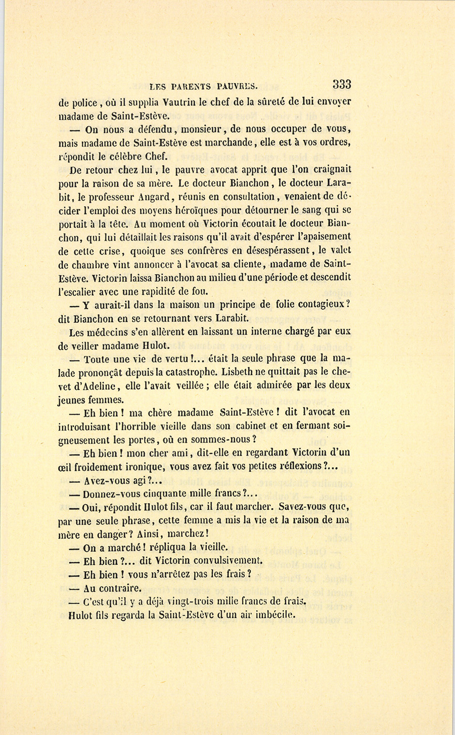 {p. 9} – Auriez-vous tenu ce langage, monsieur, demanda madame Hulot en regardant fixement Crevel, si pour vous j’eusse manqué à mes devoirs ?…