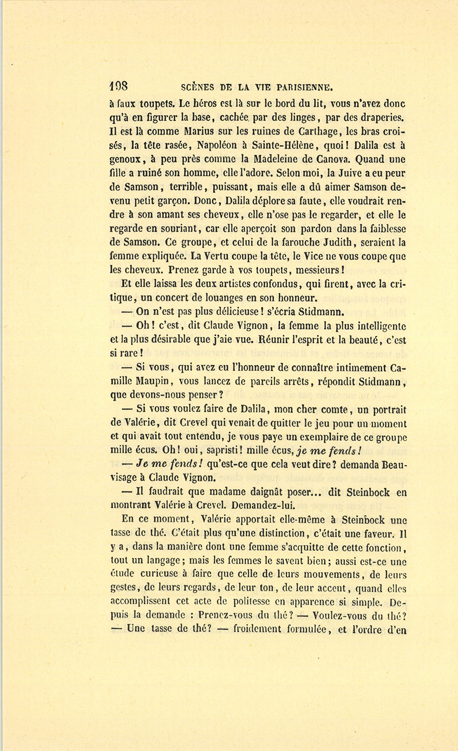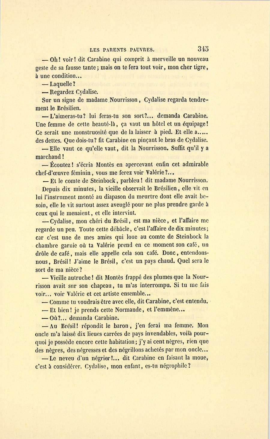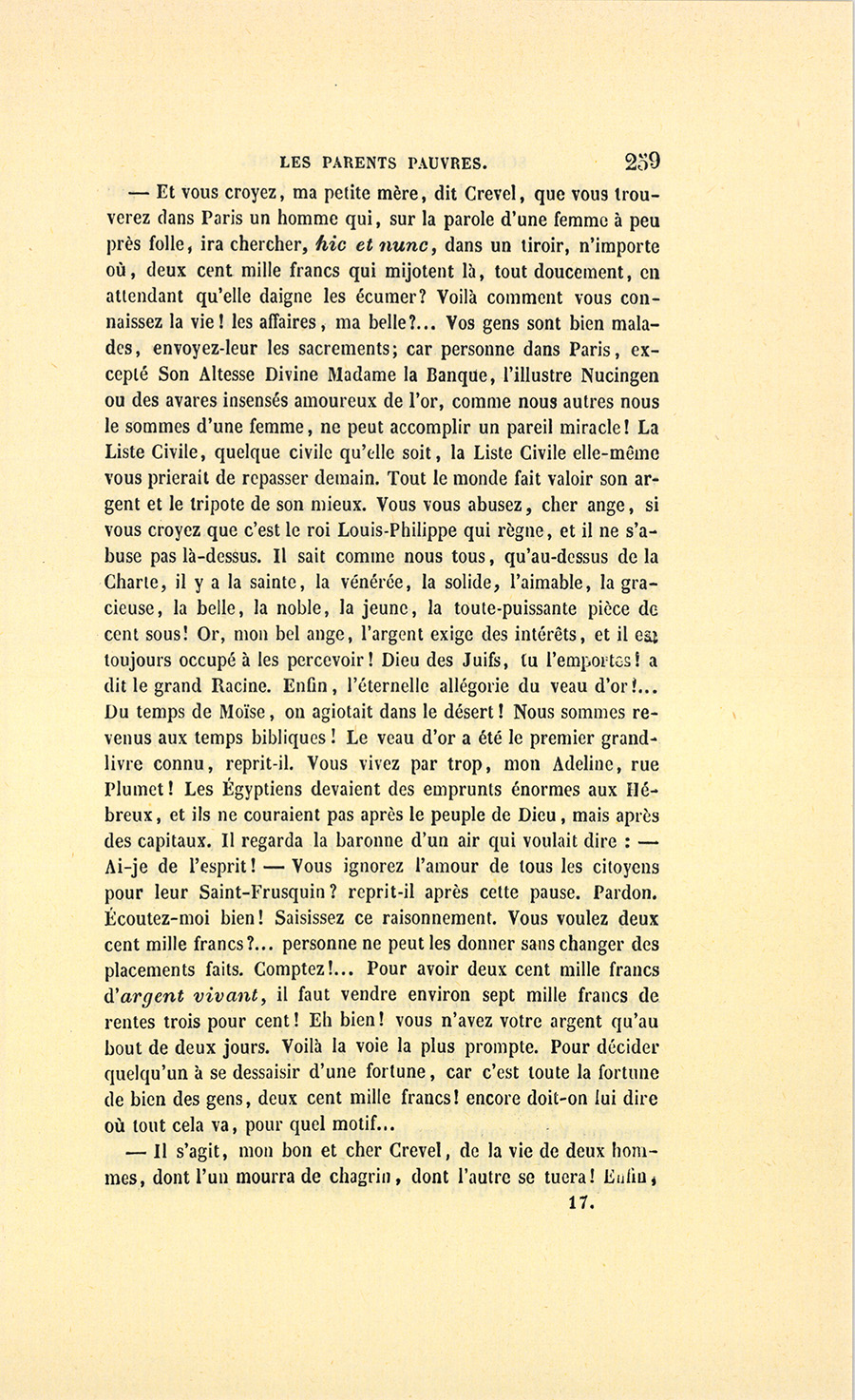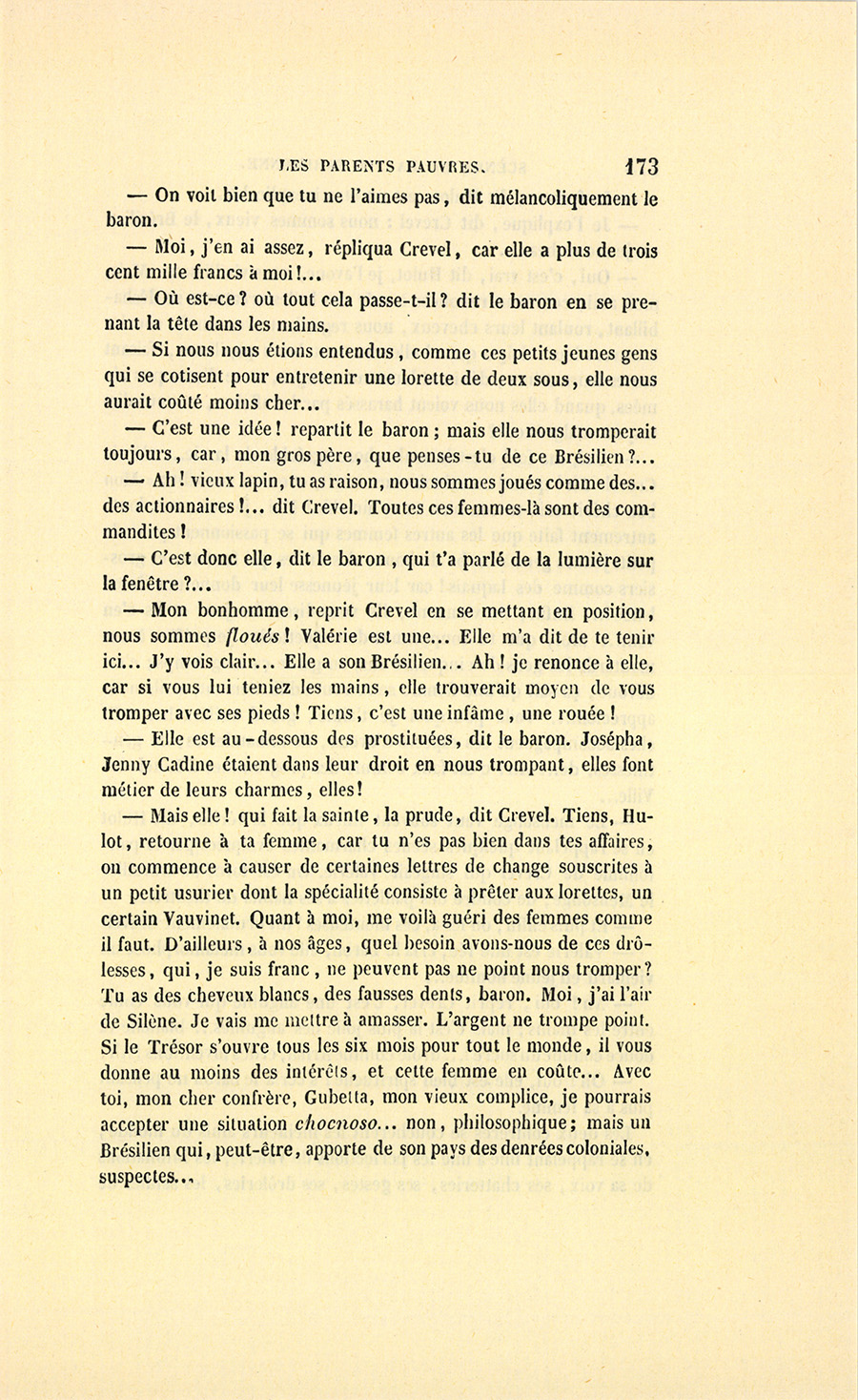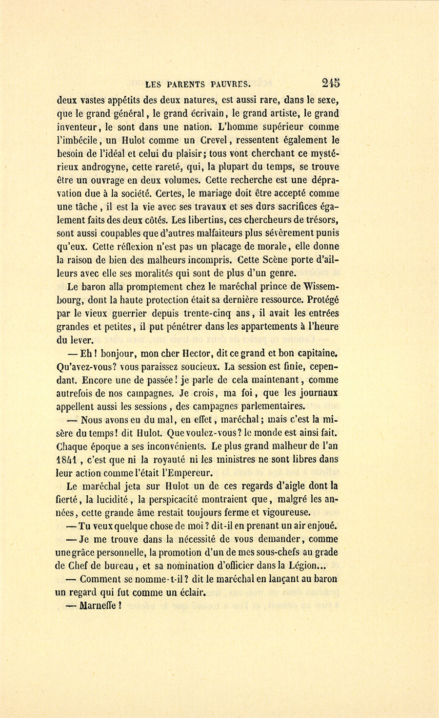 {p. 9} – Auriez-vous tenu ce langage, monsieur, demanda madame Hulot en regardant fixement Crevel, si pour vous j’eusse manqué à mes devoirs ?…