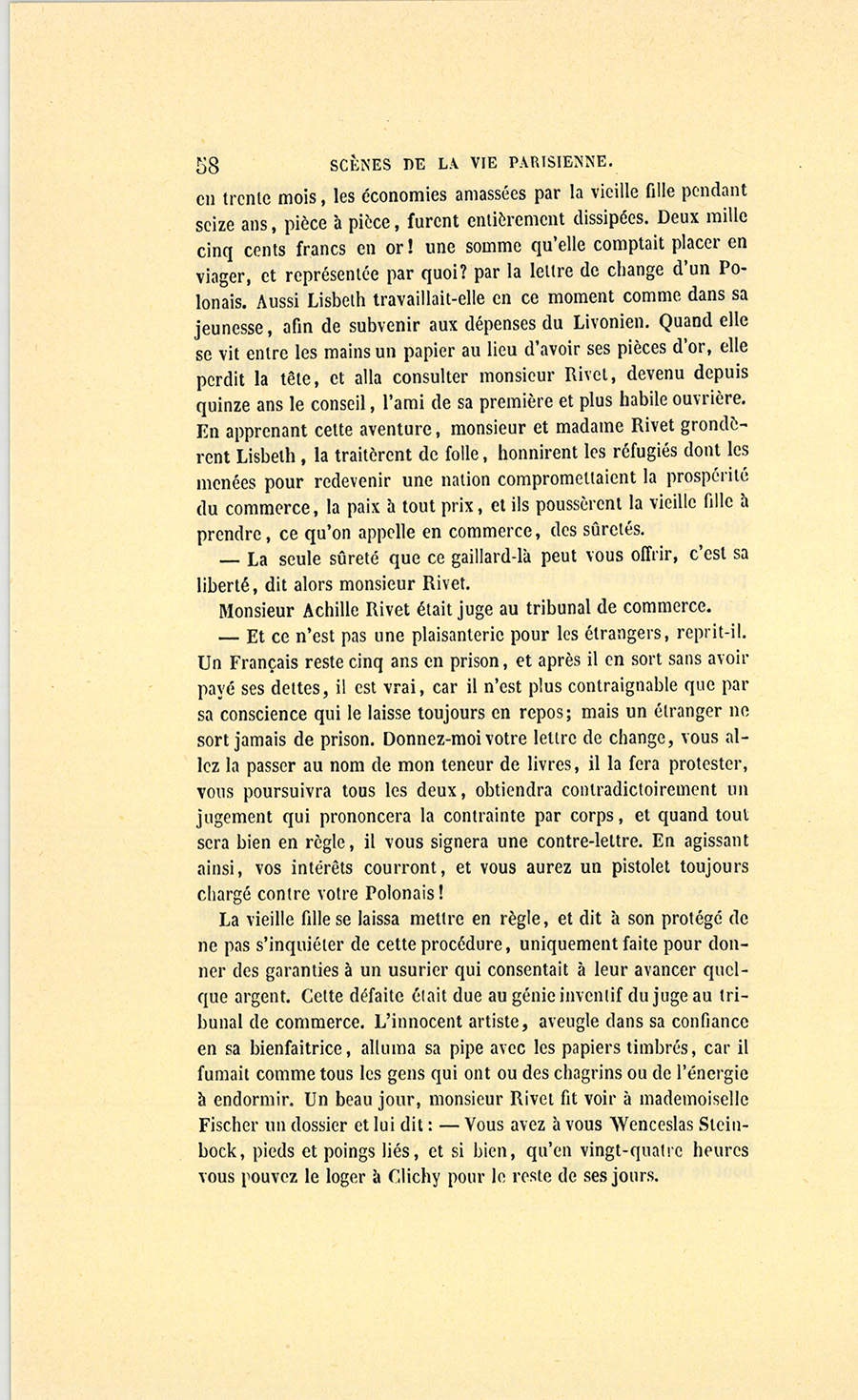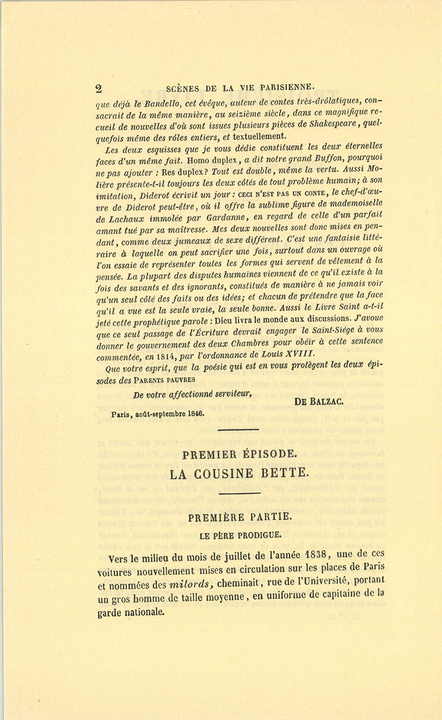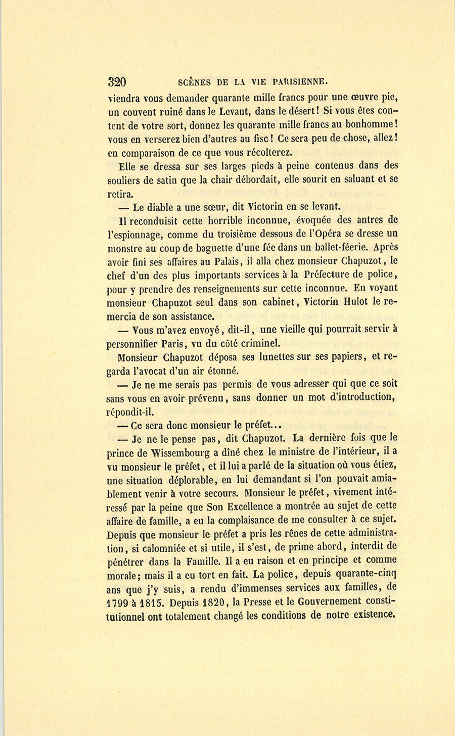 {p. 2}Vers le milieu du mois de juillet de l’année 1838, une de ces voitures nouvellement mises en circulation sur les places de Paris et nommées des milords, cheminait, rue de l’Université, portant un gros homme de taille moyenne, en uniforme de capitaine de la garde nationale.
