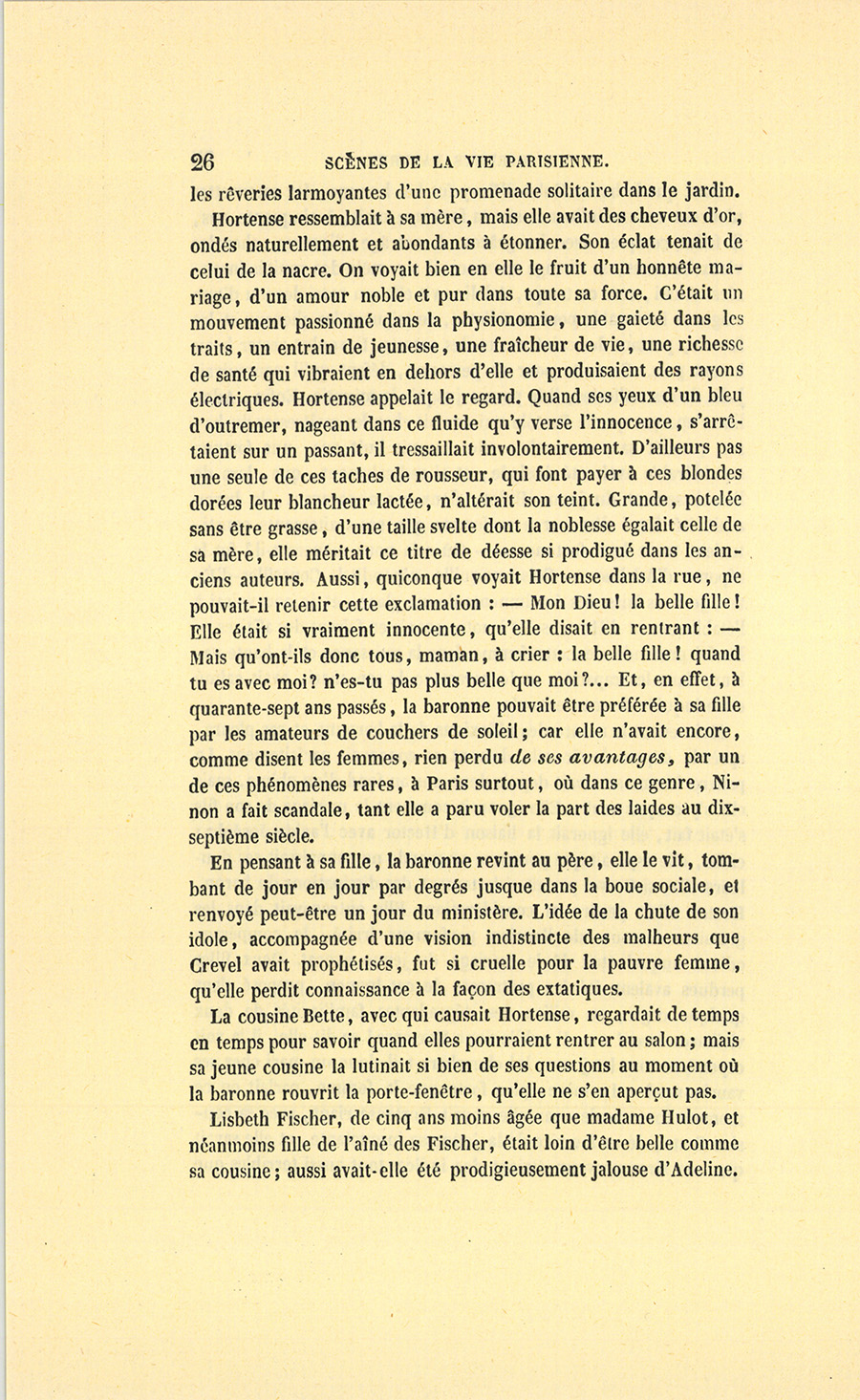 – Hortense, mon ange, va dans le jardin avec ta cousine Bette, dit-elle vivement à sa fille qui brodait à quelques pas d’elle.