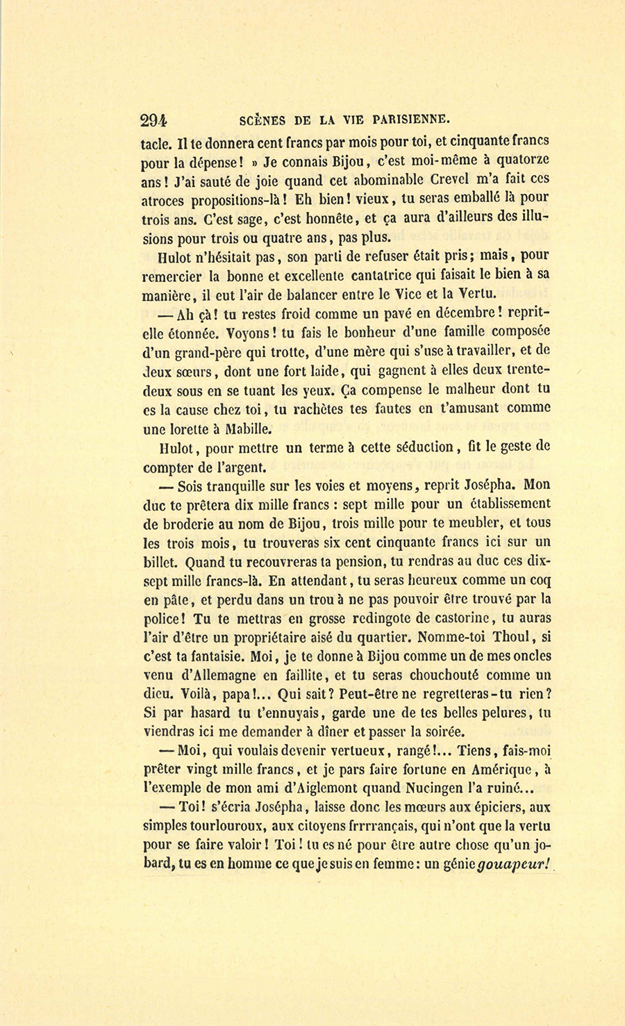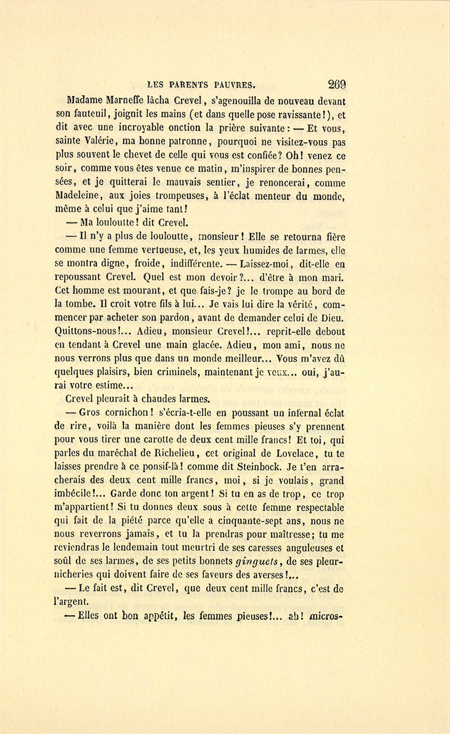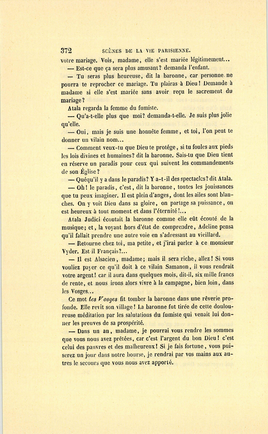 {p. 375} – Vous lui direz, ajouta-t-elle, que si elle veut se mettre sous la direction de monsieur le curé de la Madeleine, le jour où elle fera sa première communion je lui donnerai trente mille francs de dot et un bon mari, quelque brave jeune homme !