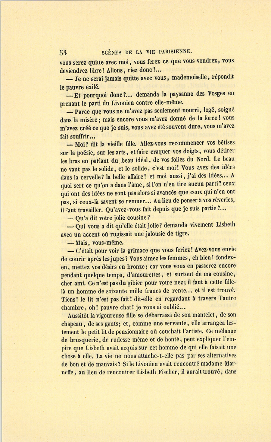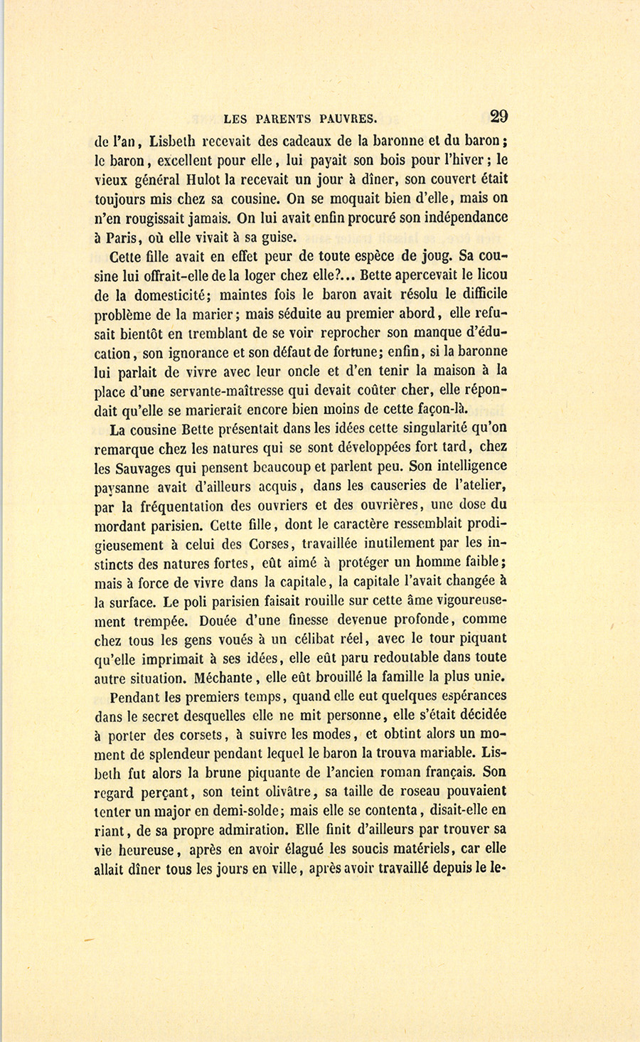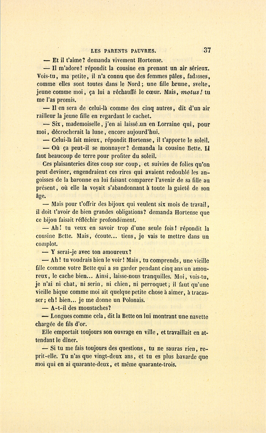 – Vous n’avez pas de monde ? demanda la cousine Bette.