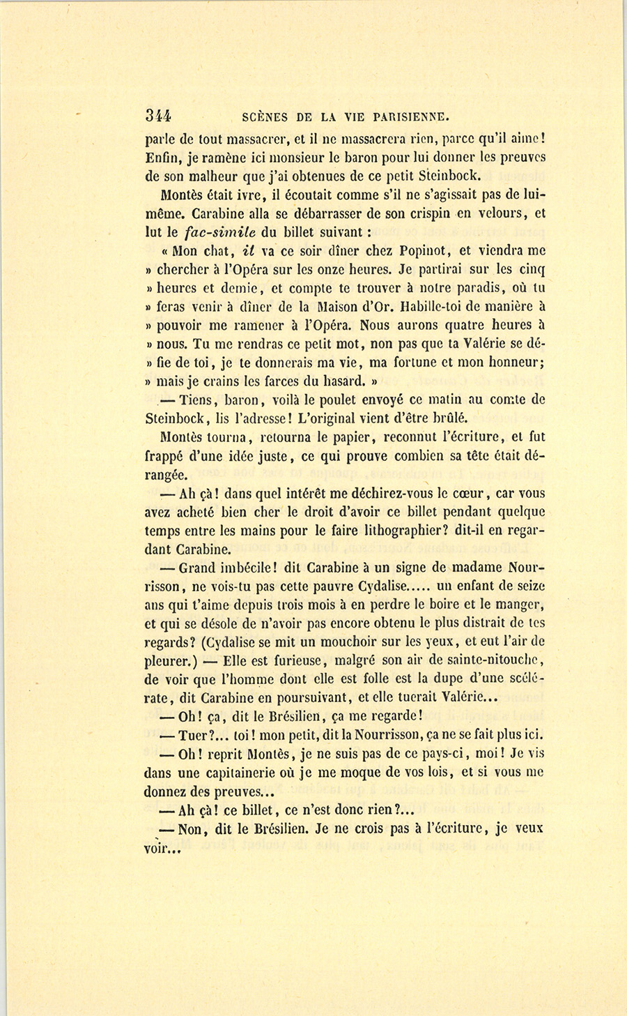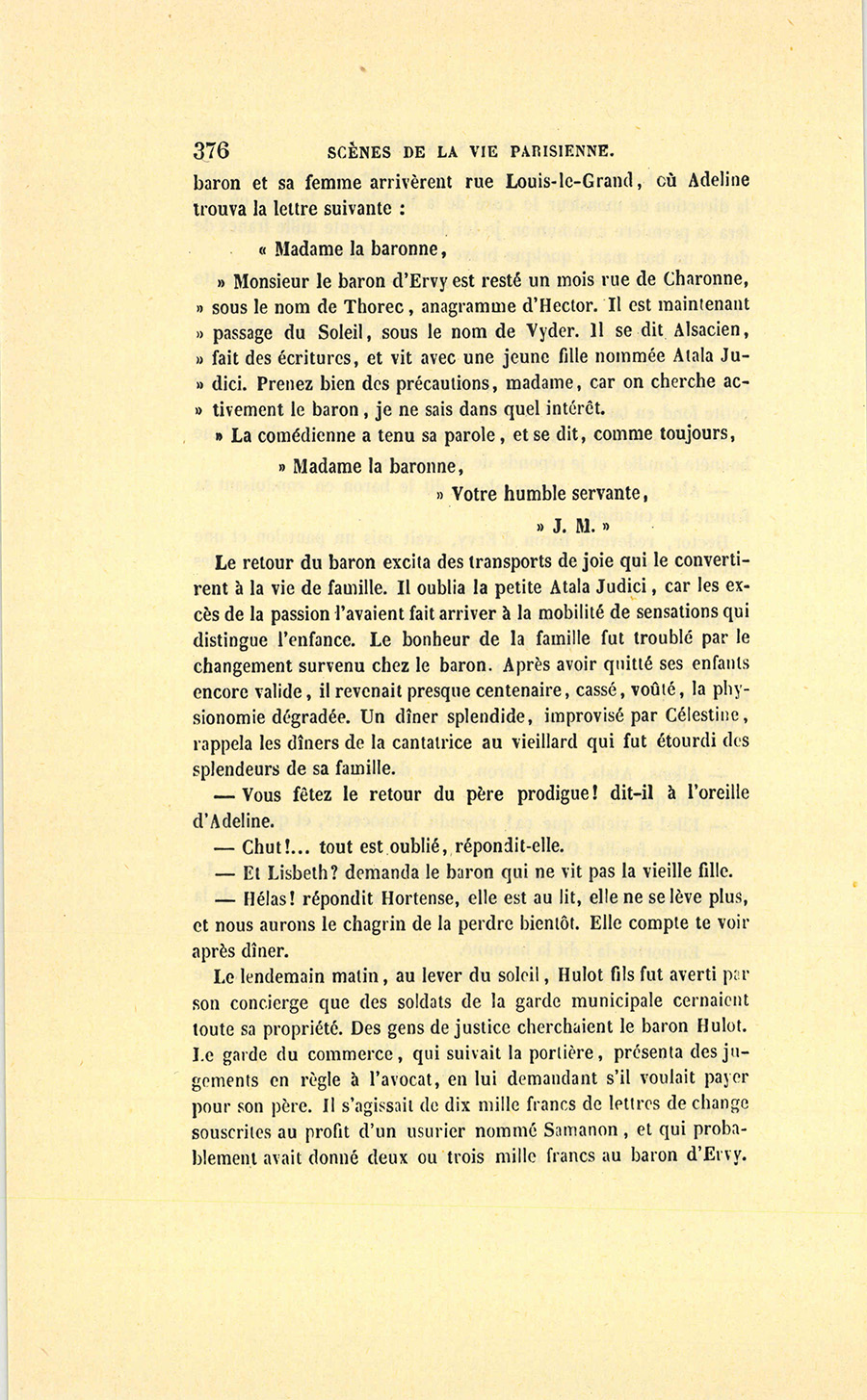 Adeline parlait comme parlent les amants qui se revoient après une longue absence, de mille choses à la fois. En dix minutes, le {p. 376} baron et sa femme arrivèrent rue Louis-le-Grand, où Adeline trouva la lettre suivante :