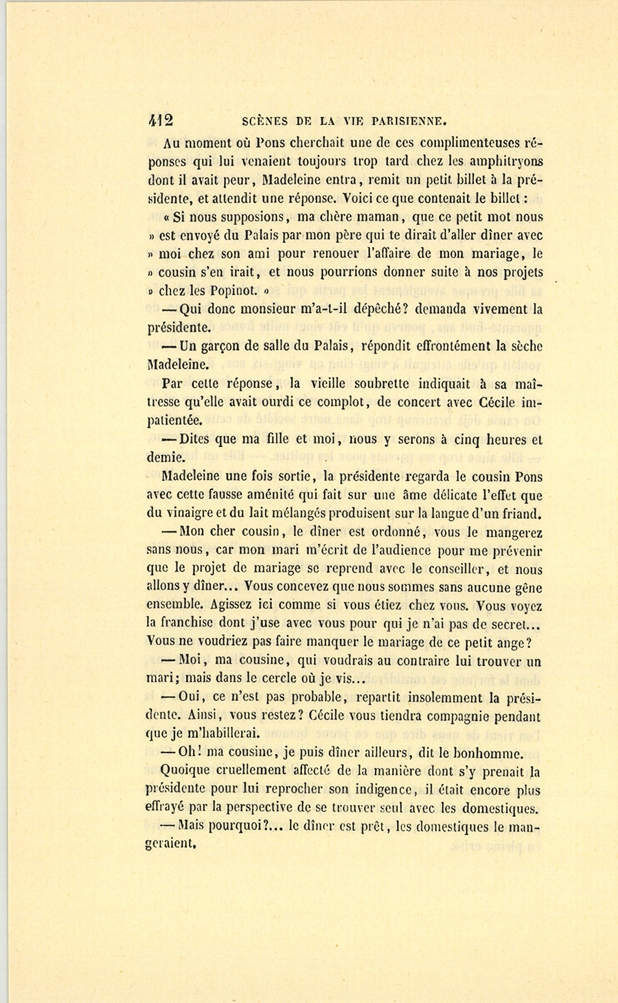 L’ancien notaire Cardot, ayant marié sa fille à son successeur, nommé Berthier, Pons, faisant partie de la charge, sut garder ce dîner, par-devant notaire, disait-il.