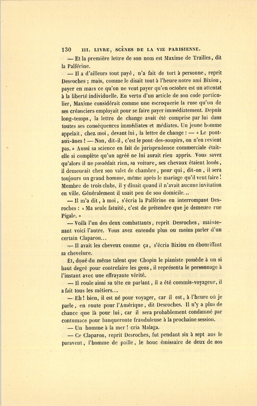 {p. 130} – Et la première lettre de son nom est Maxime de Trailles, dit la Palférine.