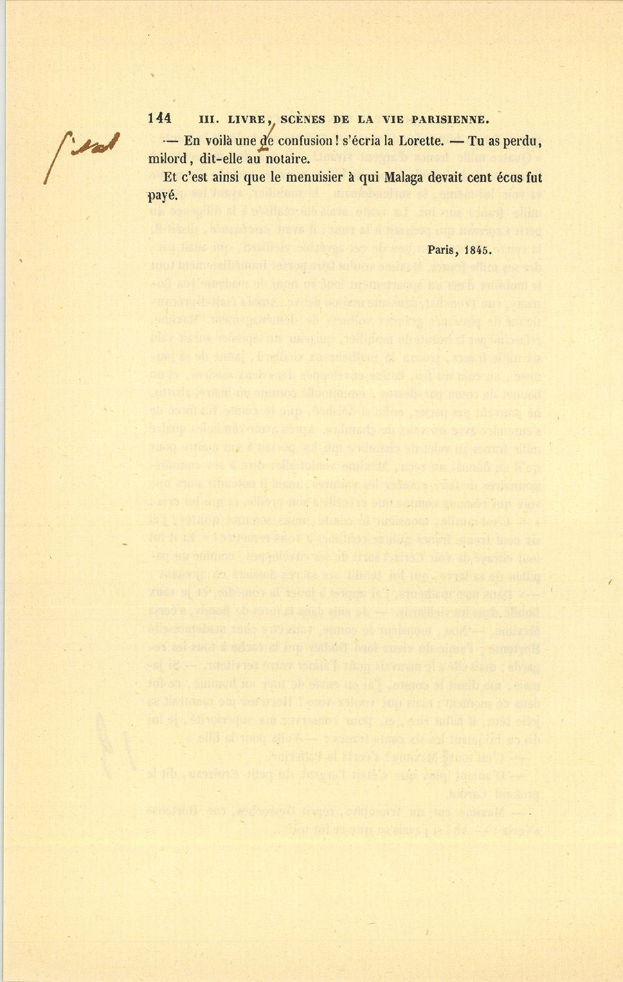 {p. 144} – En voilà une de confusion ! s’écria la Lorette. – Tu as perdu, milord, dit-elle au notaire.