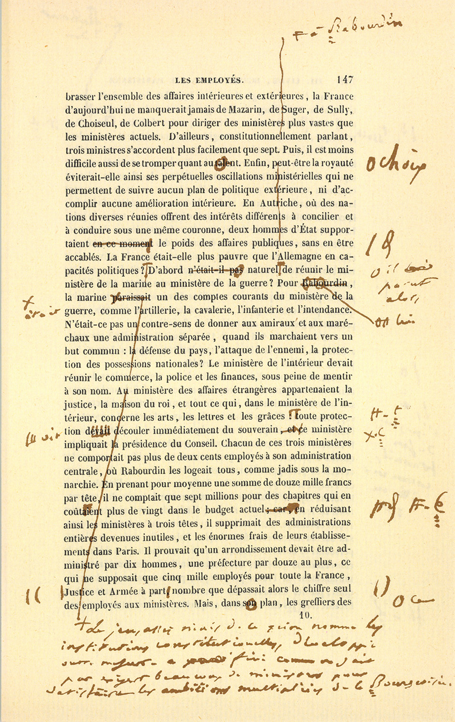 Certes, la bureaucratie a des torts : je la trouve et lente et insolente, elle enserre un peu trop l’action ministérielle, elle étouffe bien des projets, elle arrête le progrès ; mais l’administration française est admirablement utile…