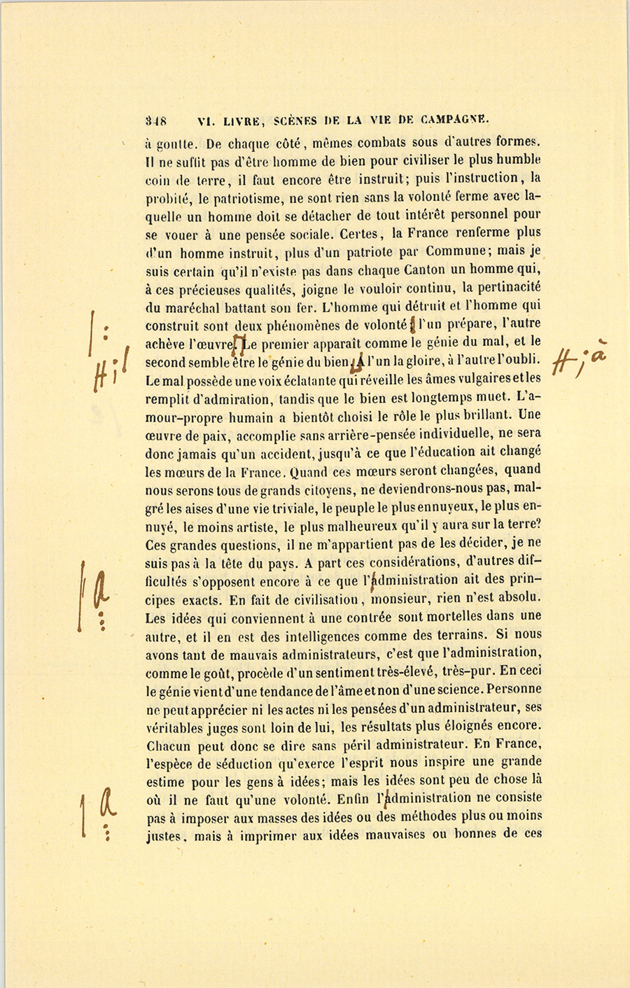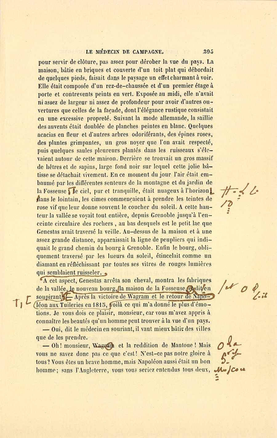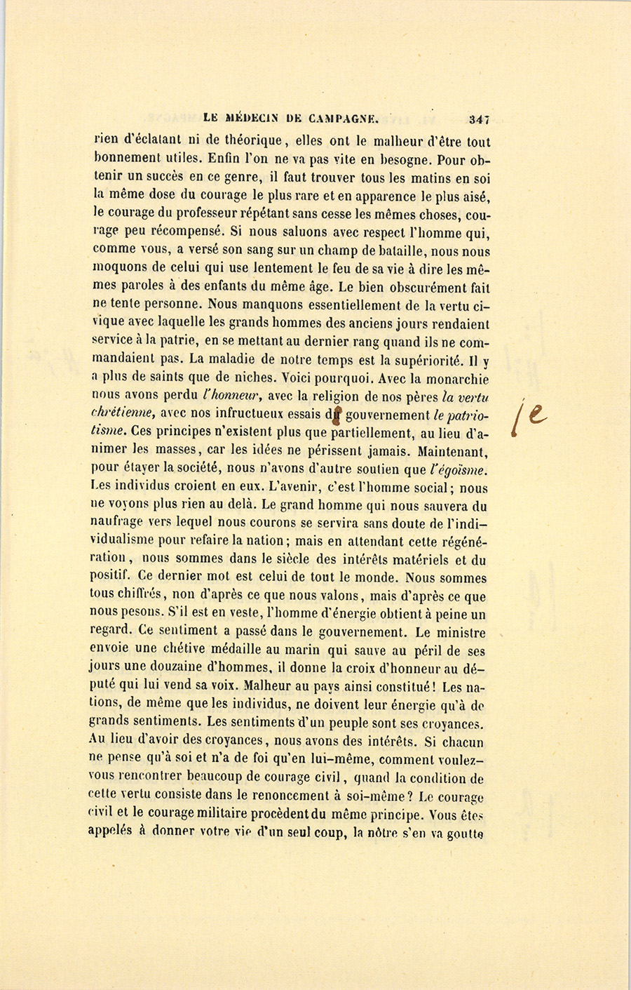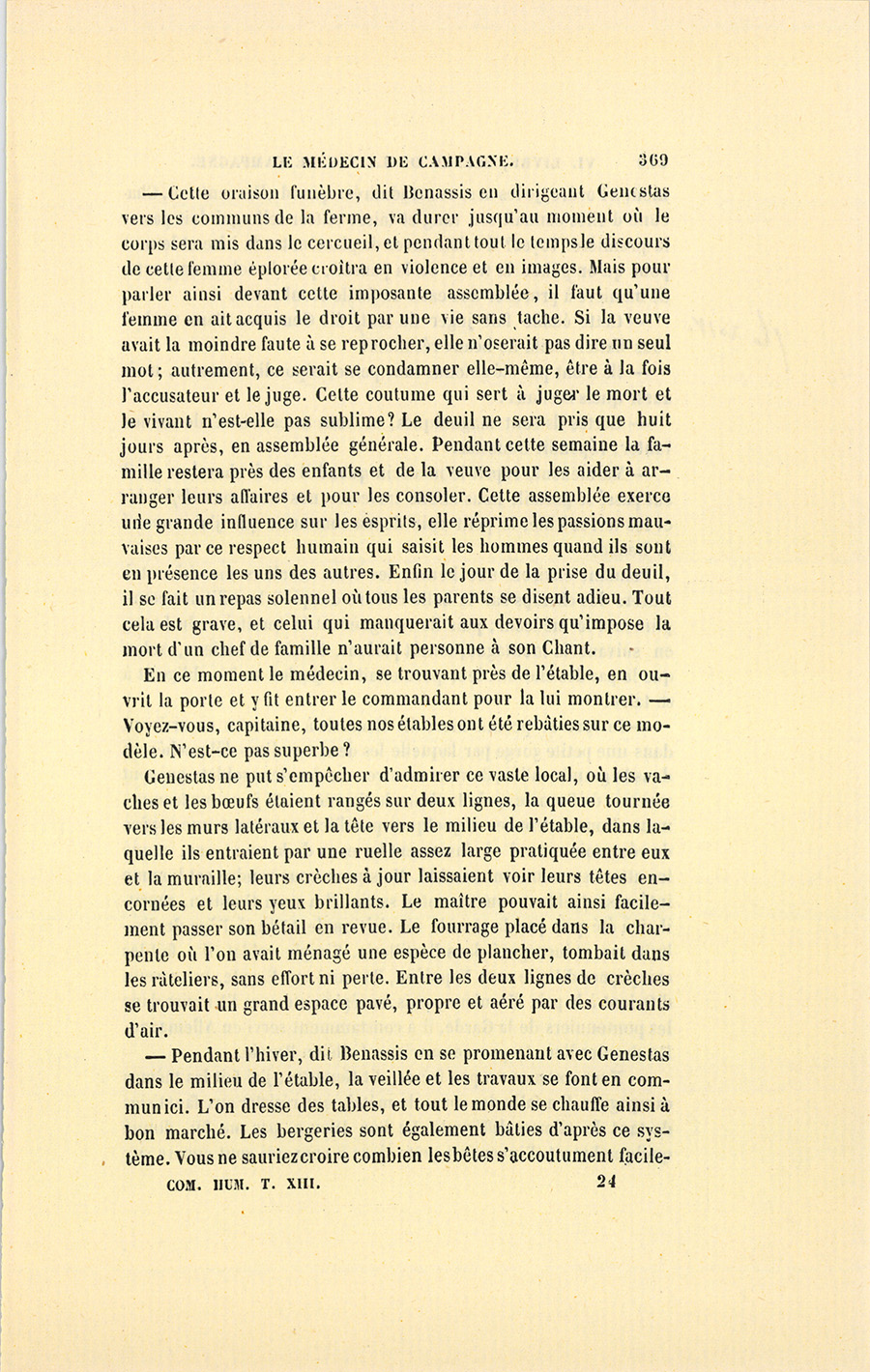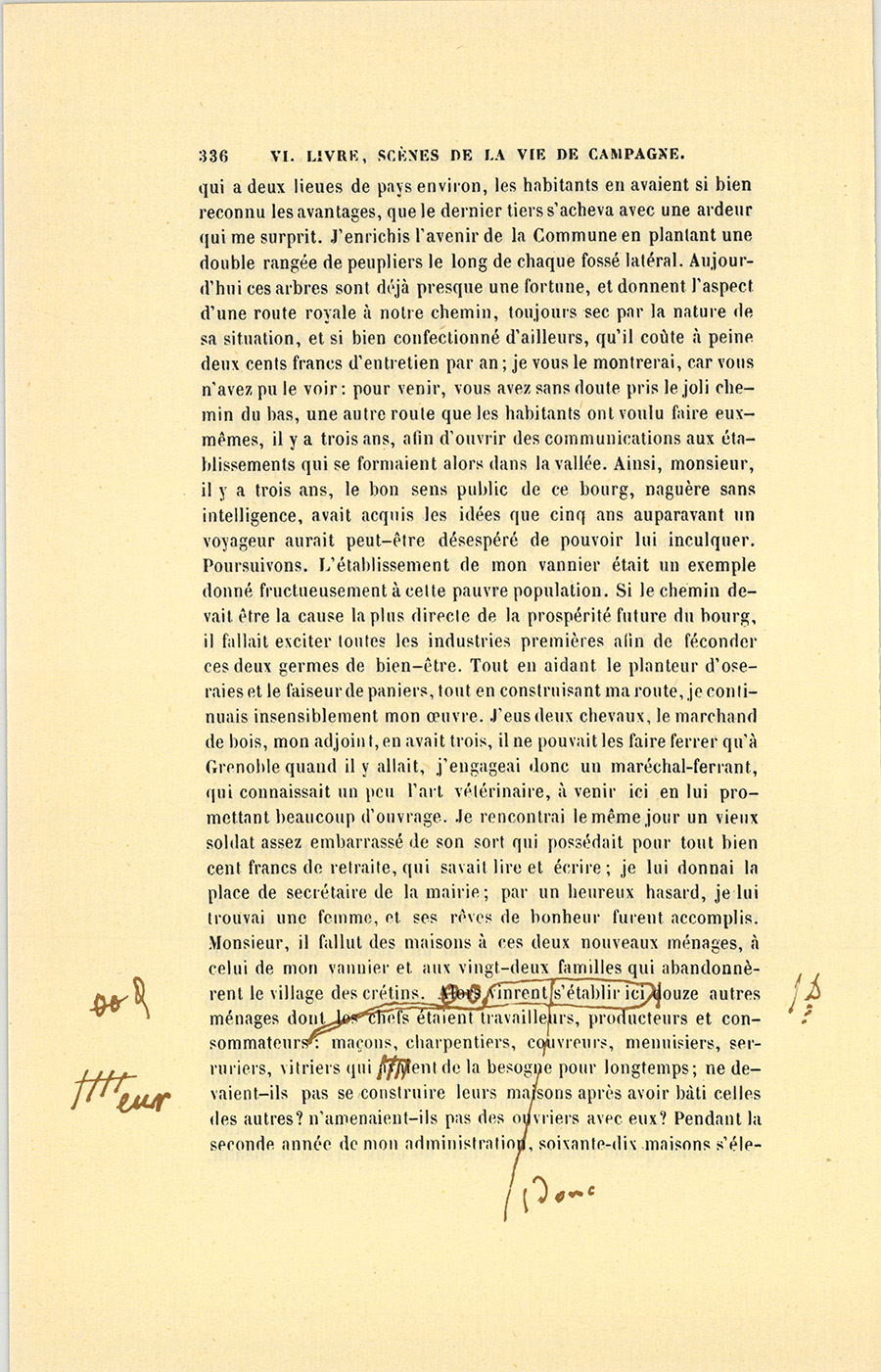 – Monsieur, voilà bien ce que nous dit monsieur Benassis ; mais si d’autres prennent les enfants au même prix, faut bien en passer par là. N’en a pas qui veut des enfants ! On a encore besoin de la {p. 313} croix et de la bannière pour en obtenir. Quand nous leur donnerions notre lait pour rien, il ne nous coûte guère. D’ailleurs, monsieur, trois francs, c’est une somme. Voilà quinze francs de trouvés, sans les cinq livres de savon. Dans nos cantons, combien faut-il donc s’exterminer le tempérament avant d’avoir gagné dix sous par jour.