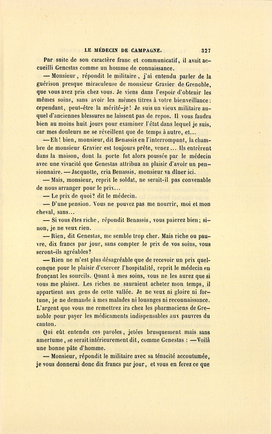 – Rien, dit Genestas, me semble trop cher. Mais riche ou pauvre, dix francs par jour, sans compter le prix de vos soins, vous seront-ils agréables ?