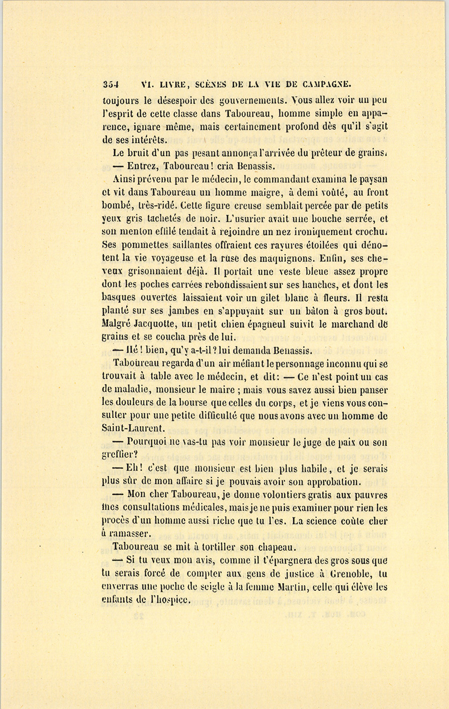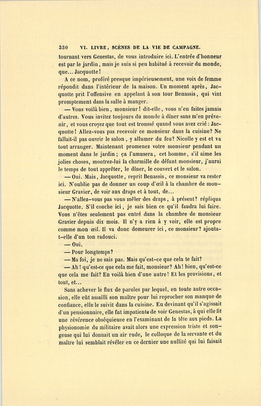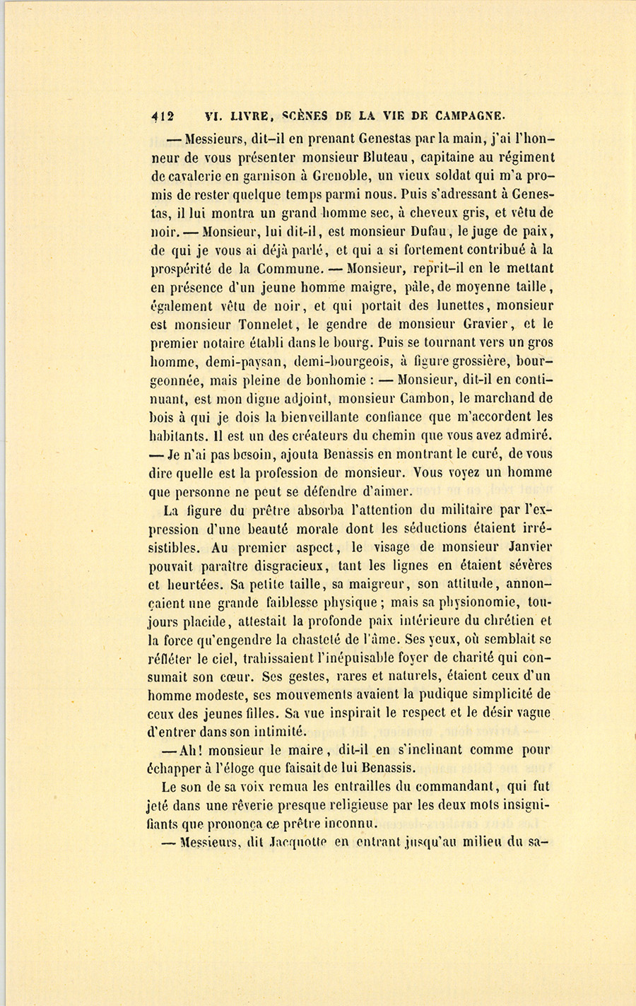 À ce nom, proféré presque impérieusement, une voix de femme répondit dans l’intérieur de la maison. Un moment après, Jacquotte prit l’offensive en appelant à son tour Benassis, qui vint promptement dans la salle à manger.